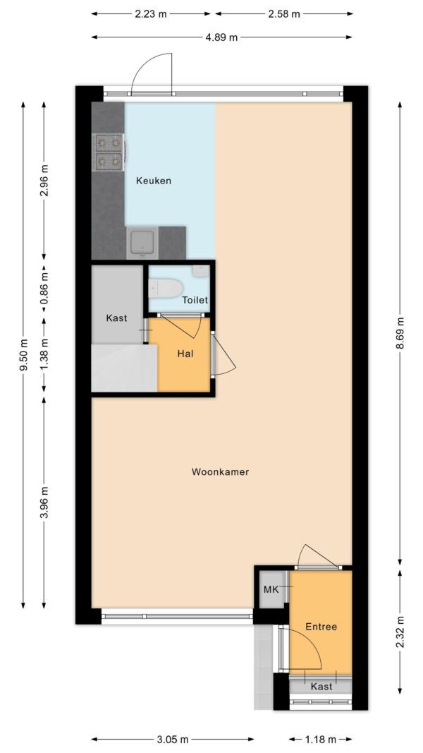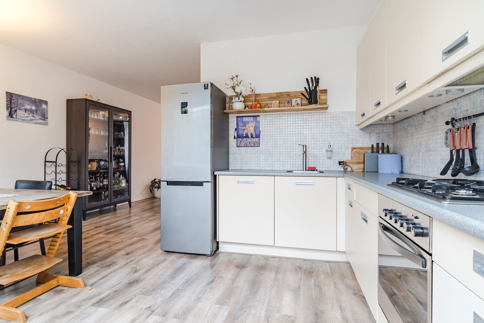 - Keuken voorzien van gasfornuis, afzuigkap, oven, koelkast en vaatwasser