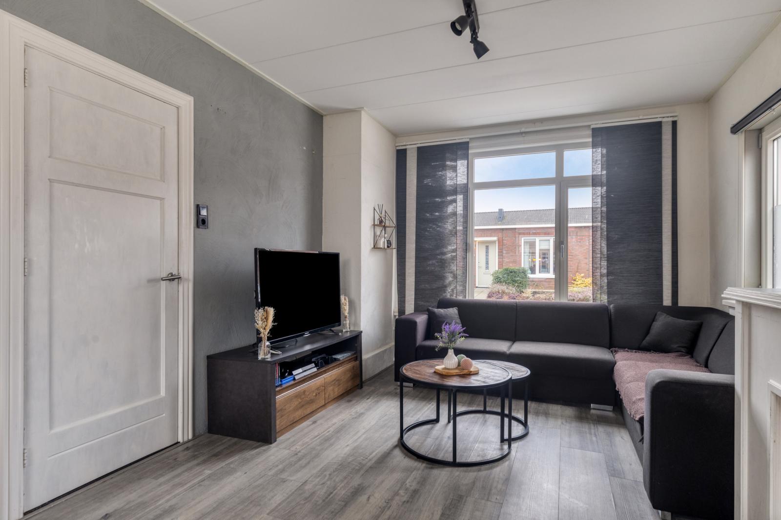 De woning beschikt over een lichte woonkamer met open keuken, een praktische bijkeuken met berging, twee ruime slaapkamers, een complete badkamer en een zolder die uitstekend geschikt is voor opslag. Parkeren kan op de eigen oprit en de tuin is bereikbaar via een achterom.