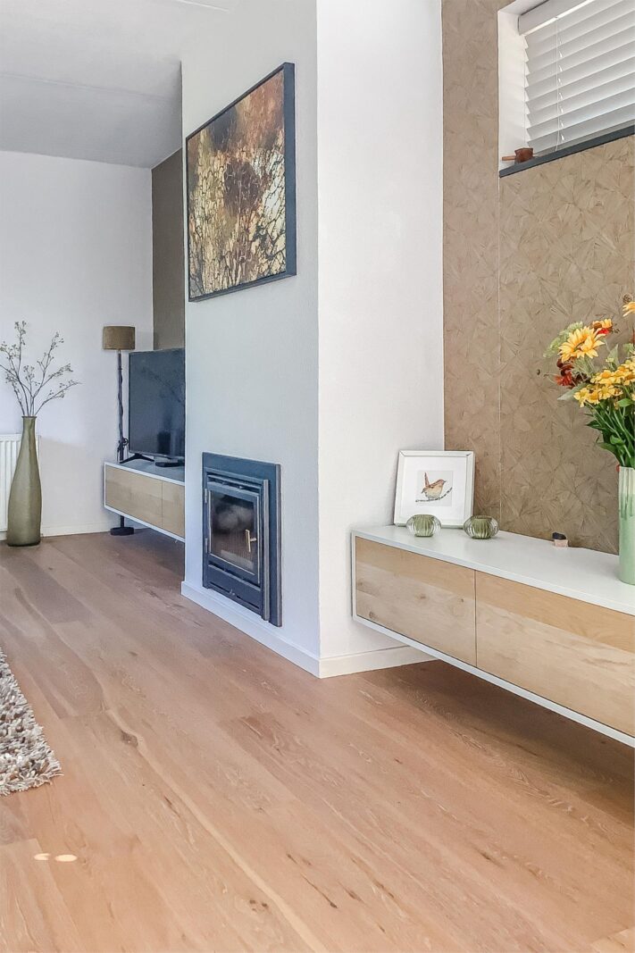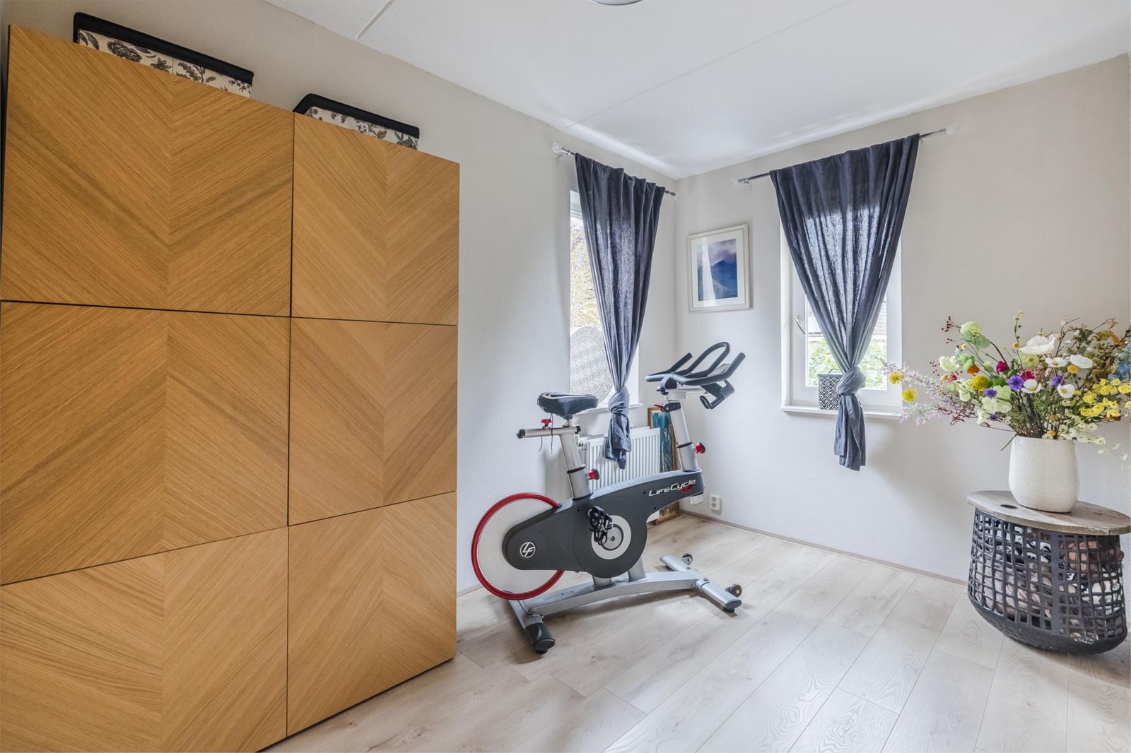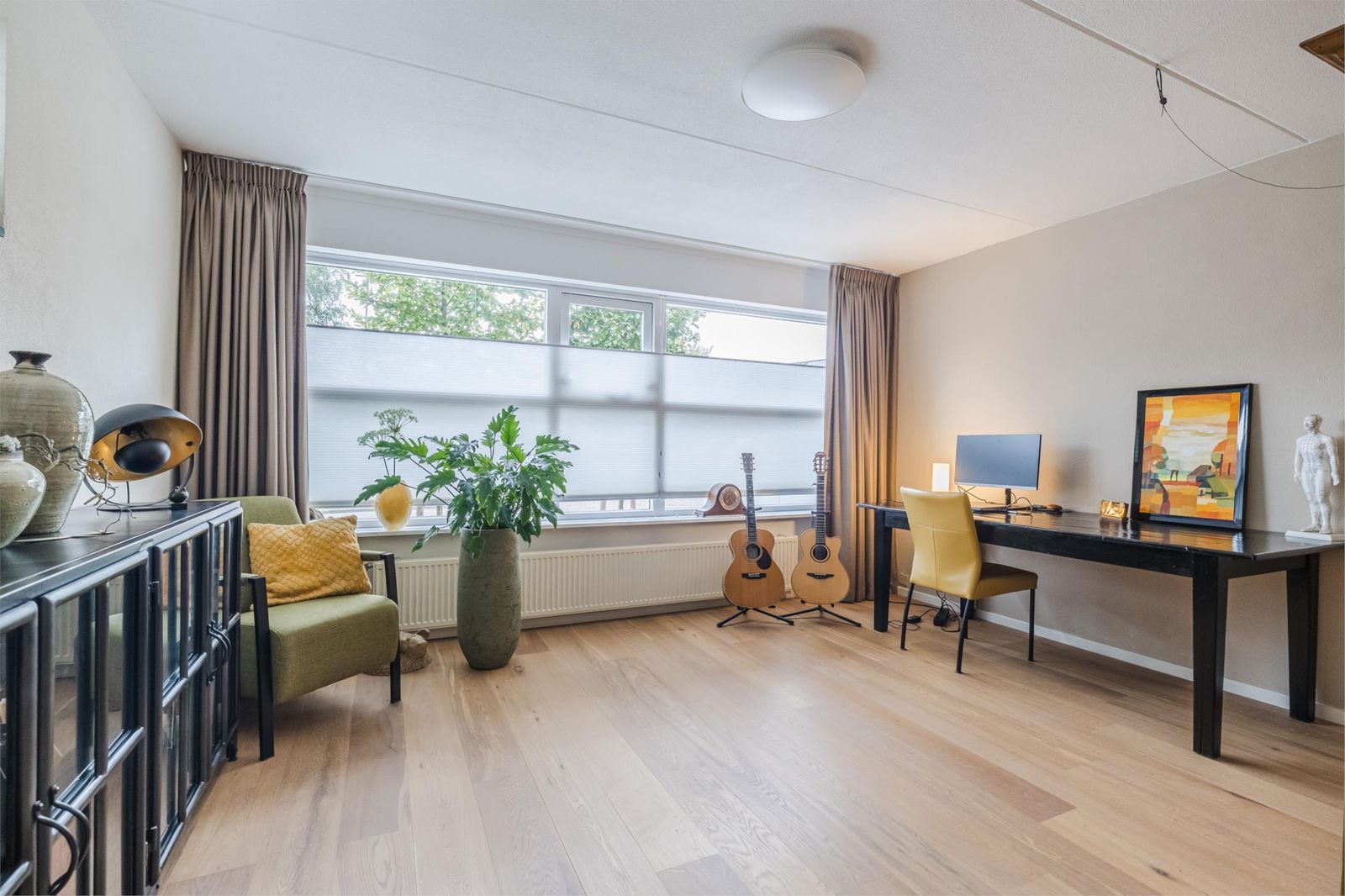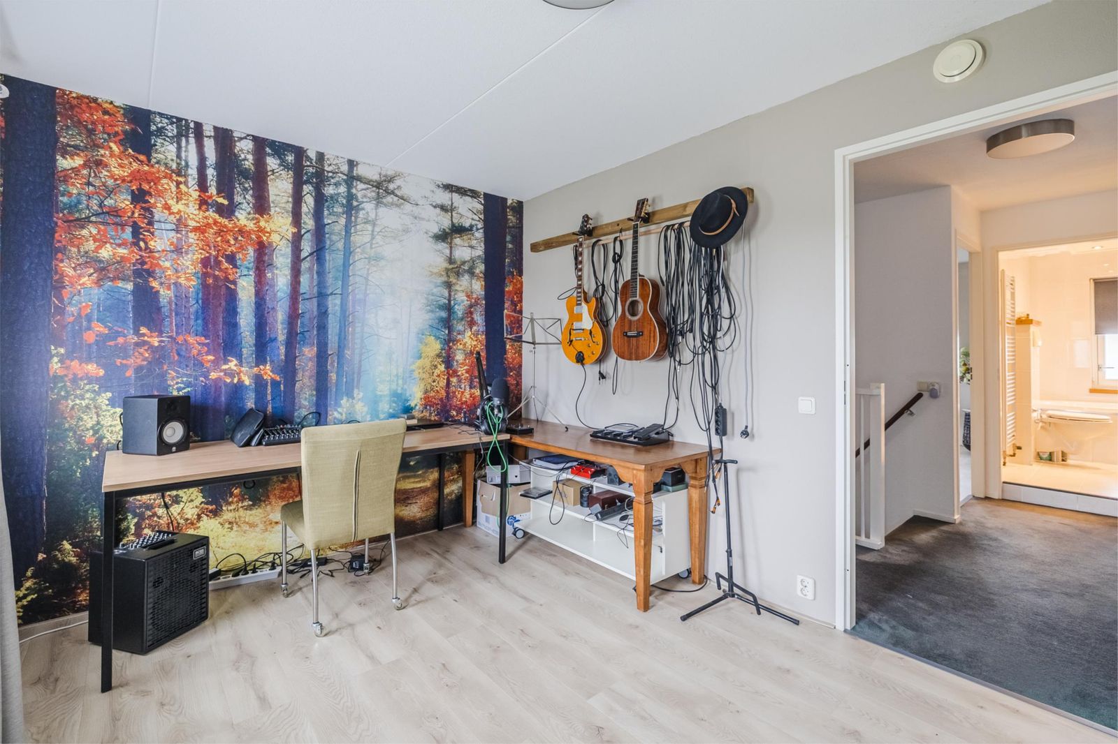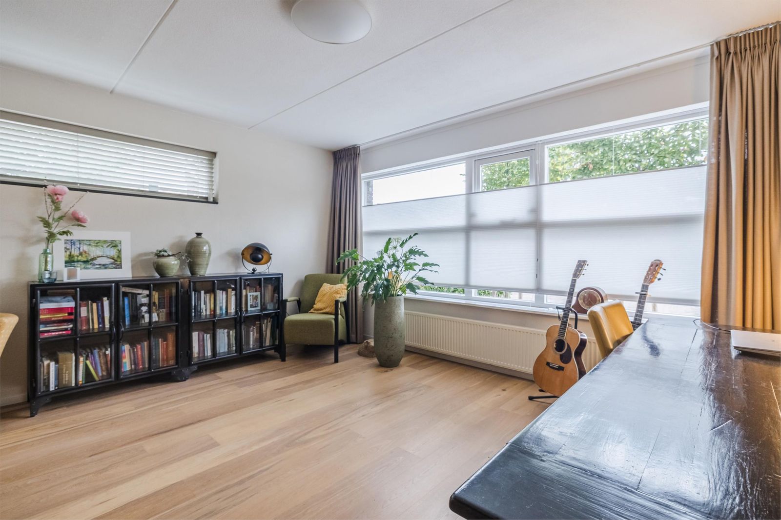 Indeling Begane grond: ruime hal, met meterkast en toilet. Er is sprake van lichte woonkamer, een extra tuingerichte woonkamer met houtkachel, eetkamer en keuken die in elkaar overvloeien en voorzien van een mooie houten vloer. Met een schuifpui naar de tuin.