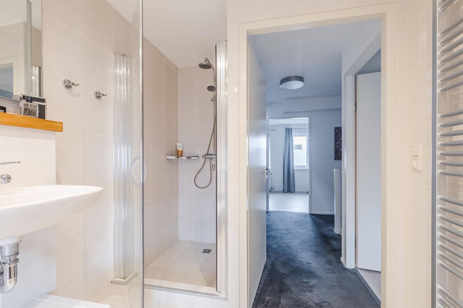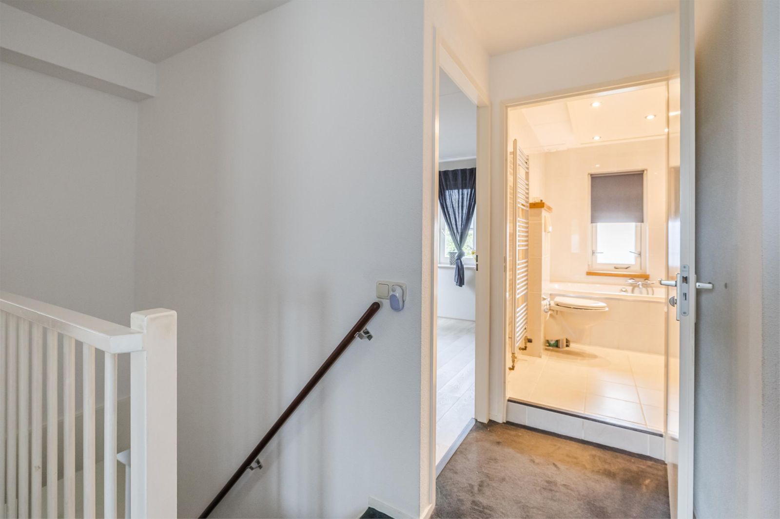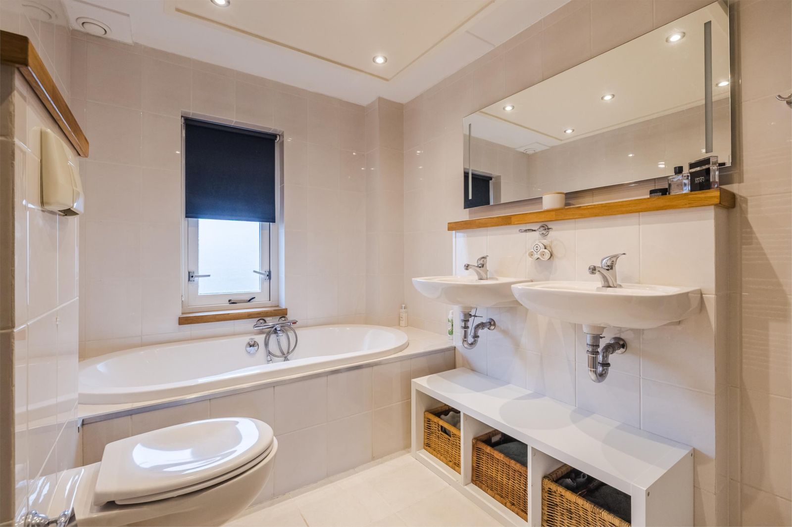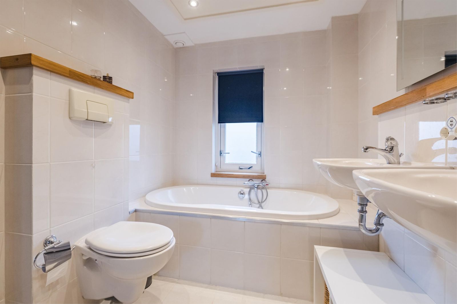 Eerste verdieping: overloop drie ruime slaapkamers, waarvan één extra ruim met balkon Verder een complete badkamer met ligbad, douchehoek, wastafel, designradiator en tweede toilet.