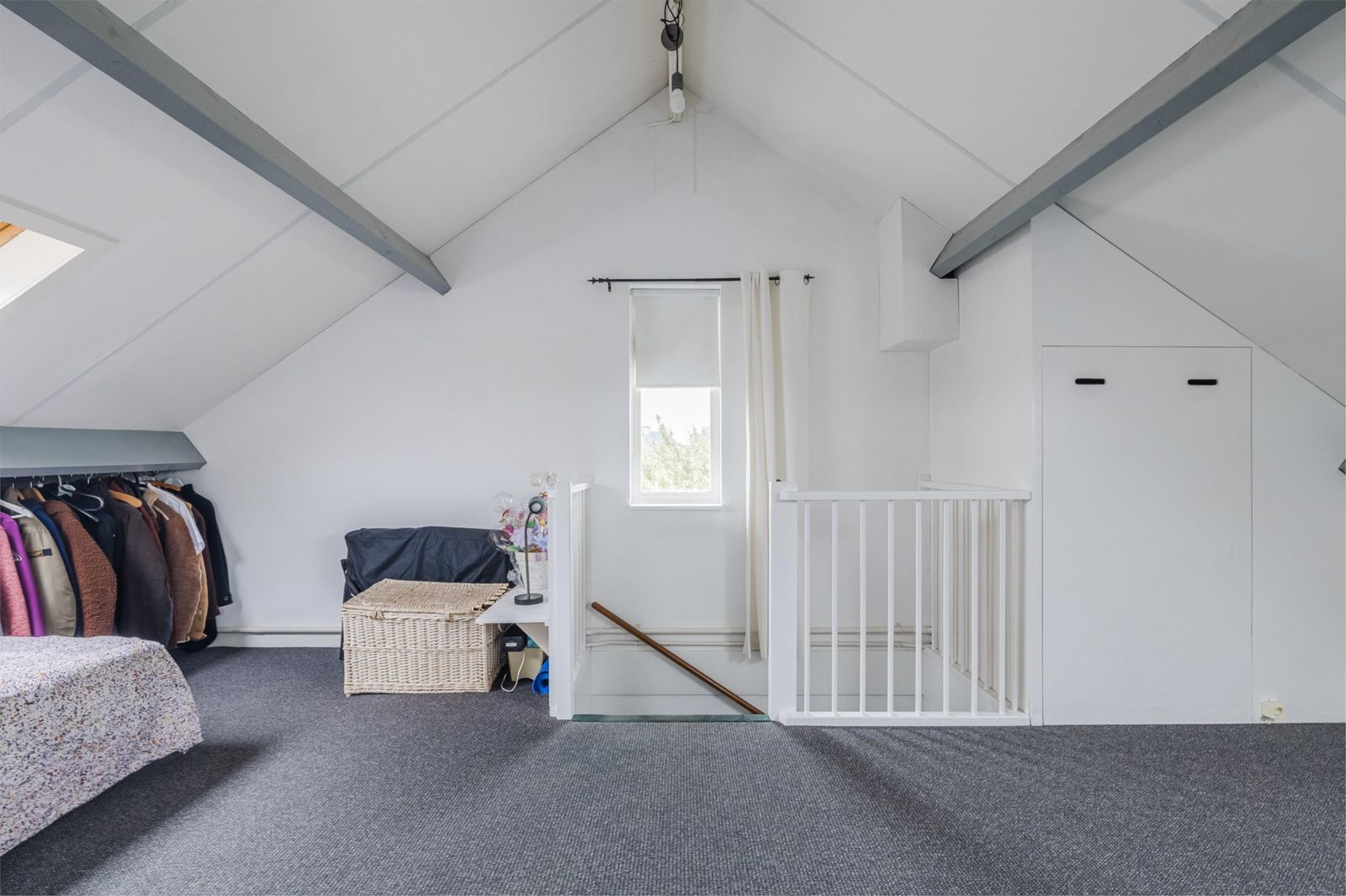 Tweede verdieping: vaste trap naar de royale lichte zolder, voorzien van twee dakramen met volop praktische opbergruimte achter de knieschotten.