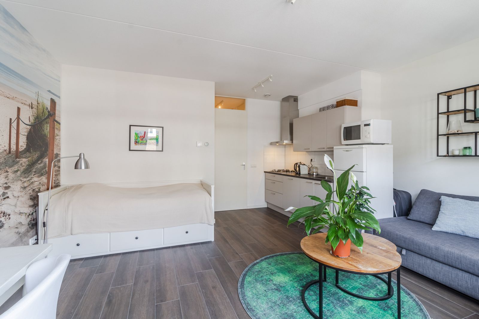 This surprisingly quiet apartment, situated on the border of the Kortenbos neighborhood and the Centrum district, is ideal for anyone seeking a combination of urban vibrancy and peaceful living comfort. Many trendy restaurants, cozy cafes and terraces, supermarkets, and shops are literally around the corner. The historic Veenkade, the bustling Noordwal, and the stately Noordeinde Palace and Palace Gardens are 100 meters away. Public transport is also excellent; various tram and bus connections to The Hague Central and the beach are directly accessible at 50 meters; ideal for work, relaxation, and leisure. Layout: