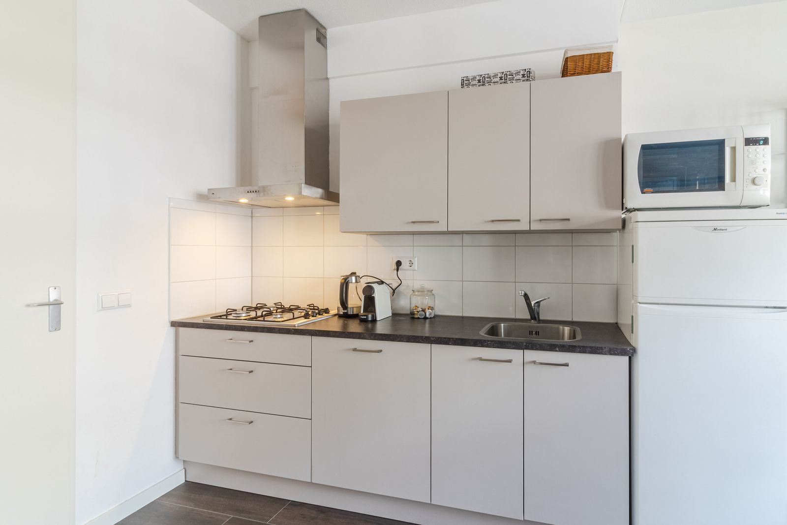 - Moderne open keuken: uitgerust met moderne apparatuur, waaronder een 4-pits kookvoorziening, combimagnetron, koelkast met vriesgedeelte en vaatwasmachine.