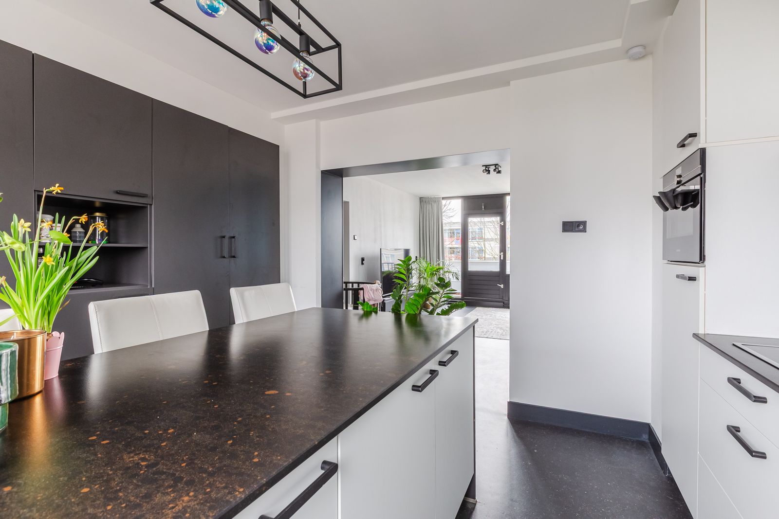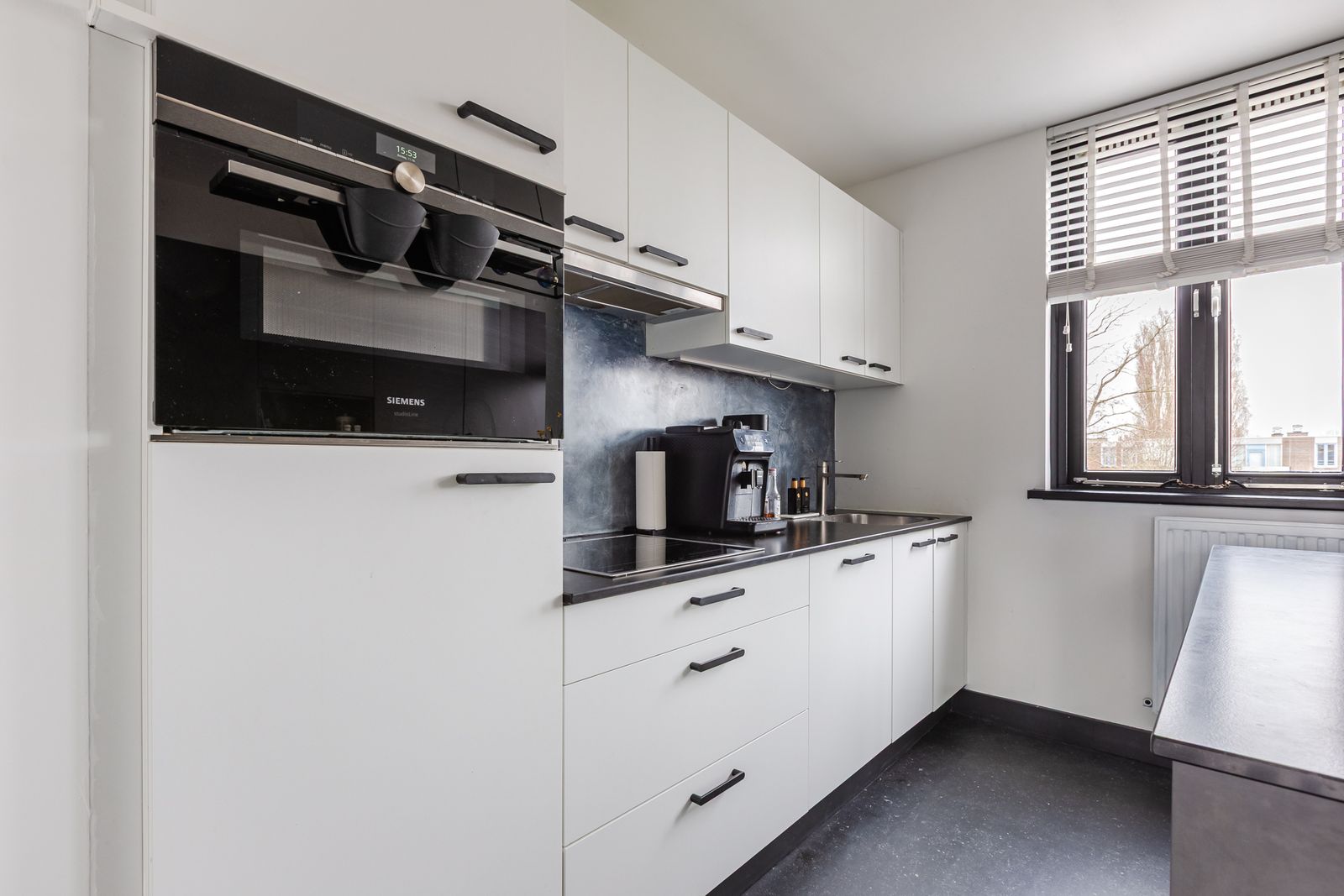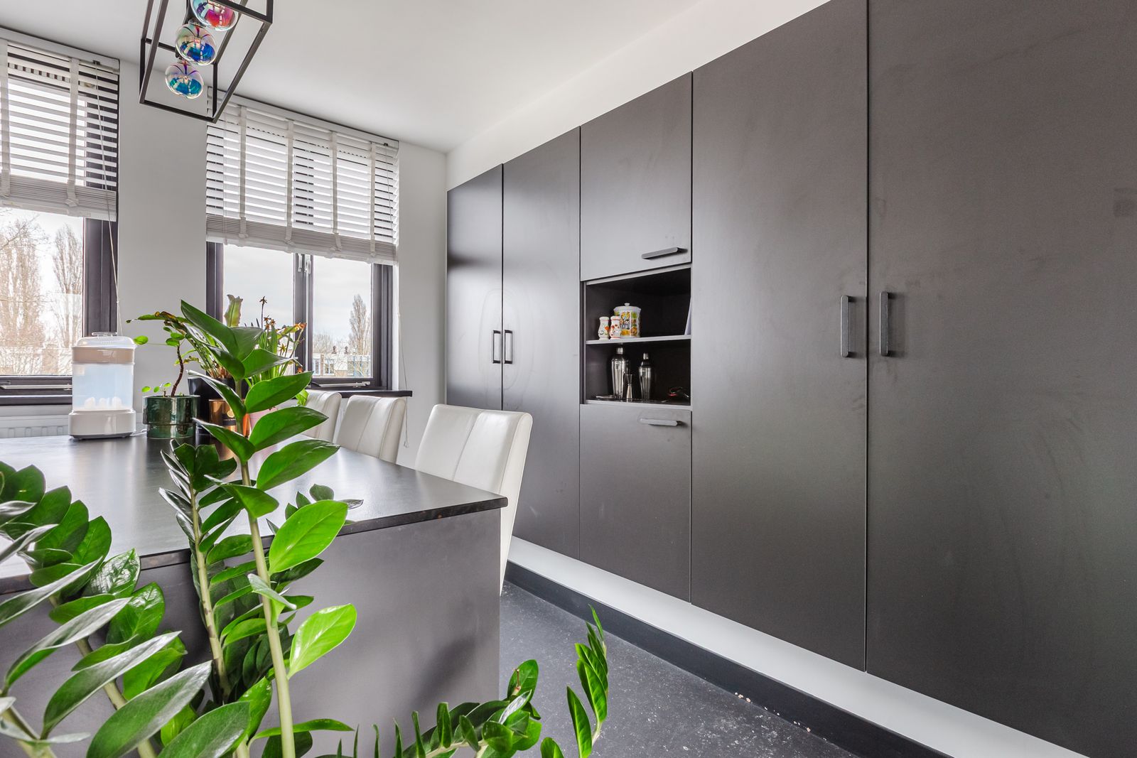 De moderne keuken, compleet met een centraal eiland, is voorzien van inbouwapparatuur en biedt een overvloed aan kastruimte. Het uitzicht vanuit de keuken over het rustige en groene hof aan de voorzijde van het complex maakt koken tot een waar genot.