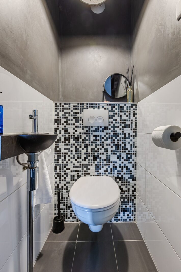 Aan de voorzijde bevindt zich de grootste slaapkamer, een ware oase van rust en comfort. Aan de achterzijde liggen nog twee ruime slaapkamers, perfect voor gasten, een thuiskantoor of een groeiend gezin. De moderne badkamer is uitgerust met een stijlvolle inloopdouche en een wastafel met een wastafelmeubel. De hal herbergt tevens een apart toilet, waardoor privacy en gemak hand in hand gaan.
