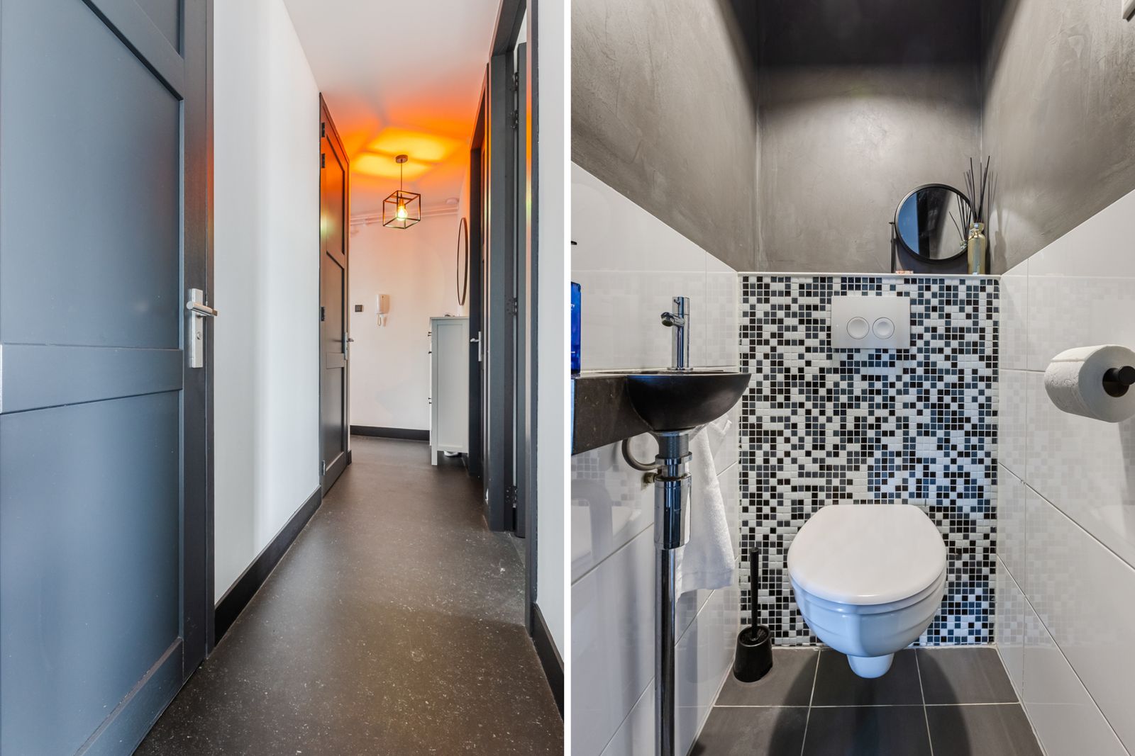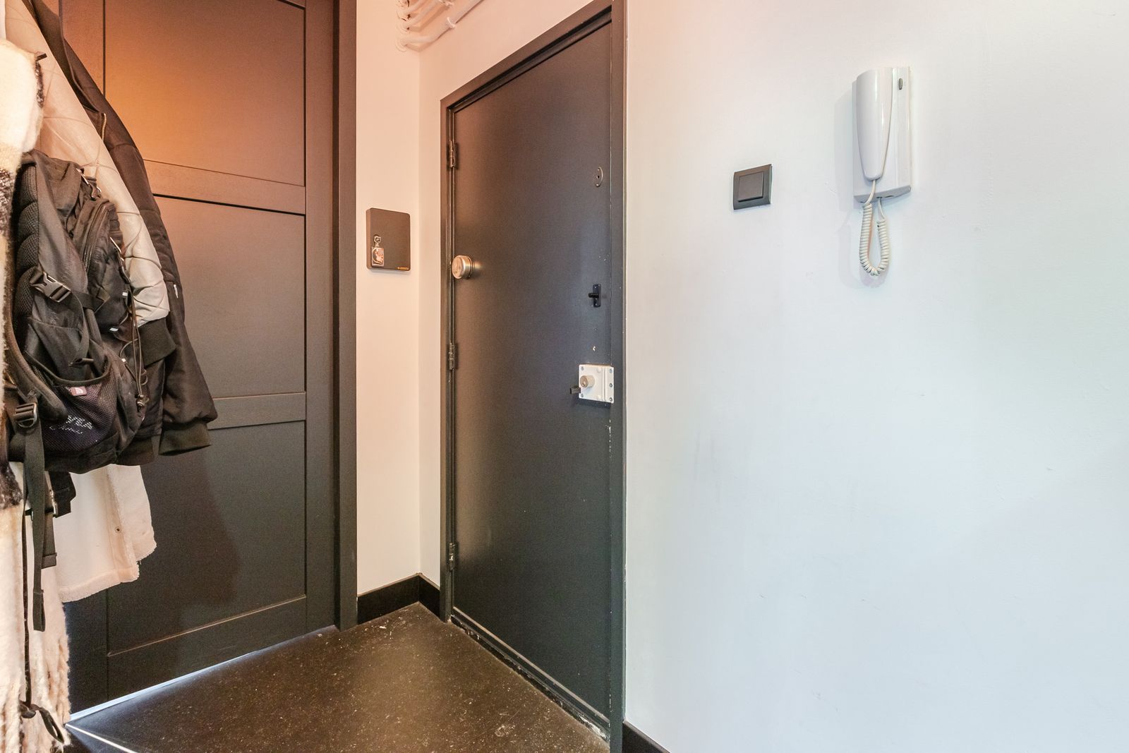 Stap binnen via de gezamenlijke entree en bereik de bovenste etage van dit unieke complex, waar jouw nieuwe thuis op je wacht. De hal geeft je toegang tot alle vertrekken, waardoor je direct het ruime gevoel van dit prachtige appartement ervaart.