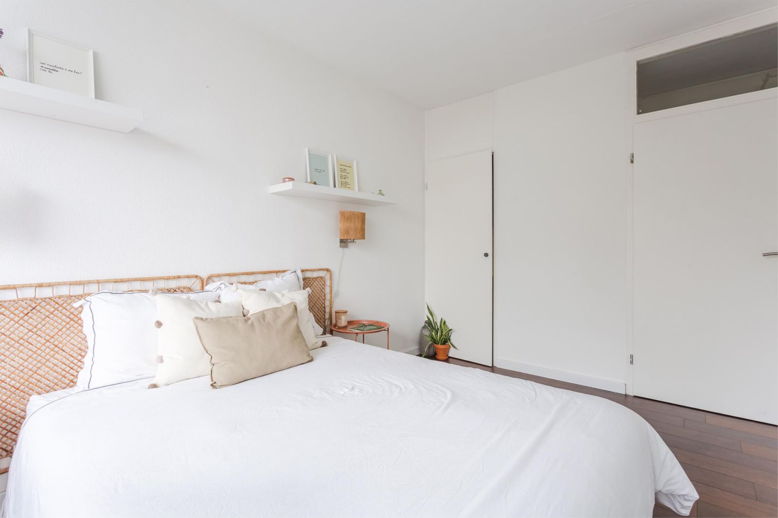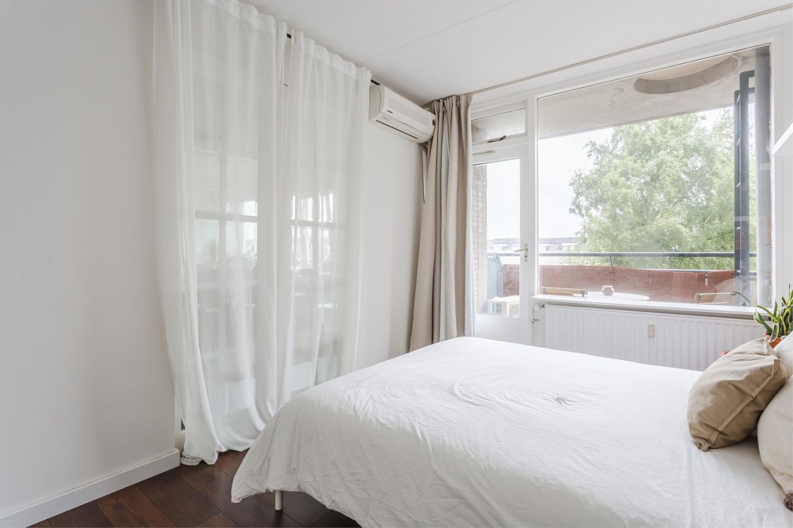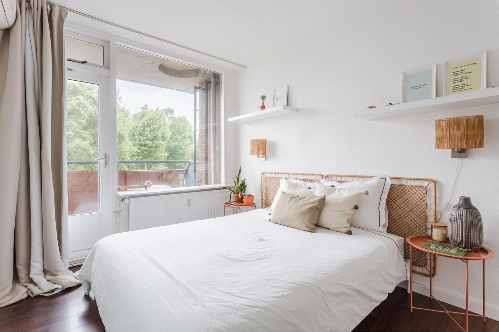 De ruime slaapkamer is voorzien van een inbouwkast en geeft direct toegang tot het zonnige balkon op het westen – hier geniet je van de middag- en avondzon. Mocht het zomers een keer te warm worden, dan biedt de airconditioning de uitkomst! Deze heeft zowel een warmte- als een koelfunctie.