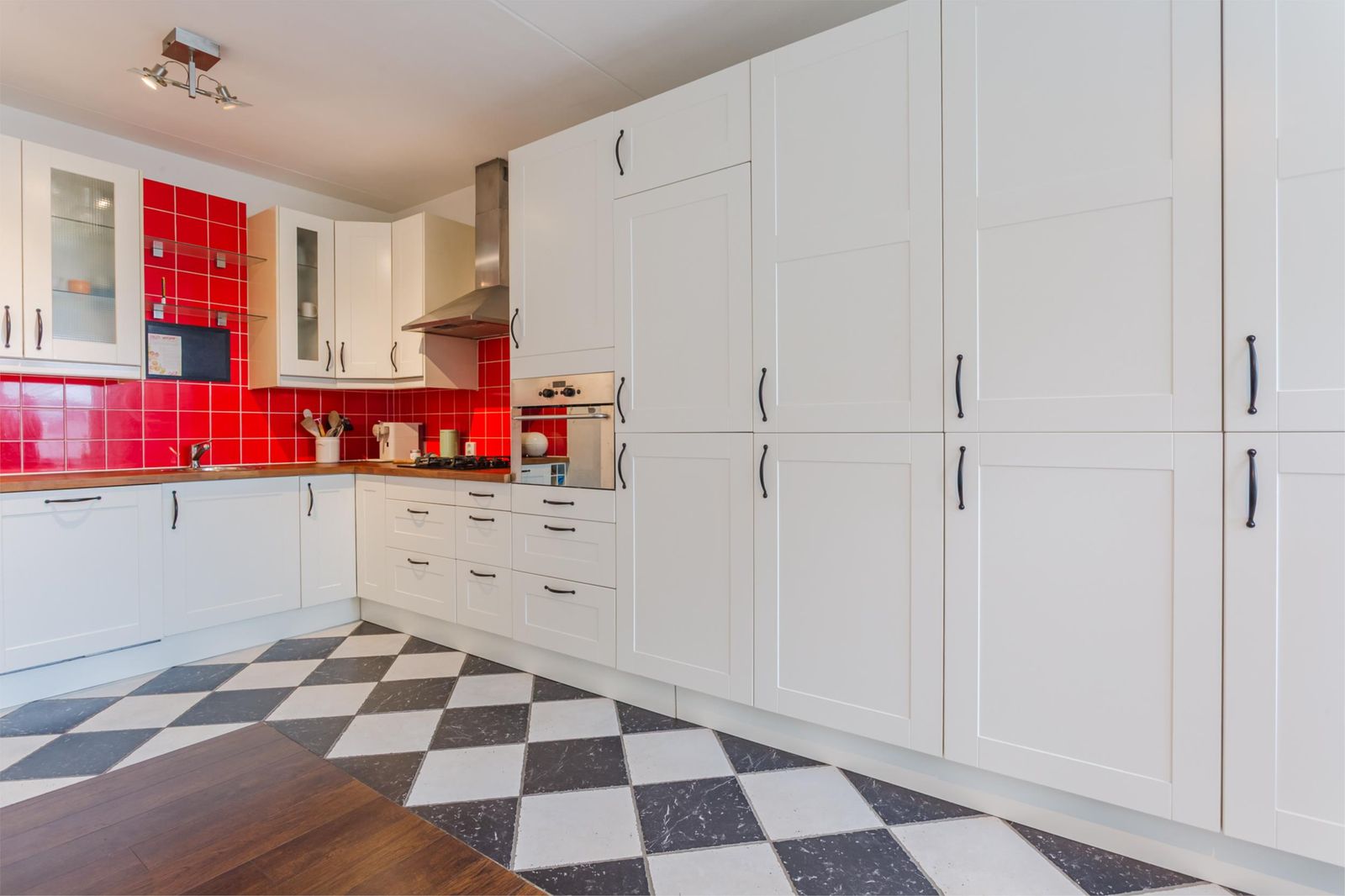 De lichte woonkamer biedt volop ruimte voor een comfortabele zithoek en eetgedeelte. De grote open keuken is erg functioneel ingericht. Buiten de diverse inbouwapparatuur (vaatwasser, combimagnetron, koel- en vrieskast) is er door de opstelling extra veel handige kastruimte.