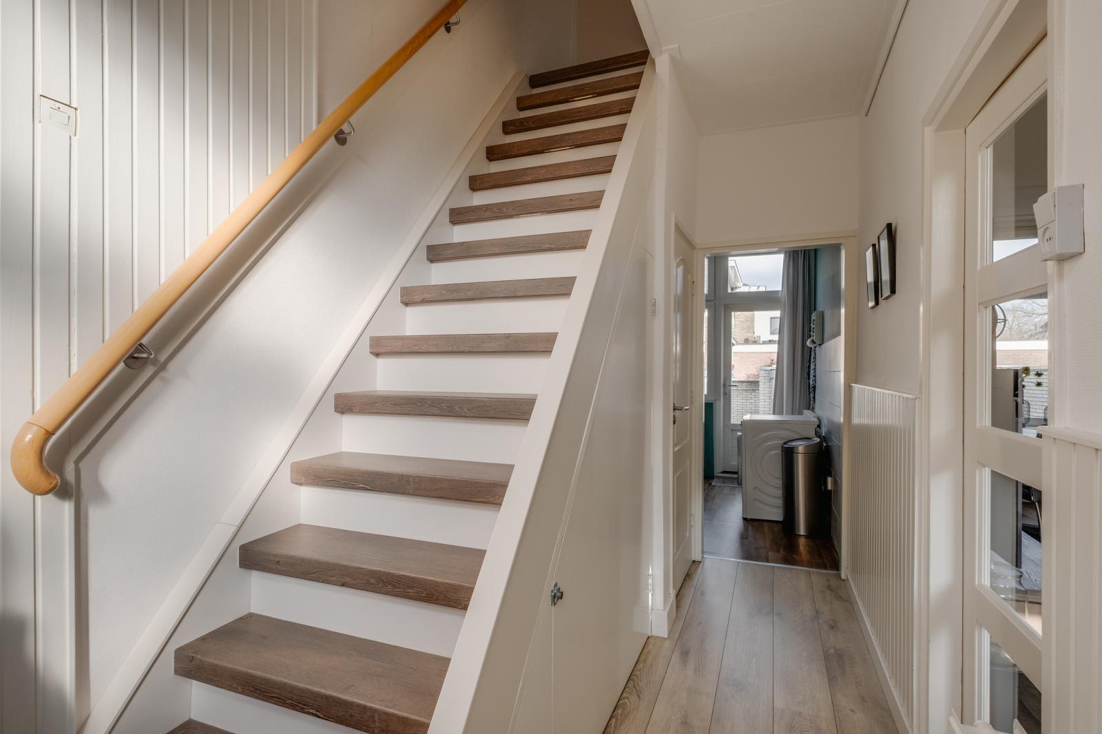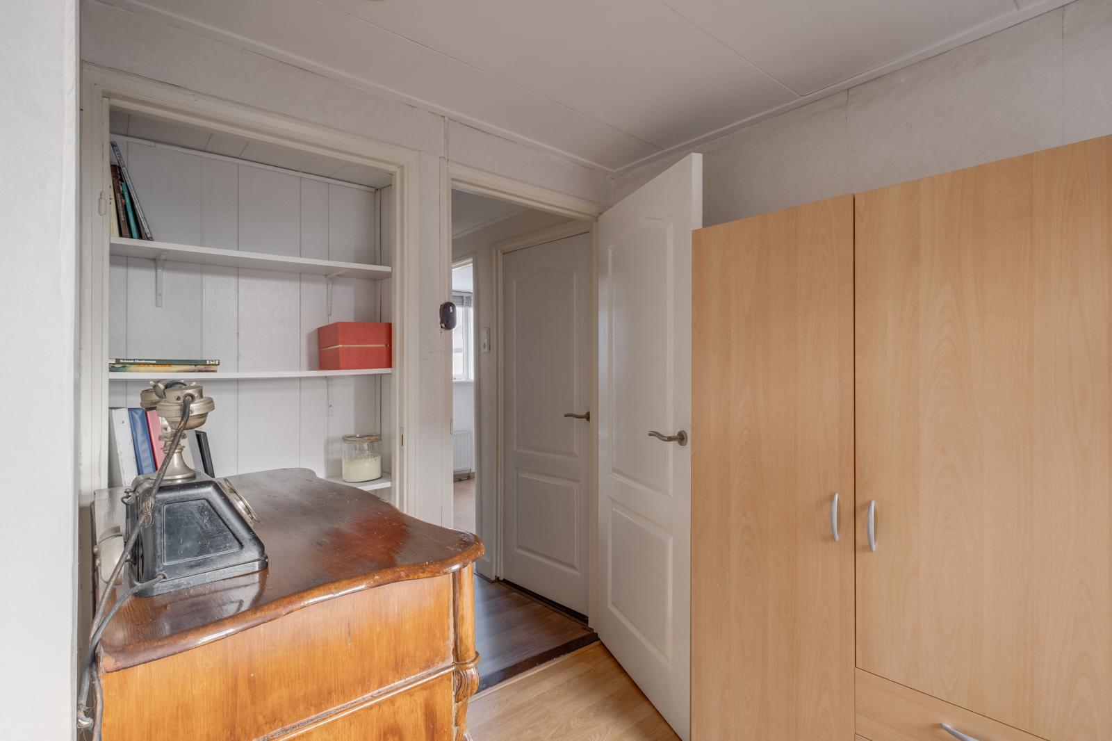 De woning is met aandacht bewoond en goed onderhouden. Op de verdieping bevinden zich drie slaapkamers en via een vlizotrap is de vliering met stahoogte bereikbaar. Daarnaast beschikt de woning over een eigen oprit en een stenen garage met openslaande deuren.