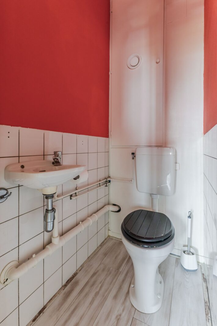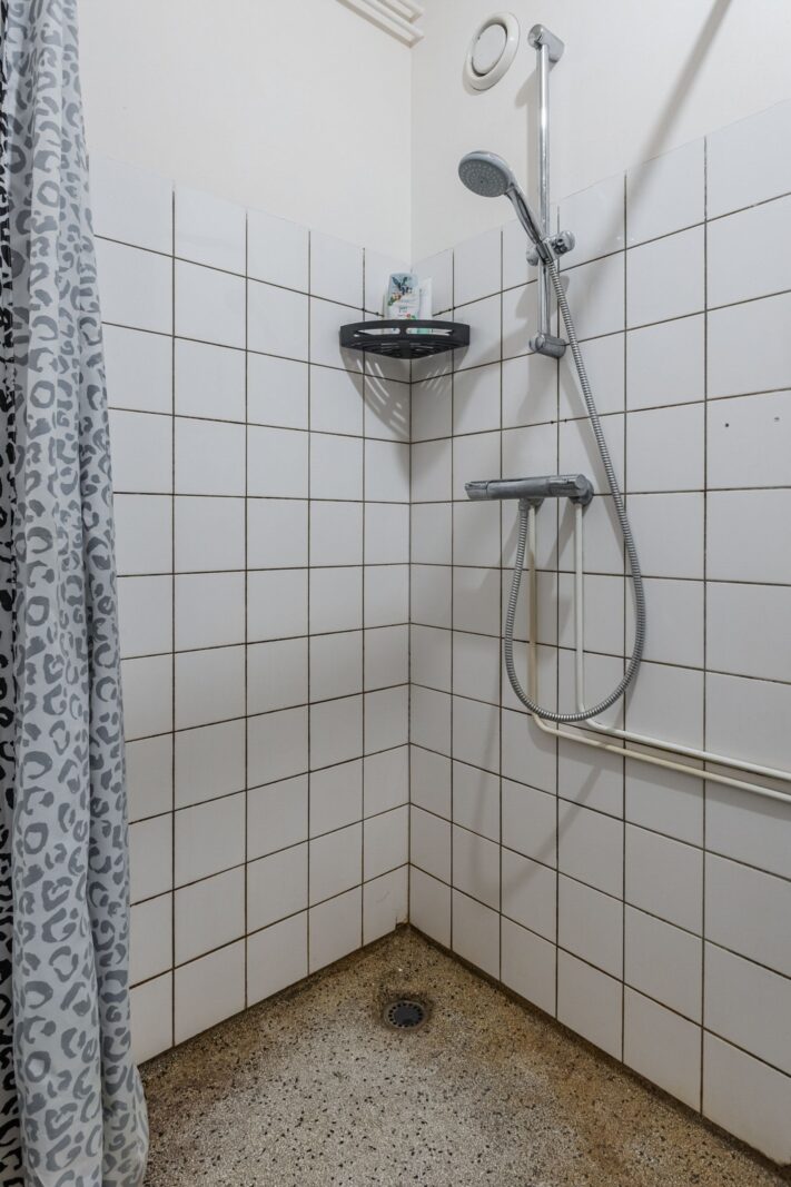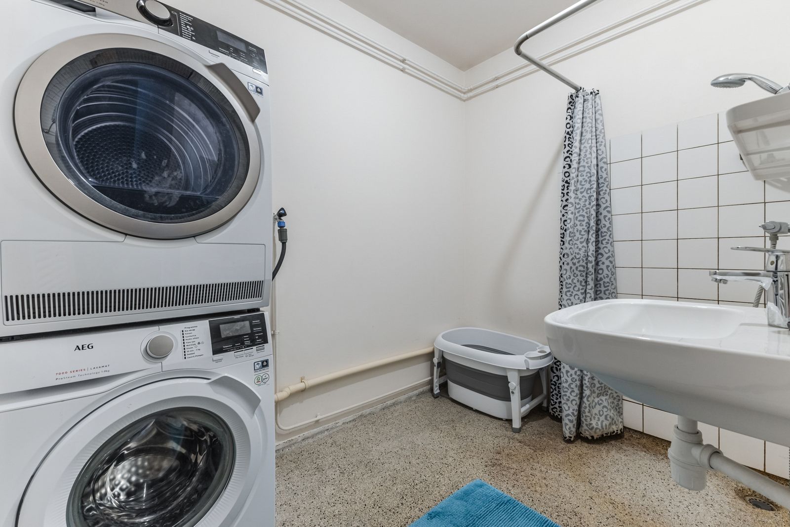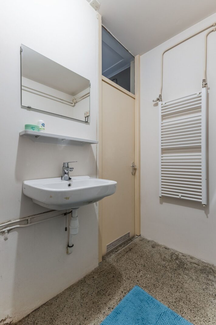 De twee ruime slaapkamers bevinden zich aan de voorzijde van de woning en de badkamer is voorzien van douche en een wastafel. Ook bevindt zich hier de aansluiting voor de wasmachine en droger. Verder is er een apart toilet.