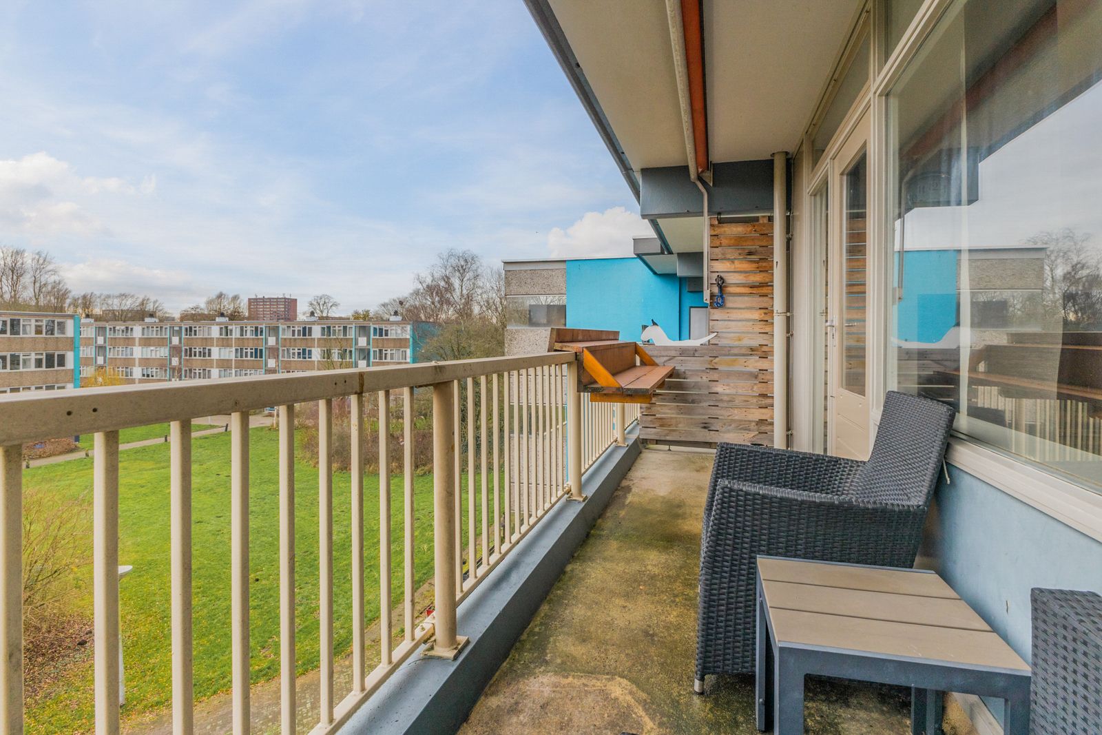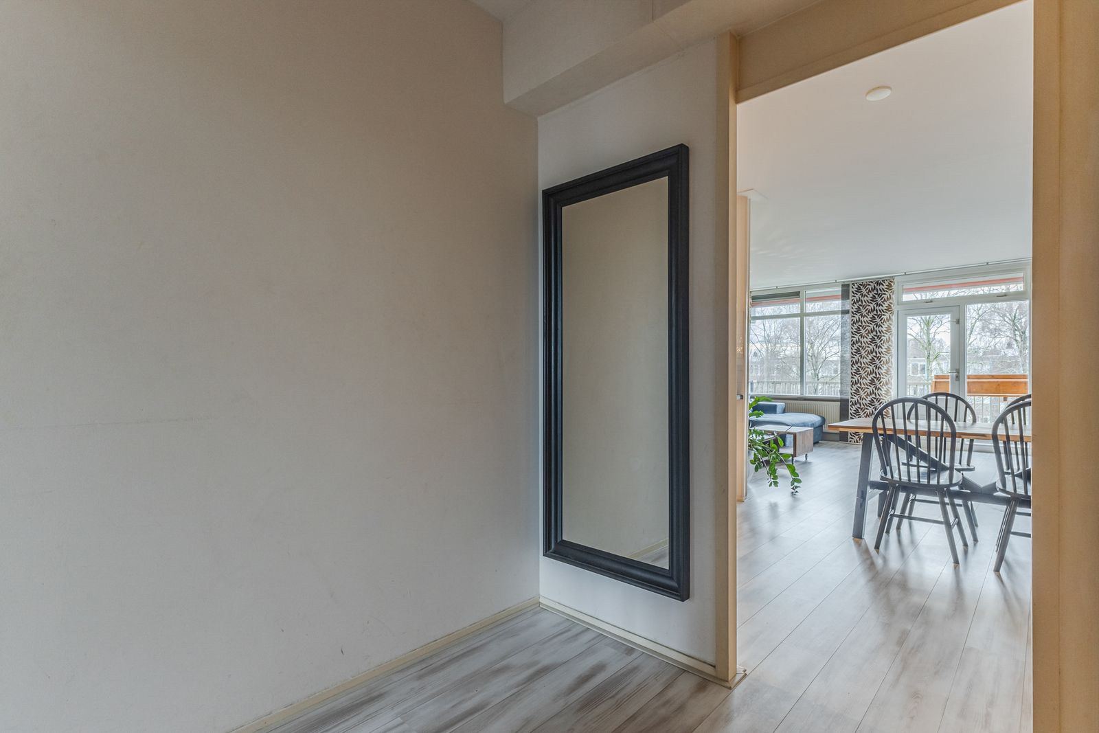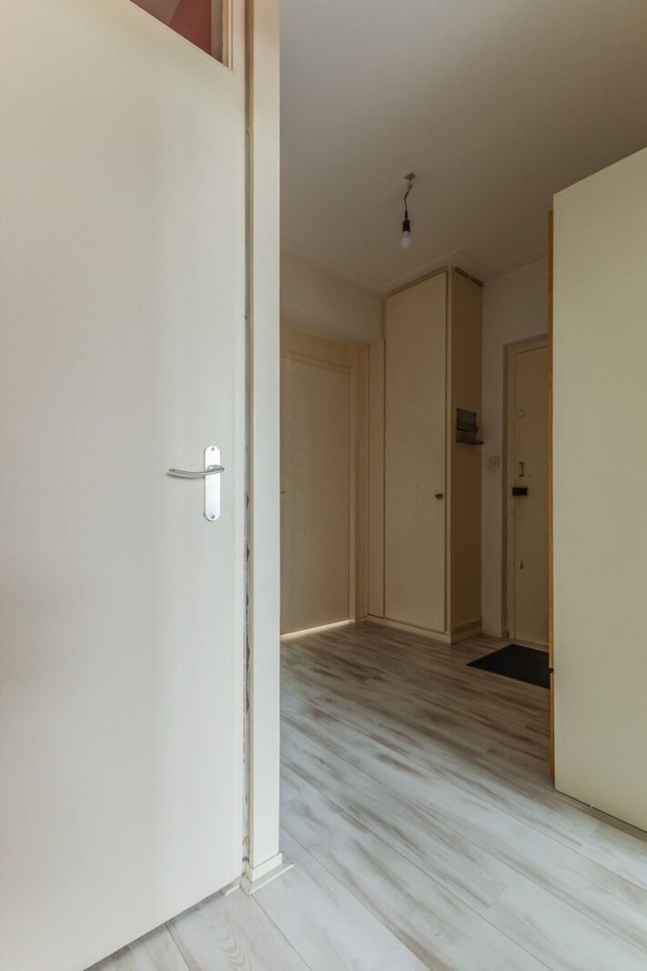 Je komt binnen via de gemeenschappelijke hal. Met het trappenhuis bereik je de derde (en bovenste) verdieping. De entree van de woning geeft toegang tot alle vertrekken. Aan de achterzijde bevindt zich de lichte woonkamer met open keuken. Vanuit de woonkamer is tevens het op het zuidwesten gesitueerde balkon bereikbaar. De grote ramen zorgen voor veel lichtinval en een vrij uitzicht.