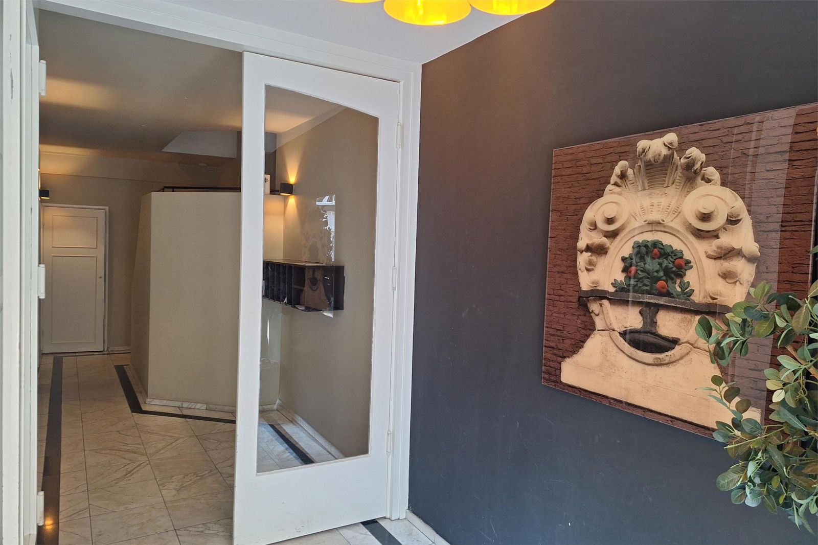 Via the stairwell with lift, you reach the fourth floor. From a dark stairwell, you step into a sea of light. Both part of the floor and part of the roof on the 5th floor are made of glass, which is enhanced by windows on the front, side and back. The glass of the glass roof consists of solar control glass. Both downstairs and upstairs, patio doors ensure that it does not easily get too hot in summer