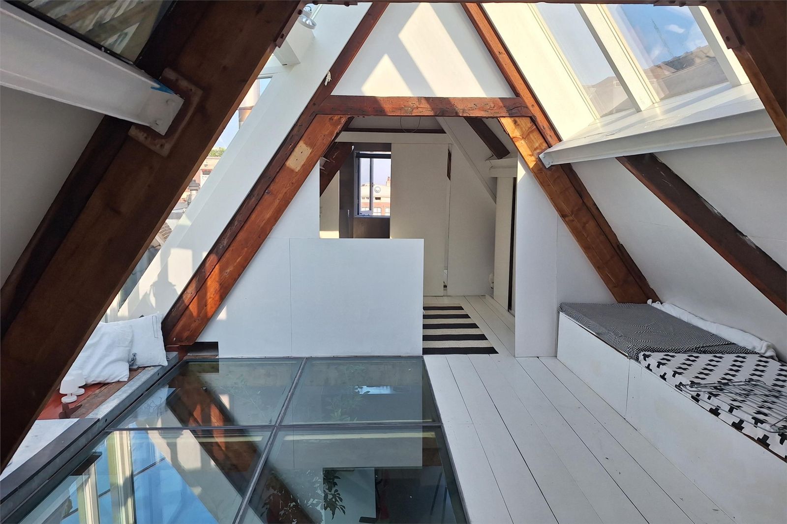 Via het trappenhuis met lift bereikt u de vierde verdieping. Vanuit een donker trappenhuis stapt u in een zee van licht. Zowel een deel van de verdiepingsvloer als een deel van het dak op de 5e verdieping bestaat uit glas. Dit wordt versterkt door ramen aan voor, zij en achterkant. Het glas van het glazen dak bestaat uit zonwerend glas. Zowel beneden als boven zorgen openslaande deuren ervoor dat het niet gauw te warm wordt in de zomer