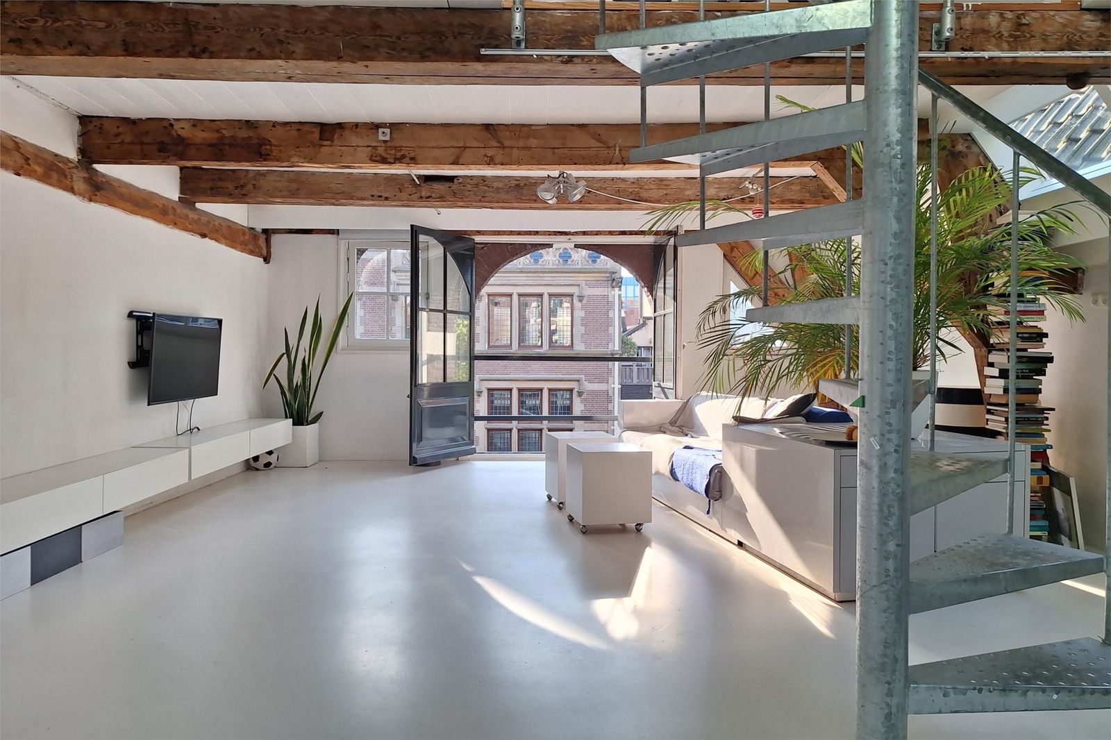 Very spacious and bright loft-style flat in the centre of Amsterdam. Located within walking distance of Central Station, theatres, cinemas, cosy cafés and chic hotel bars. Inside, you won't experience the hustle and bustle of the city centre. The flat is located on the top two floors of a porcelain warehouse from 1720. A private storage room and a shared bicycle shed are located on the ground floor.