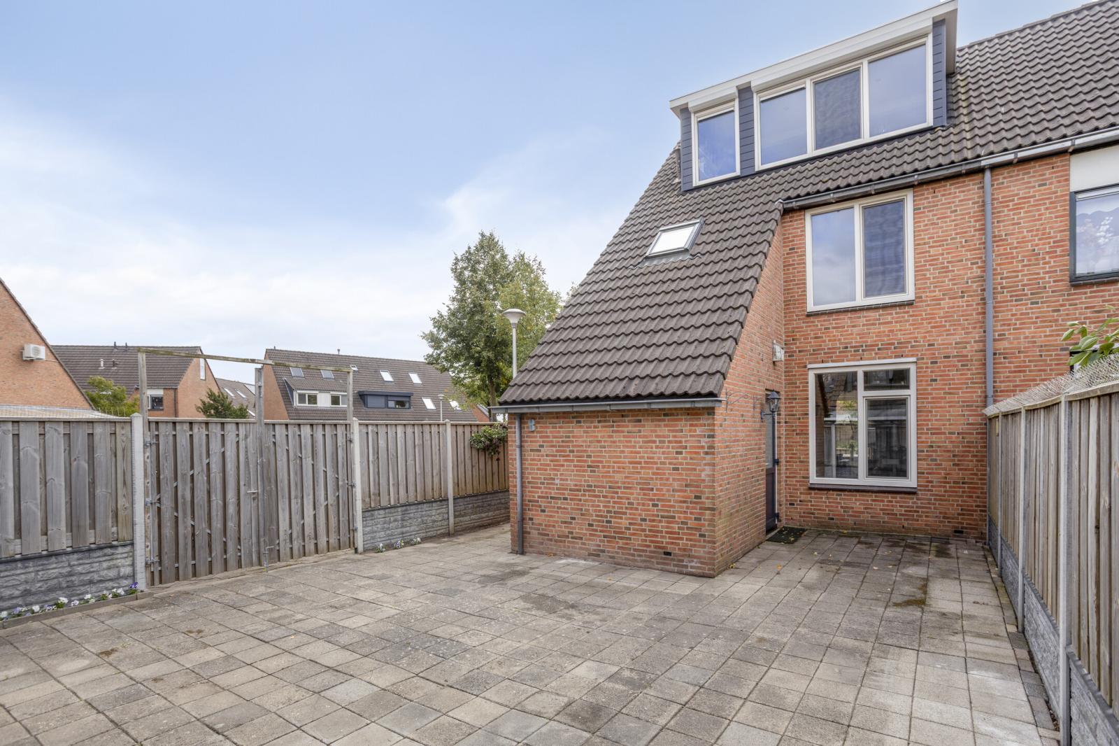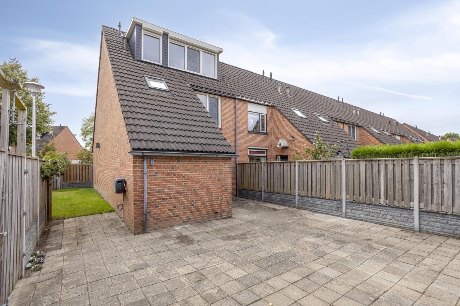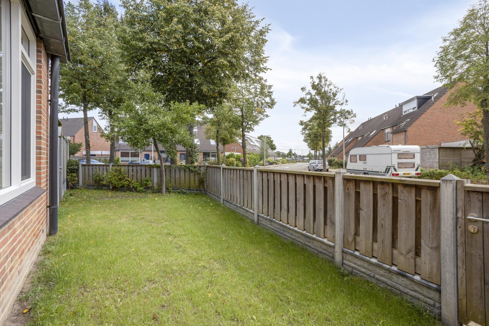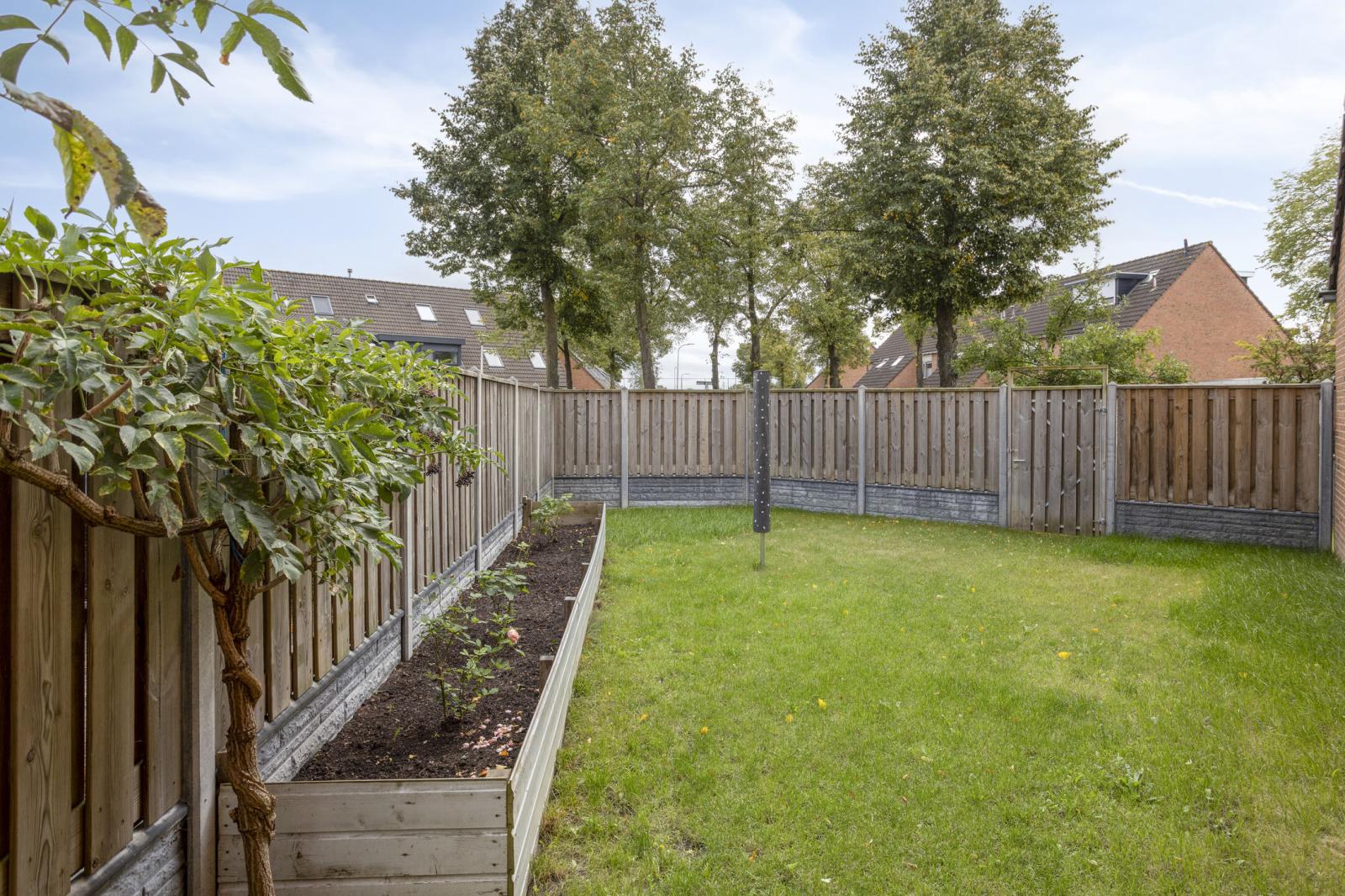 De achtertuin is bereikbaar via de hal aan de achterzijde en biedt een aangename mix van groen en onderhoudsarm bestrate oppervlakken. Het terras is ruim genoeg voor een buitentafel of loungeset en profiteert van veel zonuren. De tuin is voorzien van een degelijke schutting (geplaatst ca. 6 jaar geleden) met zowel een achteringang _ breed genoeg om een auto, caravan of aanhanger naar binnen te rijden (geen officiële inrit) _ als een doorgang aan de voorzijde. Hierdoor is de buitenruimte zowel praktisch als sfeervol.