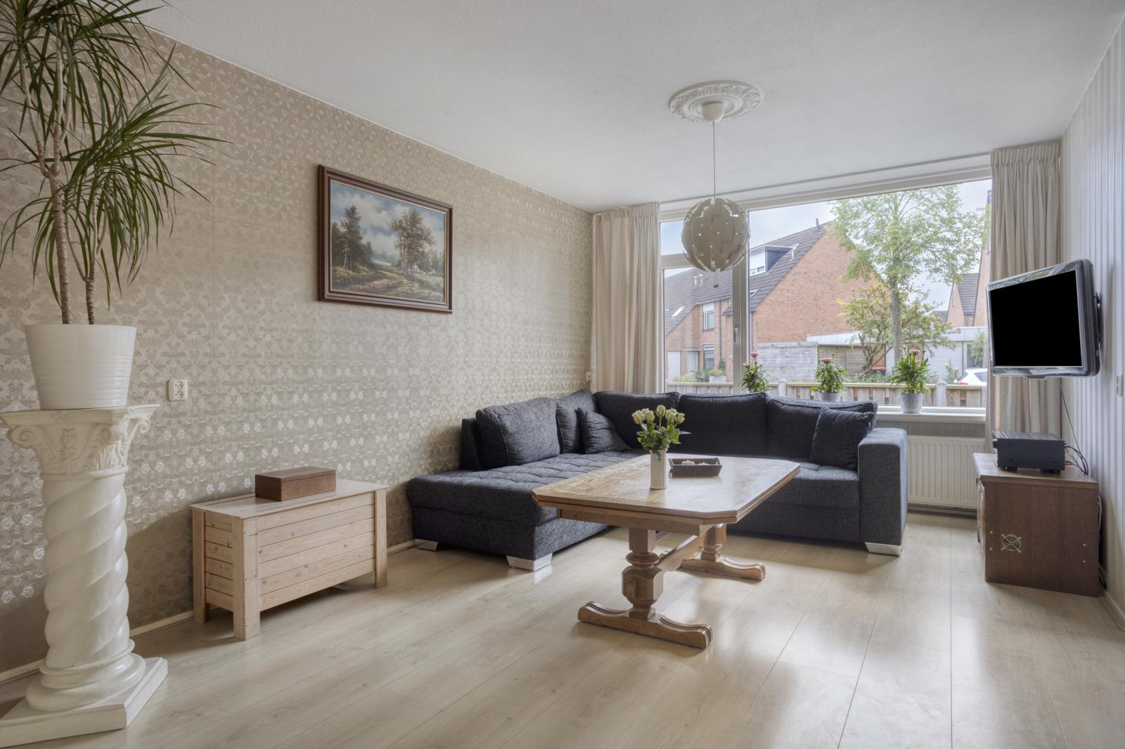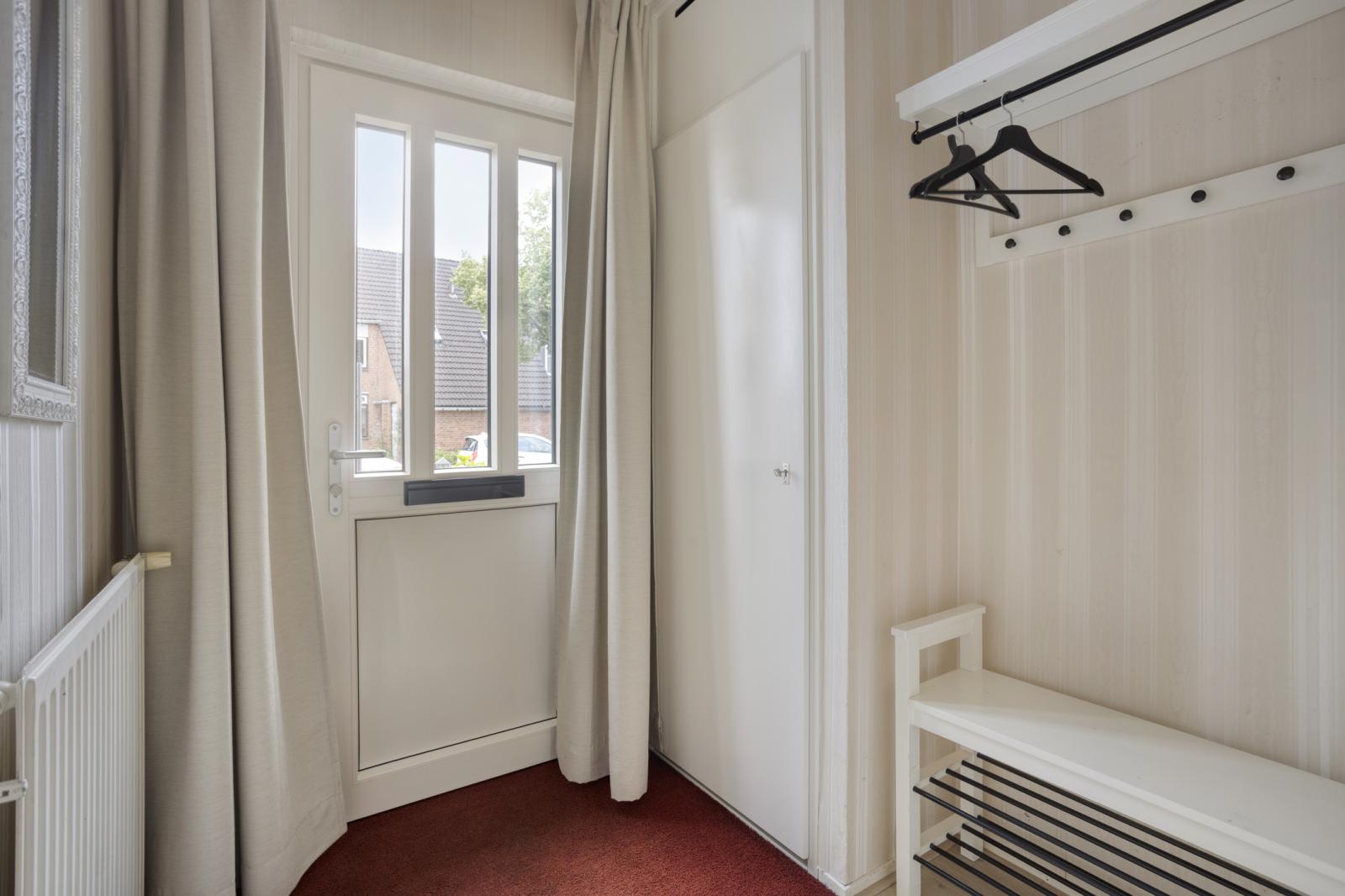 Een charmante voortuin leidt u naar de entree van de woning. Binnen treedt u de hal binnen, die direct een gevoel van ruimte en licht biedt. Hier vindt u voldoende plek voor een kapstok en een opbergmeubel, waardoor de hal zowel praktisch als uitnodigend aanvoelt.
