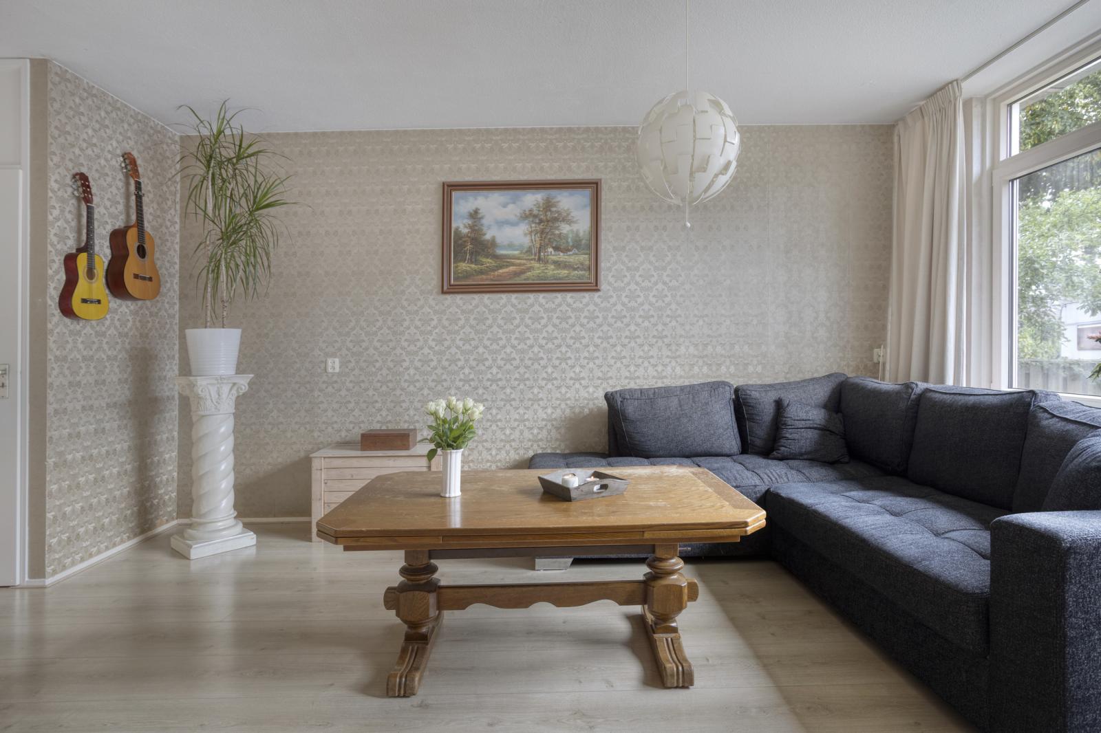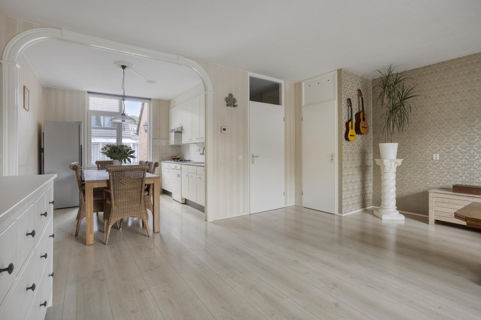De open woonkamer vormt het hart van de begane grond. Door de grote raampartijen is de kamer bijzonder licht en ruimtelijk. U heeft alle vrijheid om een comfortabele zithoek te creëren, terwijl er ook voldoende ruimte is voor een gezellige eethoek. Het geheel straalt ruimte uit en biedt een fijne plek om te ontspannen of gasten te ontvangen.