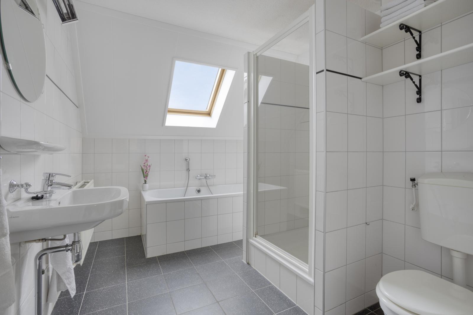 -Badkamer voorzien van douche, ligbad, wastafel en toilet