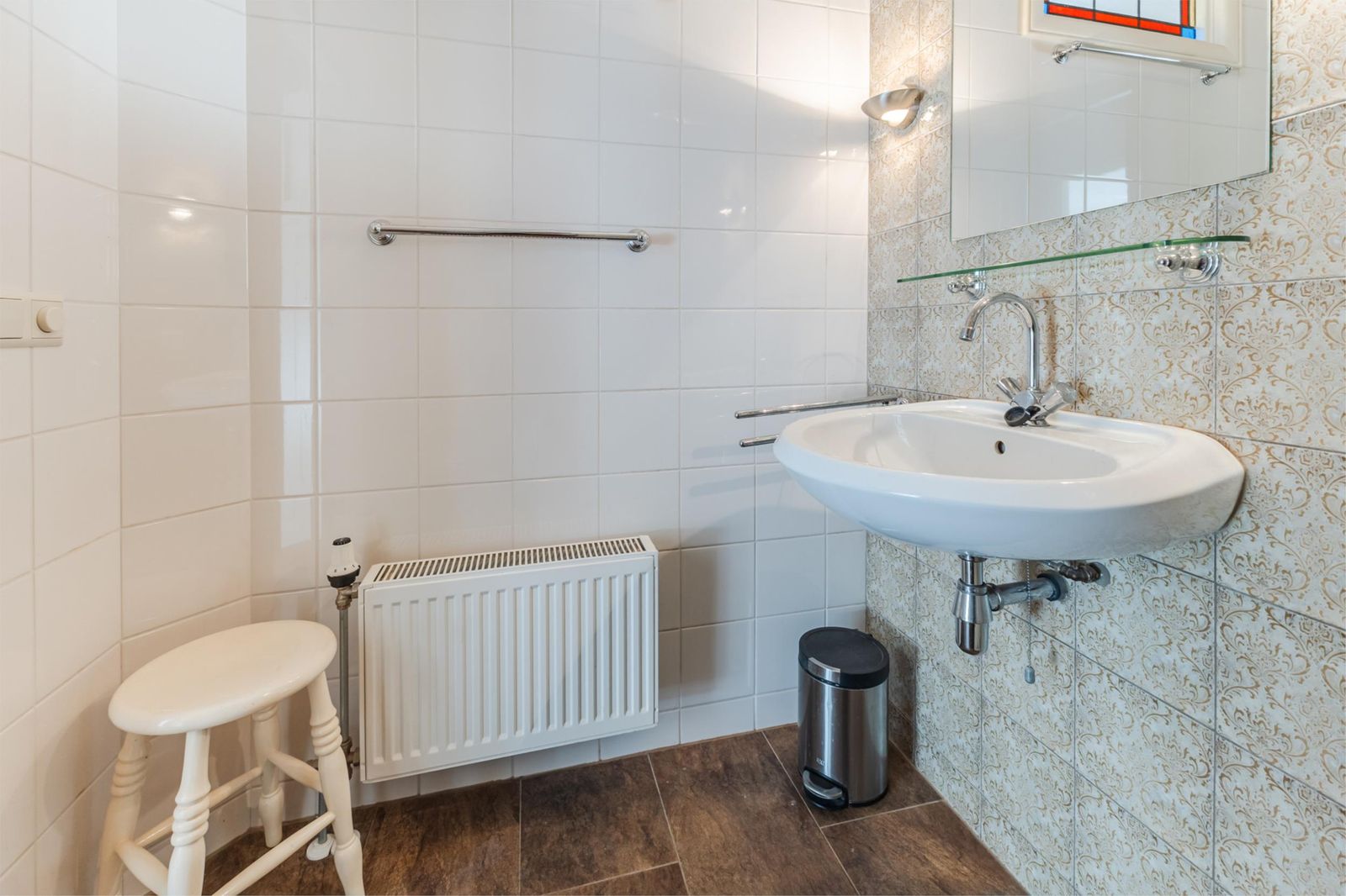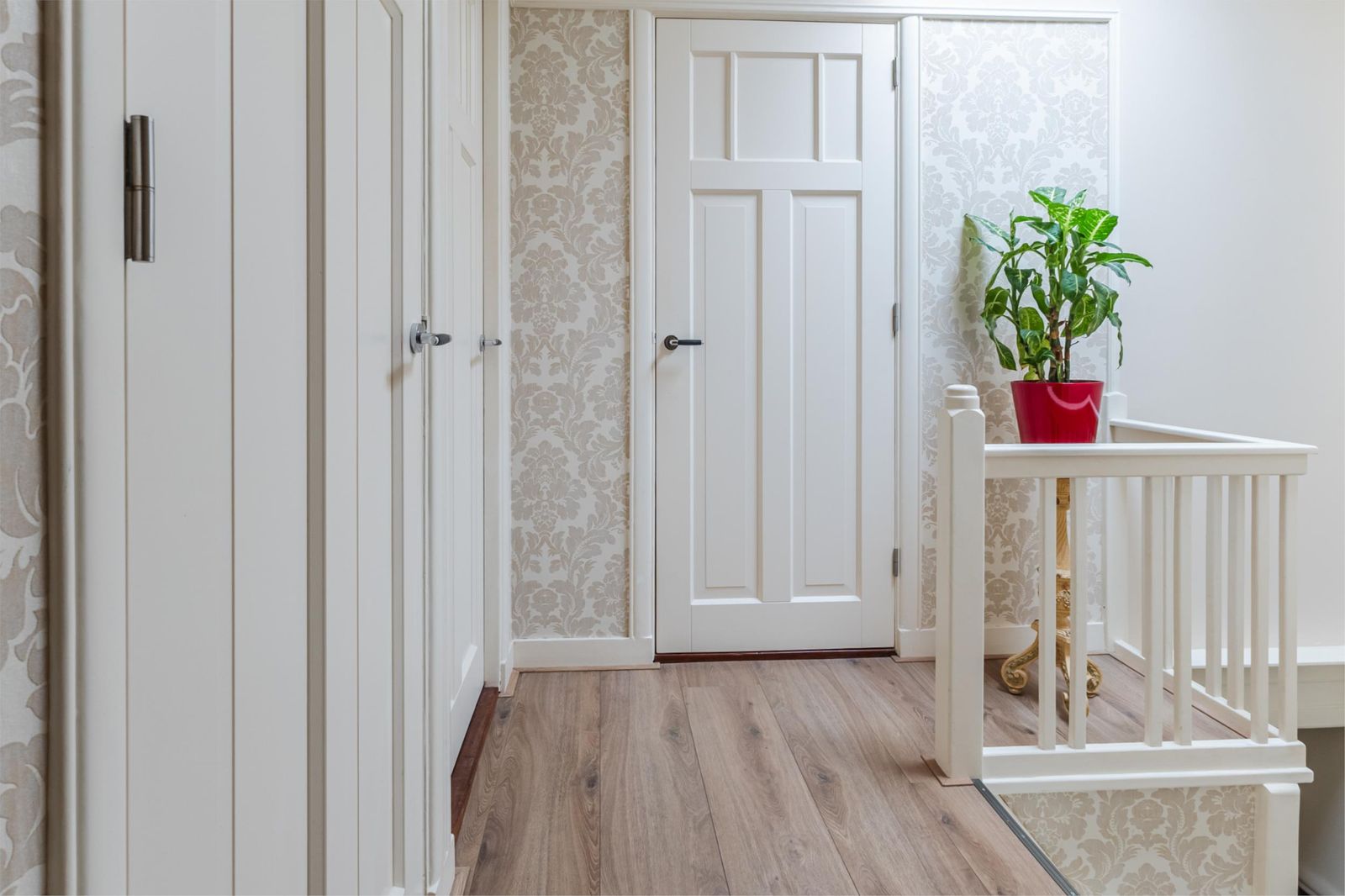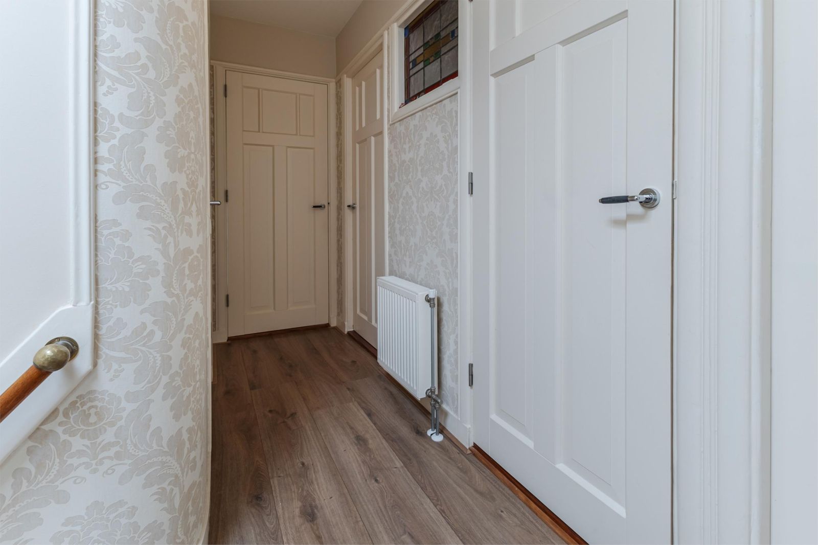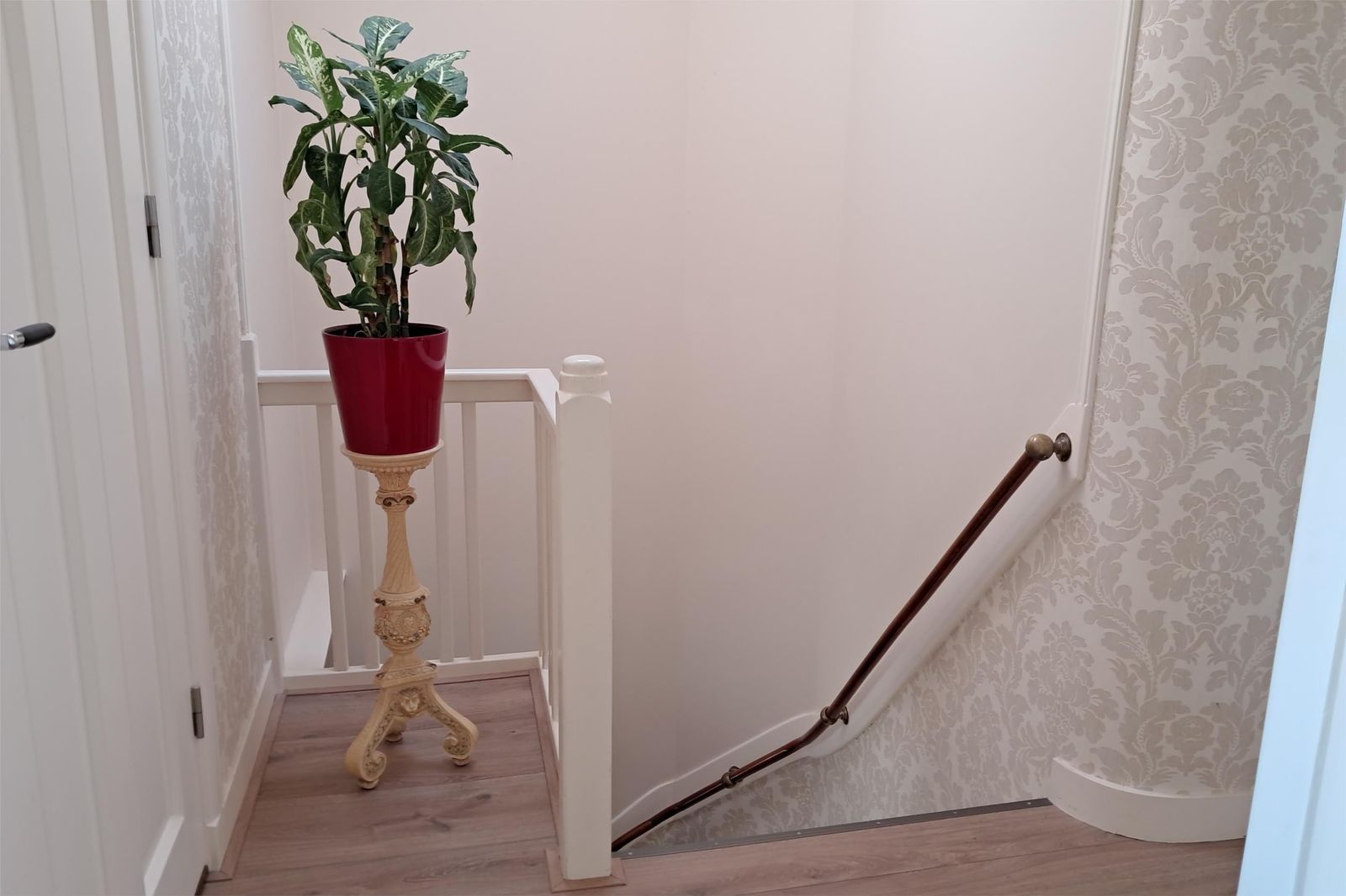 De woning strekt zich uit over de derde en vierde verdieping en voelt direct warm en uitnodigend aan. De entreehal is een echte blikvanger met een karakteristieke tegelvloer, nieuwe glas-in-looddeuren en een ingebouwde vitrinekast. Hier bevinden zich ook het toilet en de meterkast.