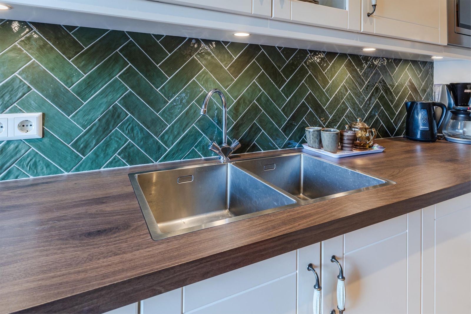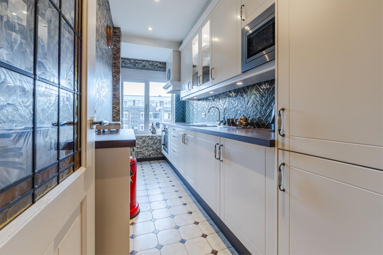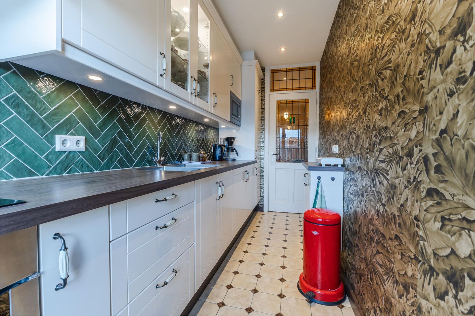 Op deze verdieping bevindt zich ook de keuken, enkele jaren geleden op maat en met de hand gemaakt en voorzien van diverse inbouwapparatuur.