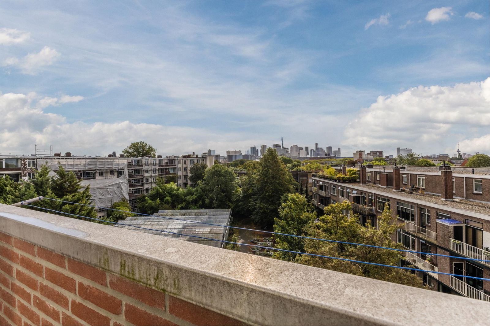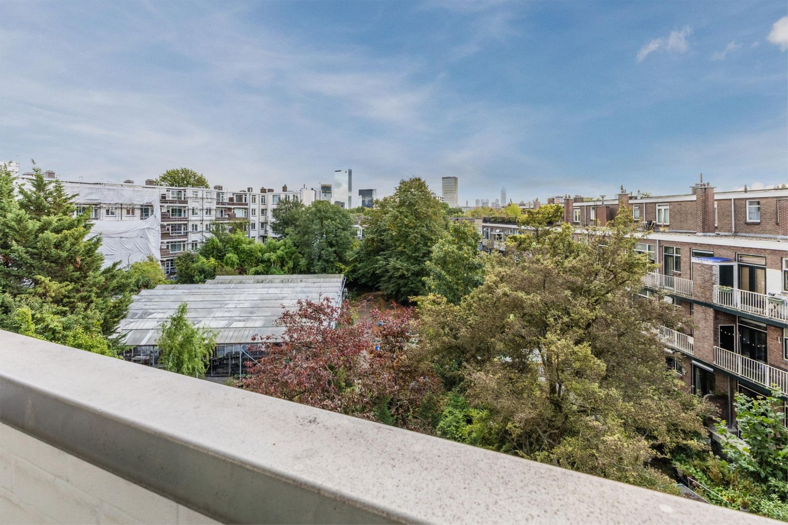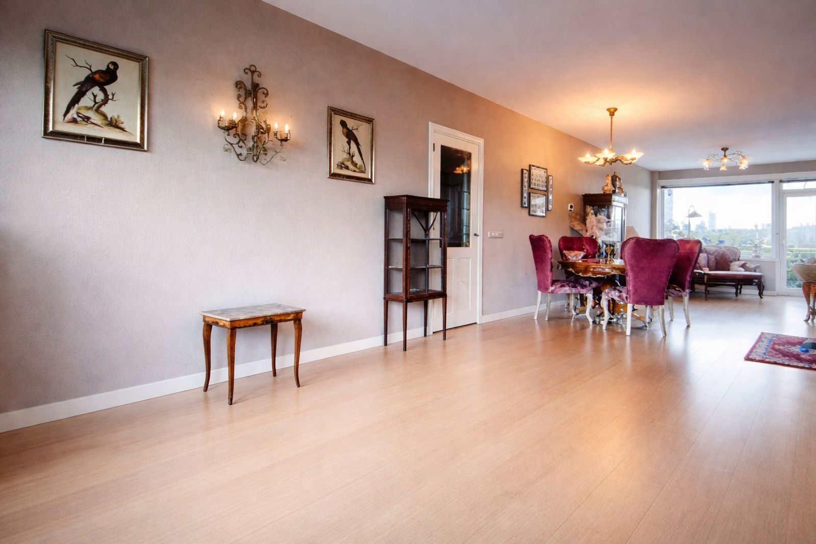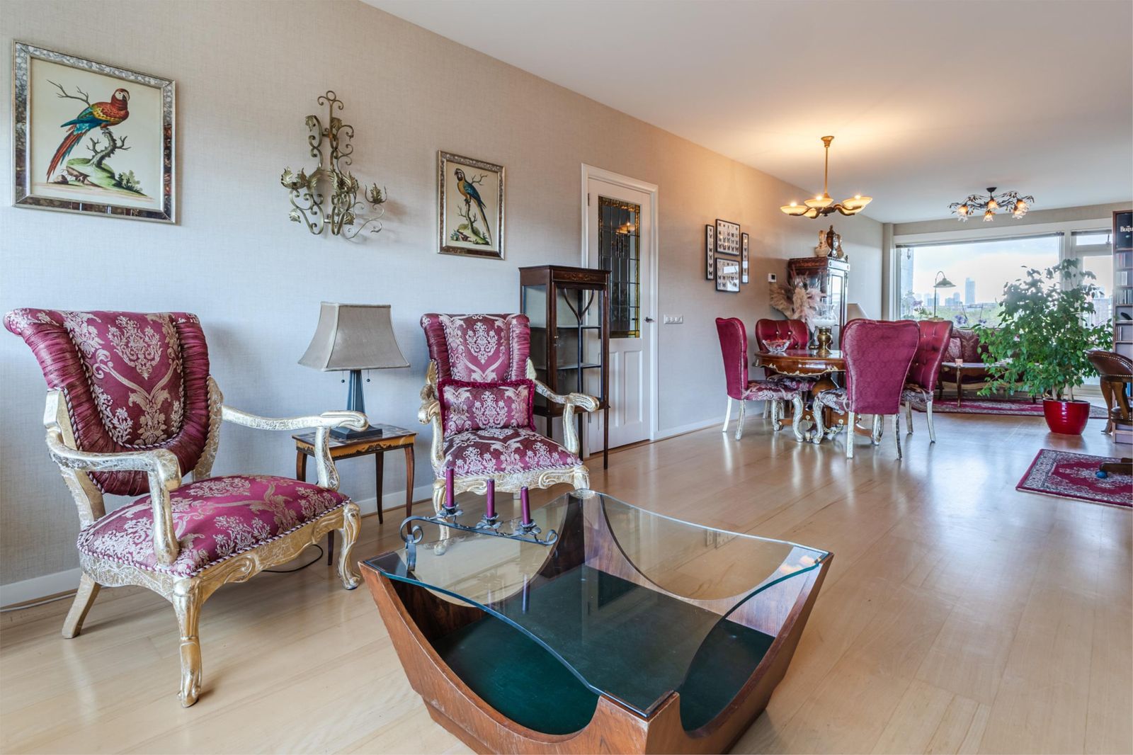De royale woonkamer is licht, lang en veelzijdig in te delen. Er is ruimte voor een comfortabele zithoek, een grote eettafel en bijvoorbeeld een speelhoek of werkplek. De open haard zorgt in de winter voor extra sfeer, terwijl de centrale verwarming (recent aangelegd) het hele jaar door comfort biedt. Het plafond en de wanden zijn recent vernieuwd en strak afgewerkt. Vanuit het inpandige balkon aan de achterzijde geniet je van een fraai uitzicht op de skyline van Rotterdam een uitzicht dat nooit verveelt.