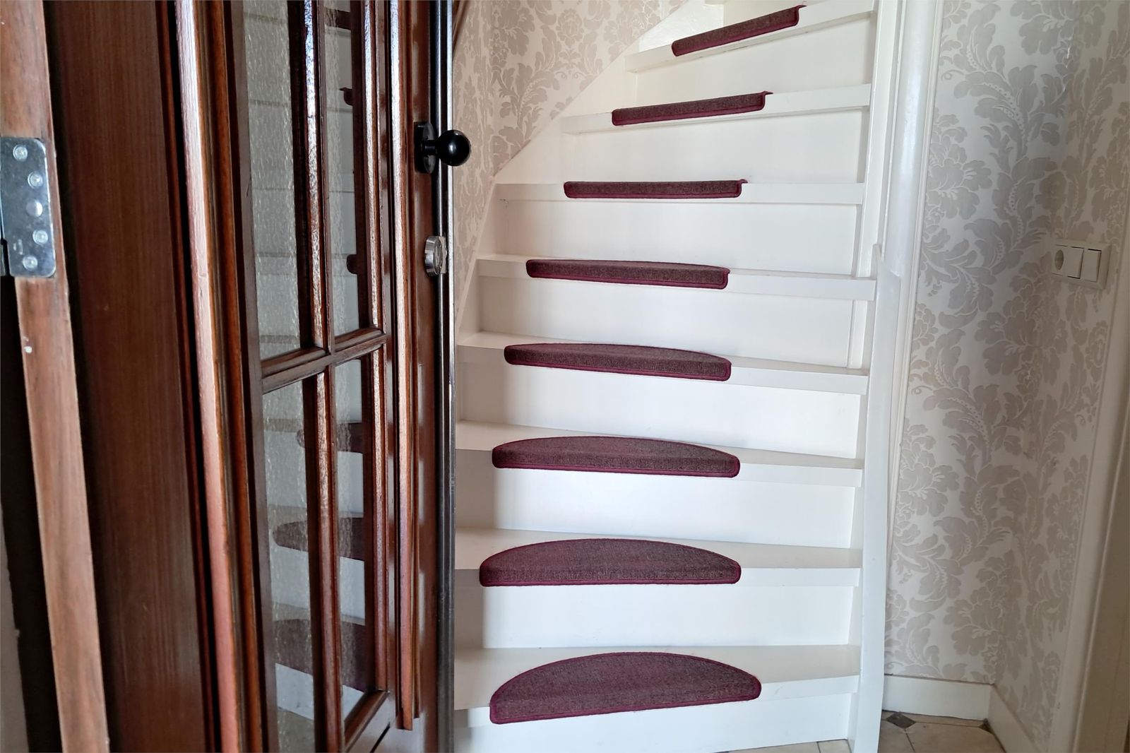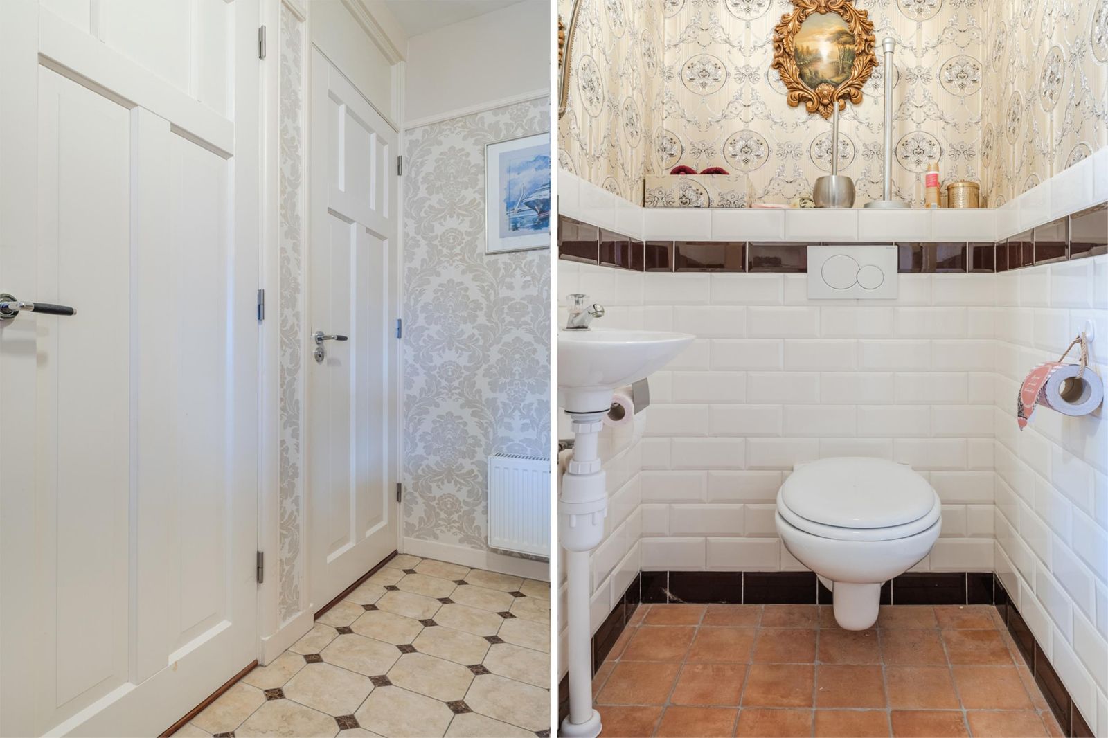 Dan het huis: op de derde verdieping kom je via de entree in de hal, met karakteristieke tegelvloer, nieuwe glas-in-lood deuren en een ingebouwd vitrinekastje. Hier zijn ook de meterkast en de wc.