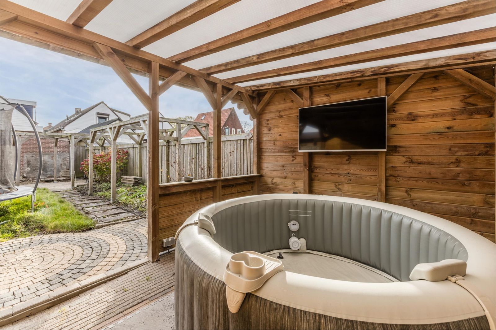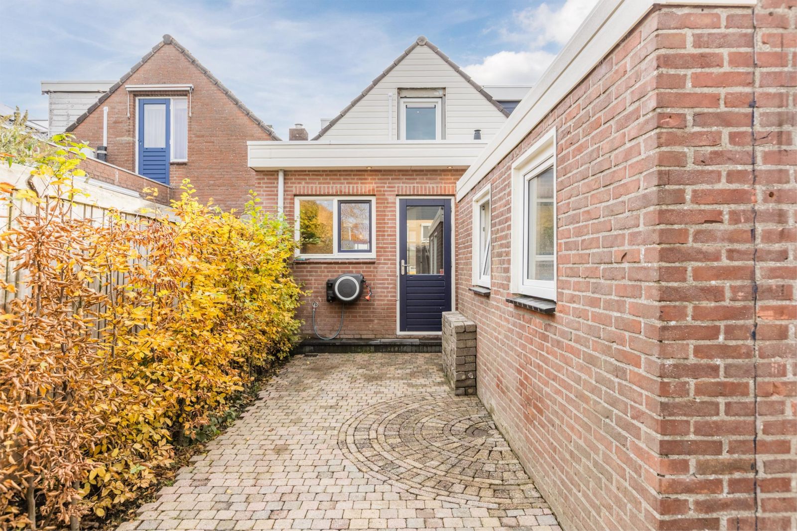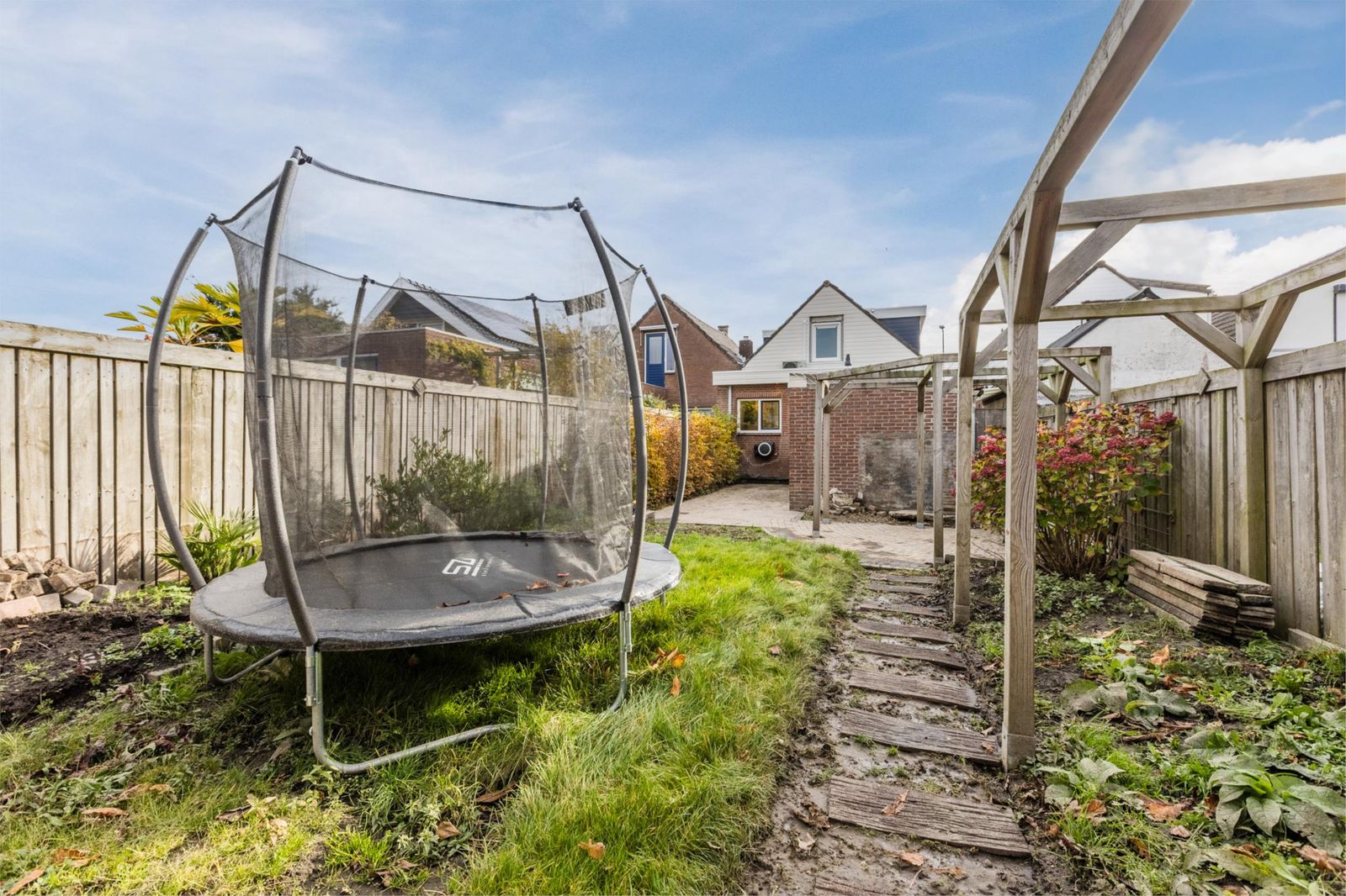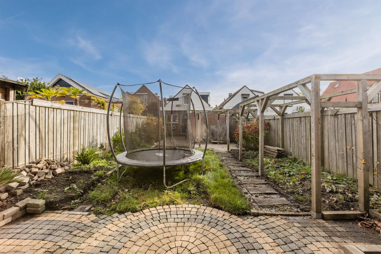 De 22 meter diepe achtertuin biedt veel mogelijkheden en is aangelegd met een combinatie van sierbestrating en groen. Achterin de tuin bevindt zich een overkapping met extra bergruimte, ideaal voor bijvoorbeeld een jacuzzi, loungeset of buitenkeuken.