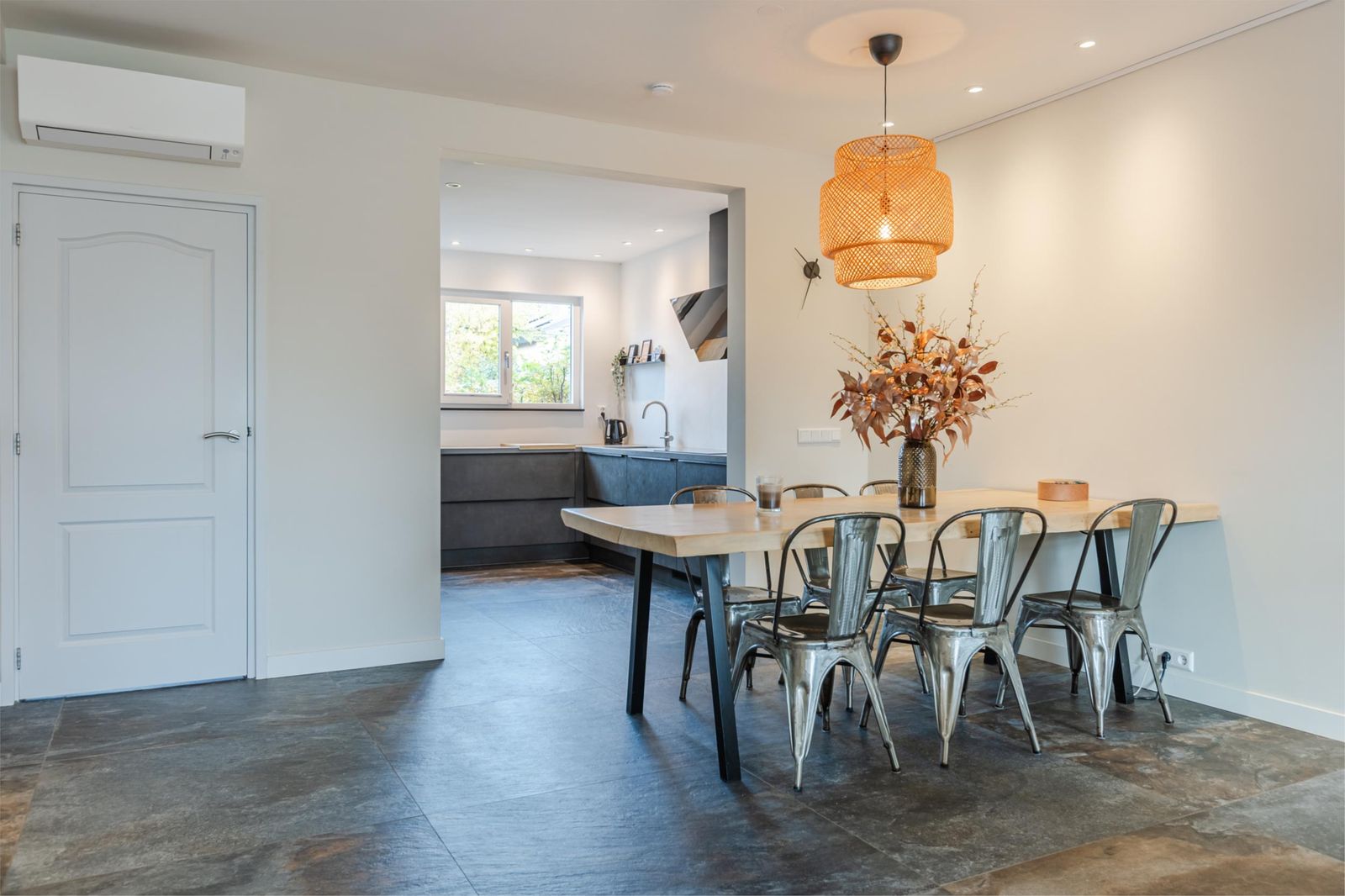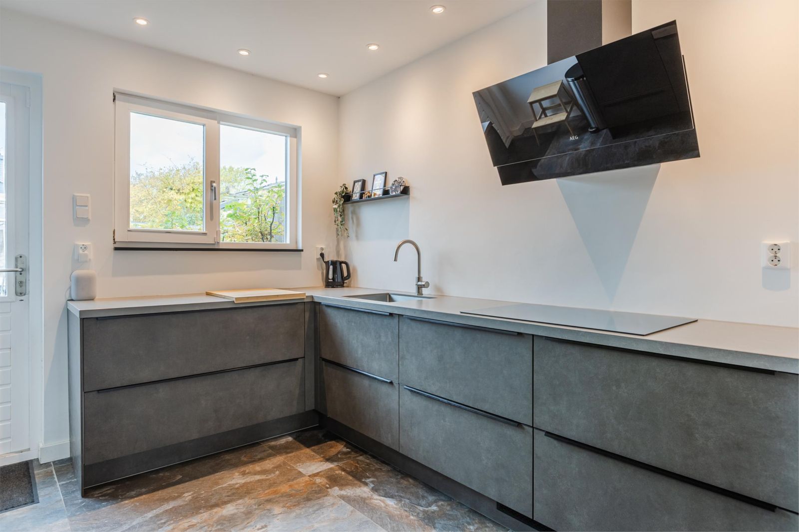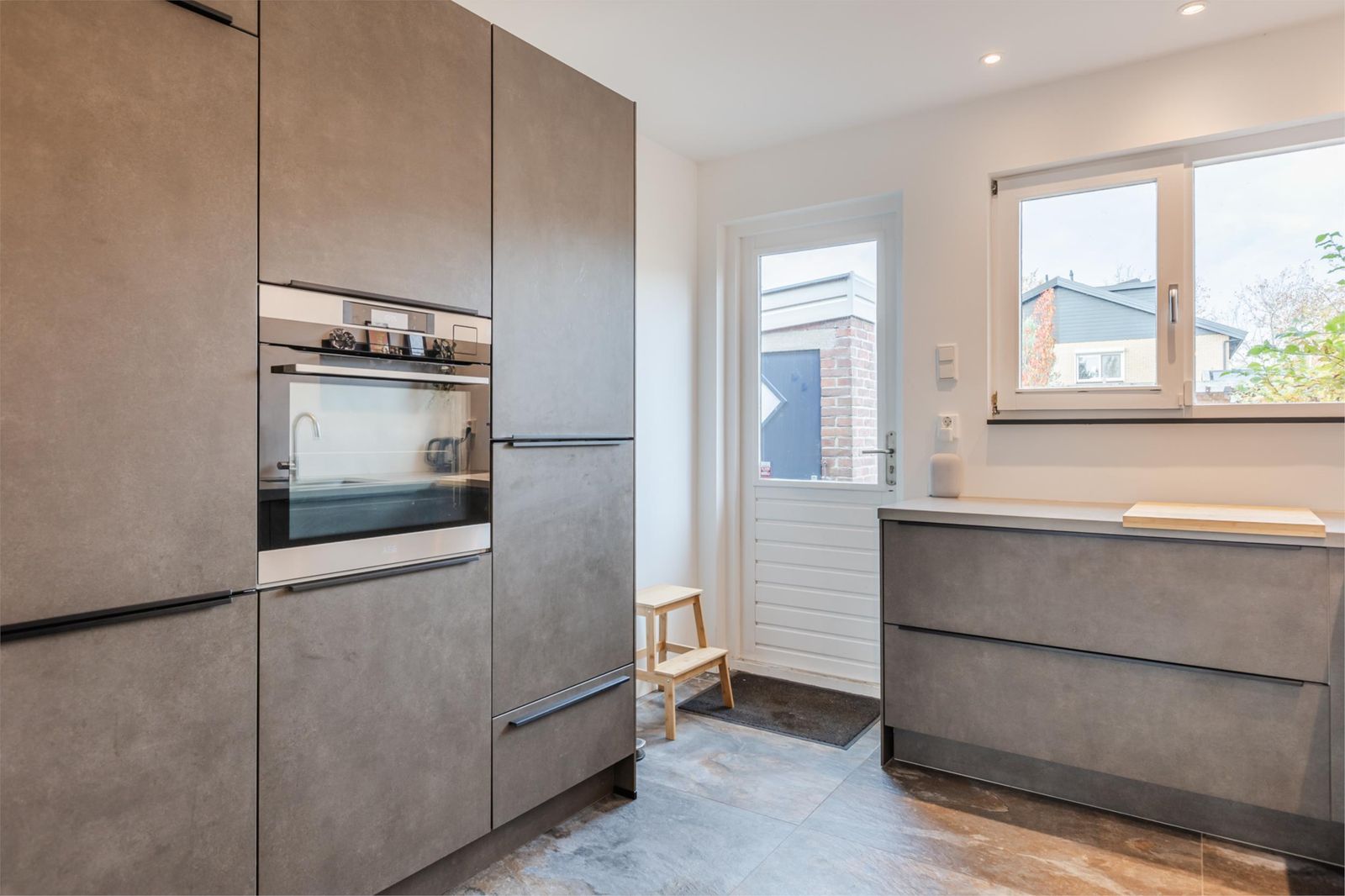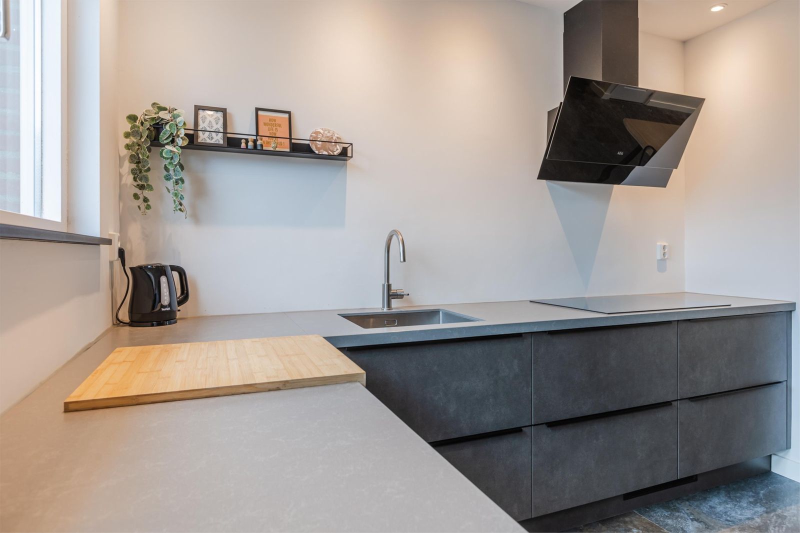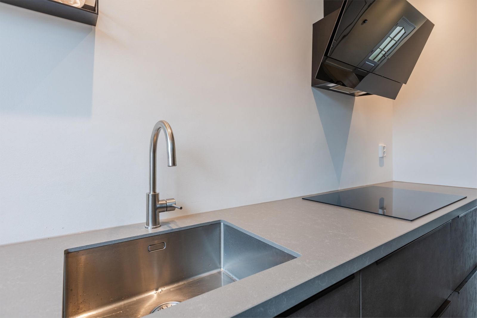 De open keuken is in 2023 geplaatst en in 2024 uitgebreid met een ATAG 4-pits inductiekookplaat en vaatwasser. De keuken beschikt verder over een AEG stoomoven en koel-/vriescombinatie. Ook hier zijn plafondspots aanwezig.