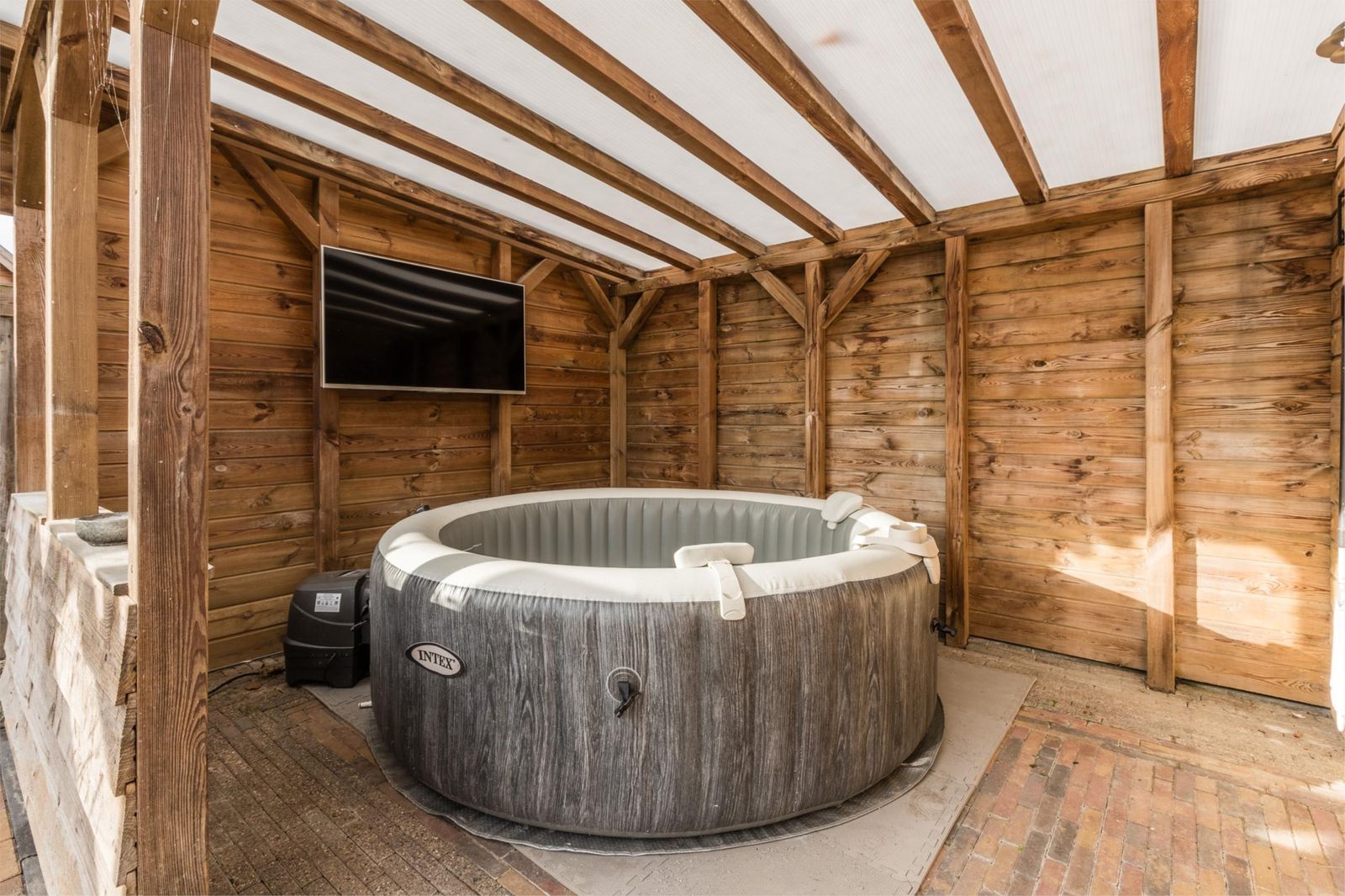 Voorin de tuin staat een volledig geïsoleerde stenen berging met elektra, perfect als hobbyruimte, werkplek of opslag. Daarnaast is er een buitenkraan met 25 meter tuinslang aanwezig en zowel de berging als de overkapping zijn voorzien van elektra. De tuin ligt op het westen, waardoor je tot laat in de avond van de zon geniet.