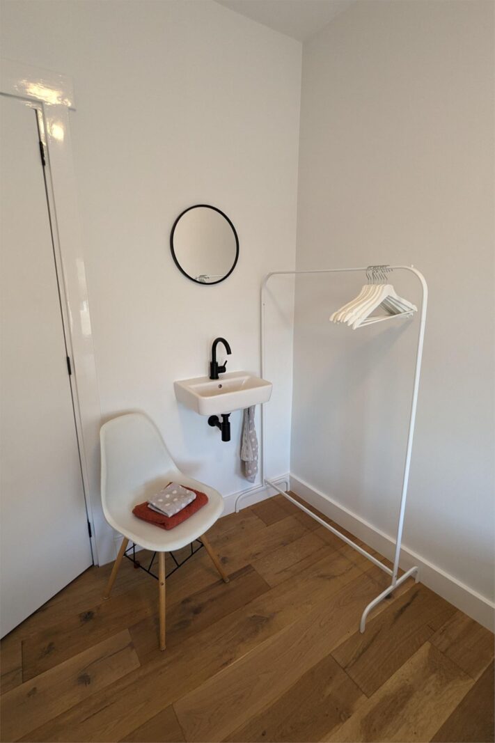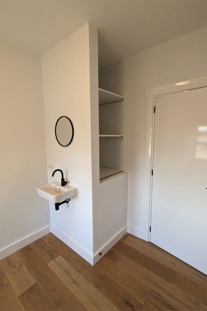 Twee ruime slaapkamers aan de voorzijde (beide ca. 3,8 x 2,3), elk met een eigen wastafel.