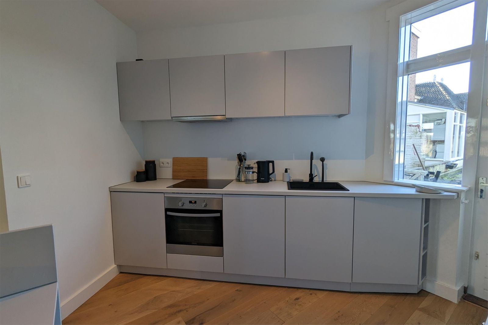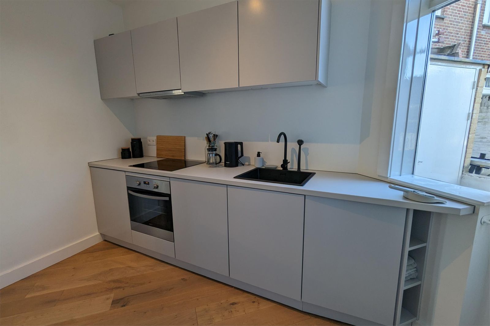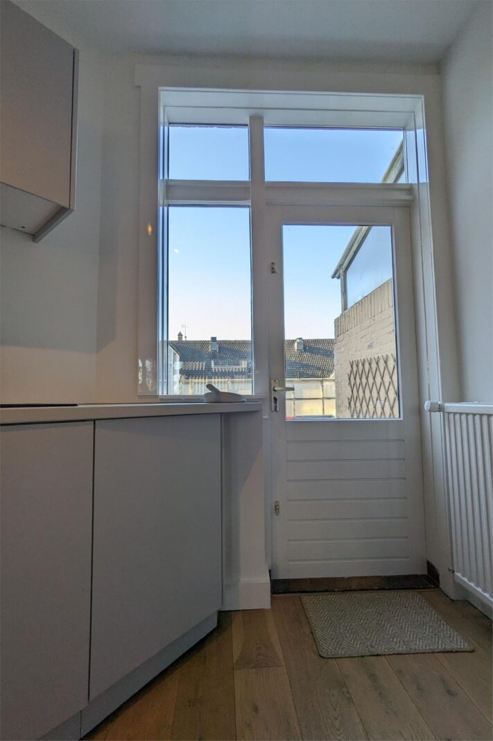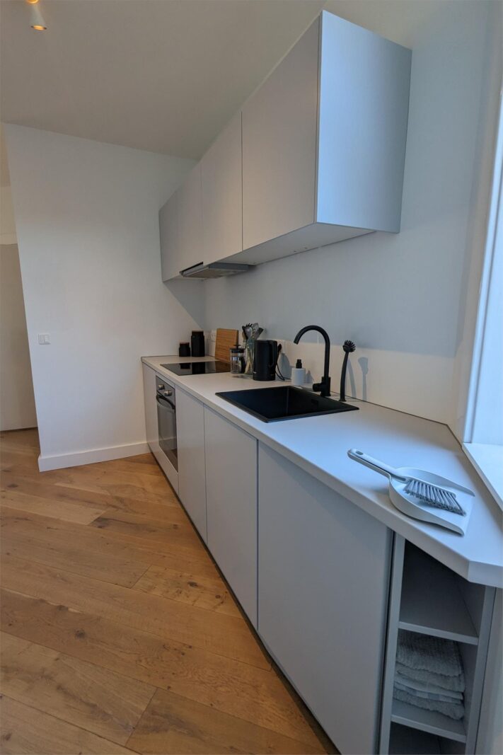 Maatwerk-keuken met hoogwaardige afwerking en toegang tot een knus balkon op het oosten;