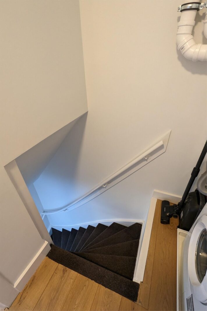 Ruime overloop met voorzieningen voor een trap naar het toekomstige dakterras;