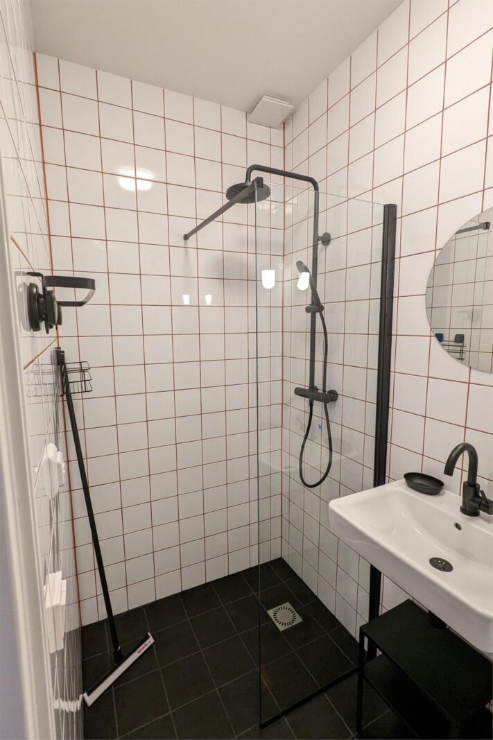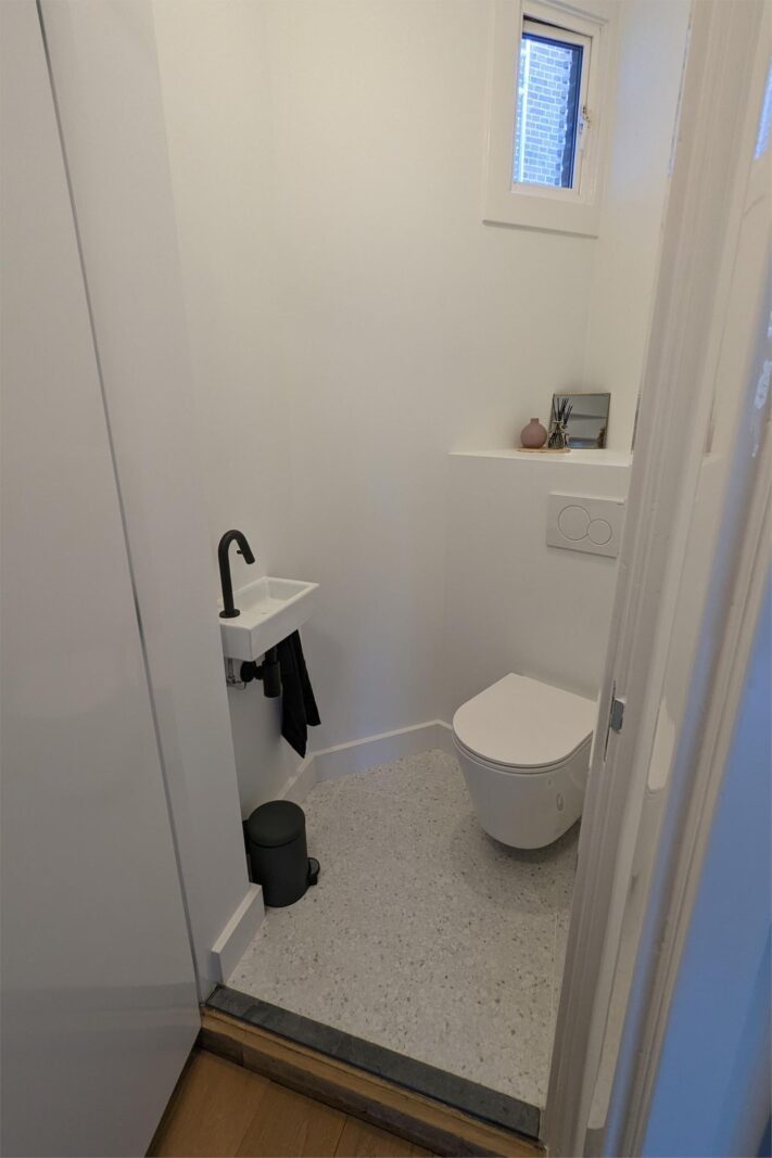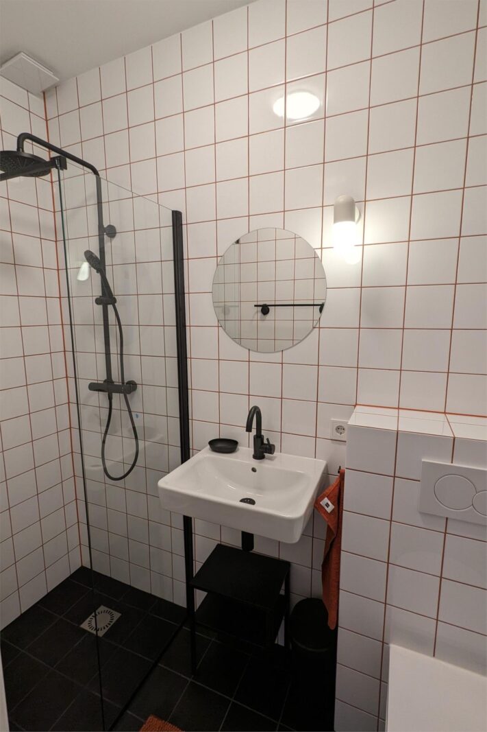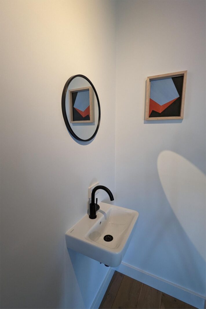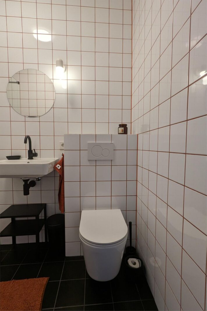 Moderne badkamer met inloopdouche, tweede toilet, en stijlvolle wastafel;