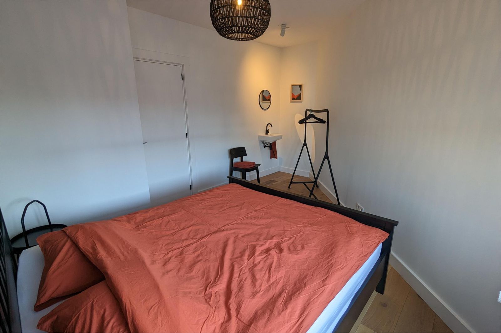 Hoofdslaapkamer aan de achterzijde, voorzien van wastafel;