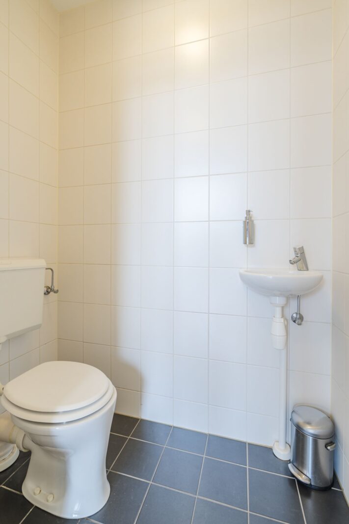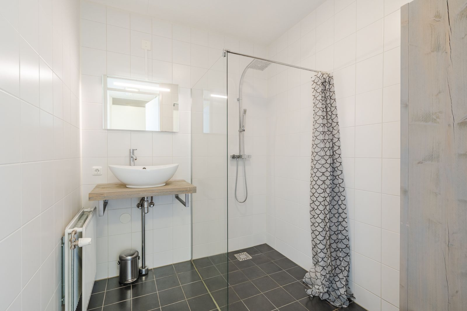 - een moderne, volledig betegelde badkamer met inloopdouche en designwastafel