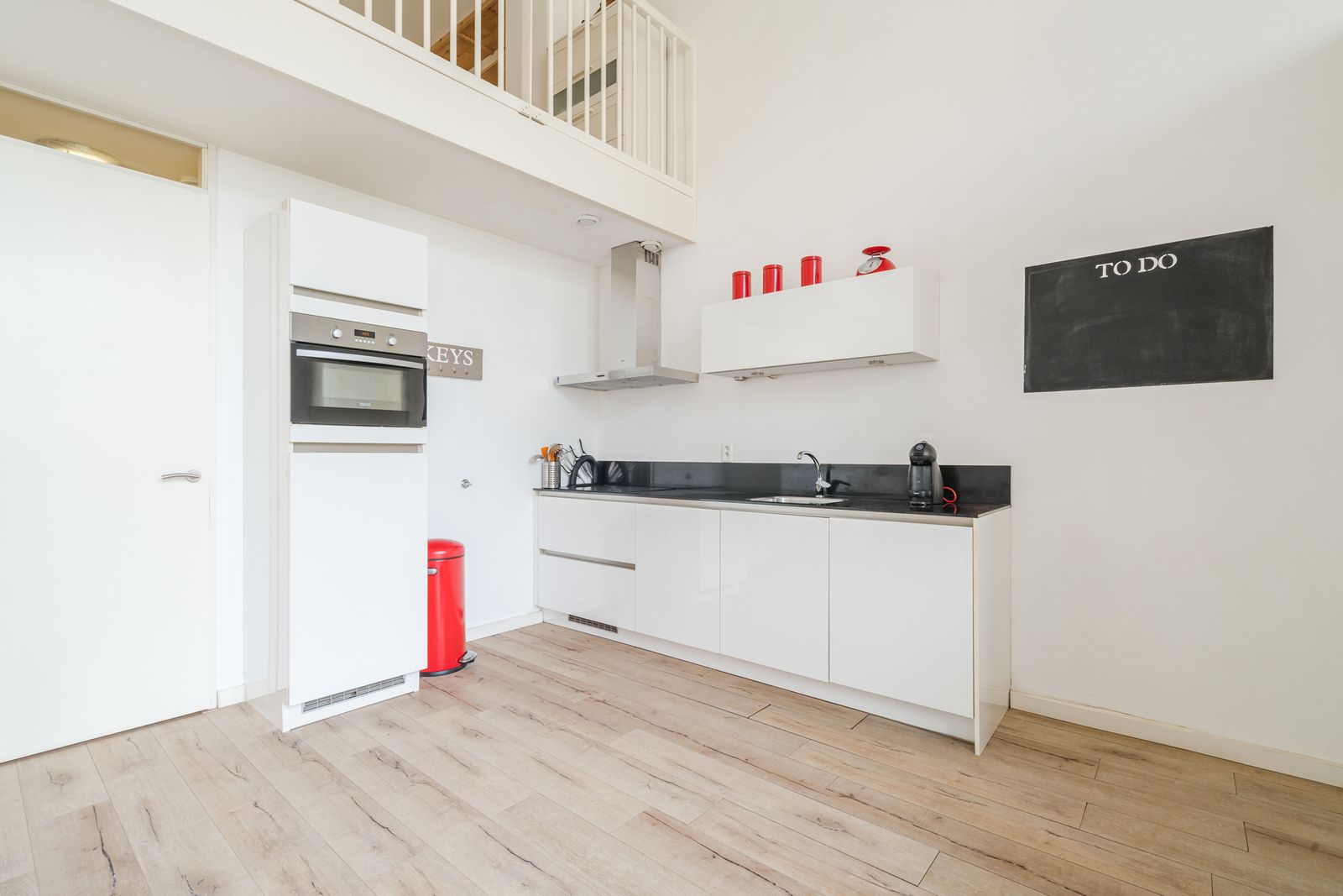 De afwerking is strak en eigentijds. De luxe laminaatvloer en de hoogglans witte keuken vormen een modern geheel. De keuken is uitgerust met een inductiekookplaat, vaatwasser, koelkast en combi-oven/magnetron; het composieten werkblad maakt het plaatje compleet.