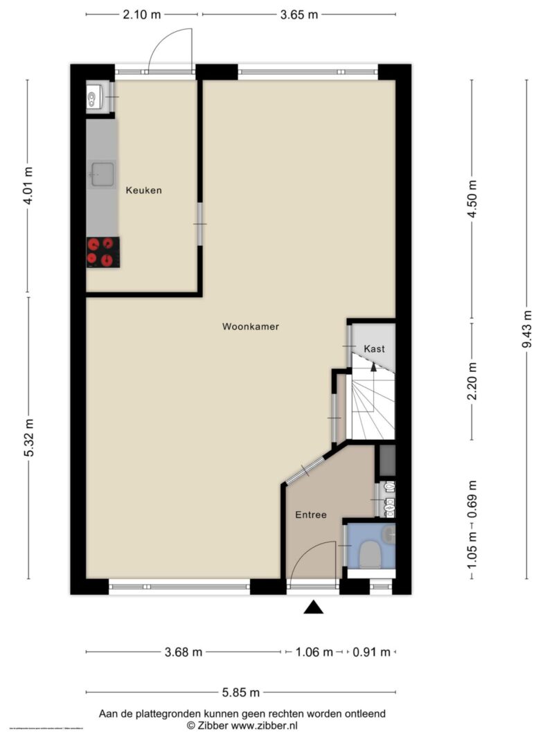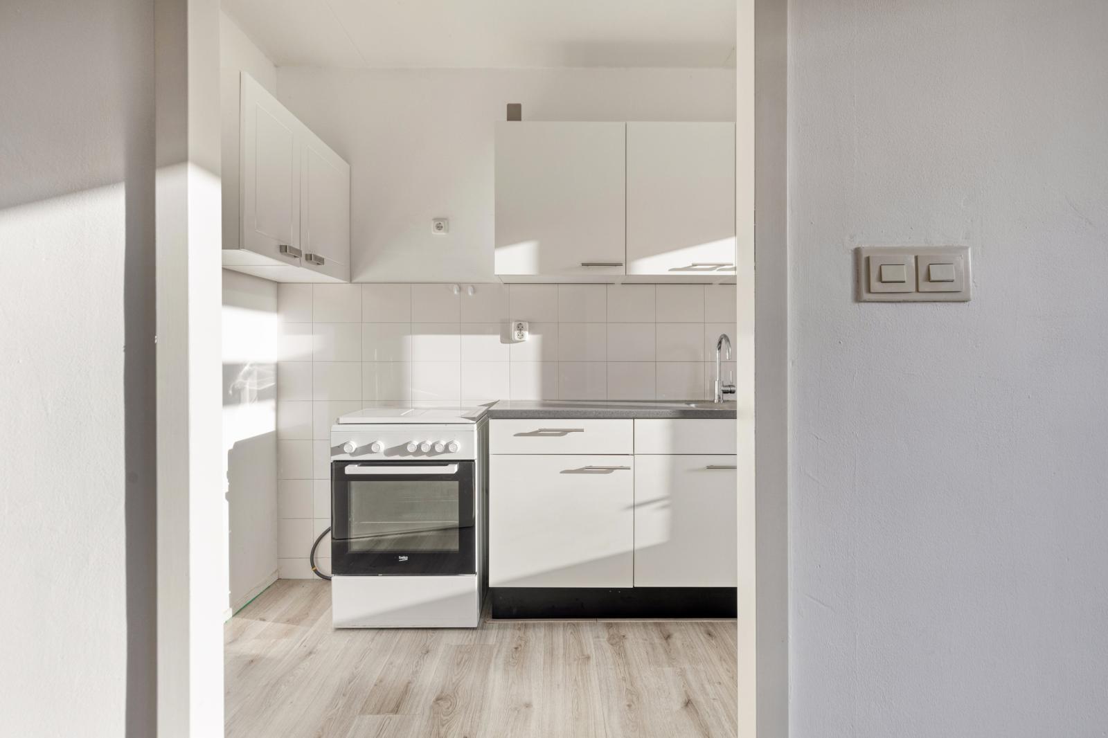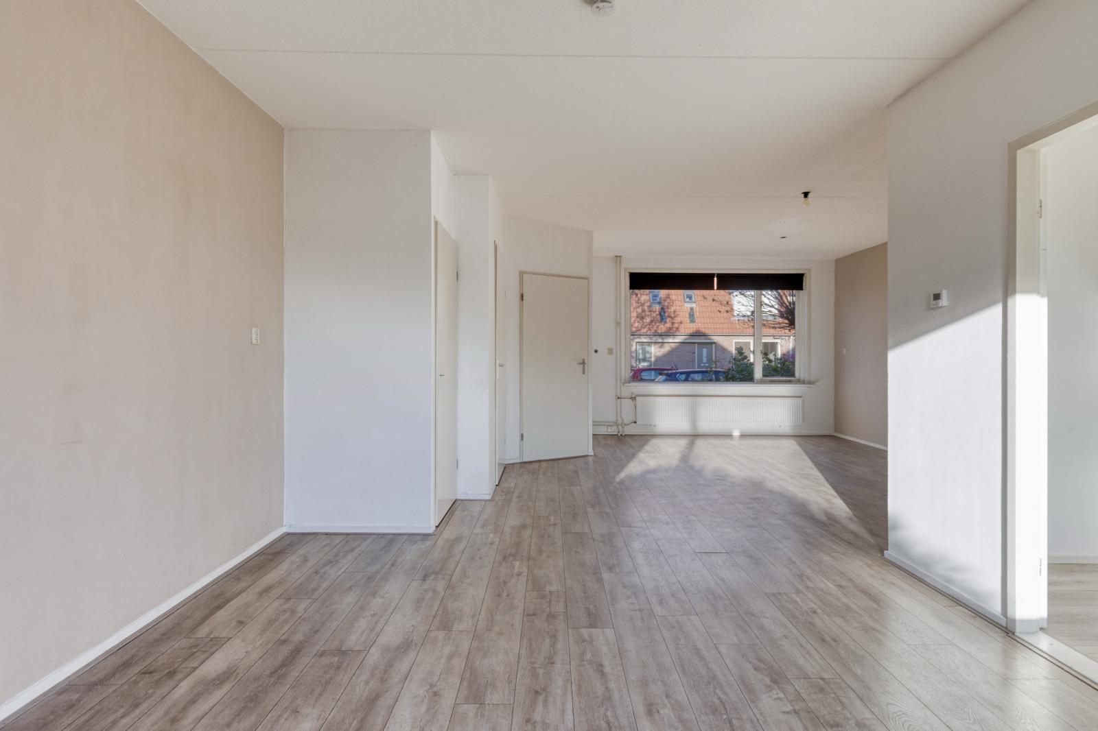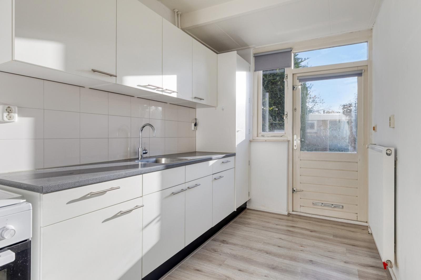 Entree met hal, meterkast, toilet en trapopgang naar de eerste verdieping. De lichte woonkamer van ca. 35 m² biedt ruimte voor een comfortabele zithoek aan de voorzijde en een eethoek aan de achterzijde. De dichte keuken is gesitueerd aan de tuinzijde en geeft toegang tot de achtertuin. De keuken is eenvoudig uitgevoerd, maar netjes onderhouden.