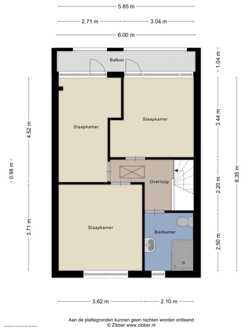 _ Slaapkamer 1 (voorzijde): ca. 3,62 m x 3,71 m