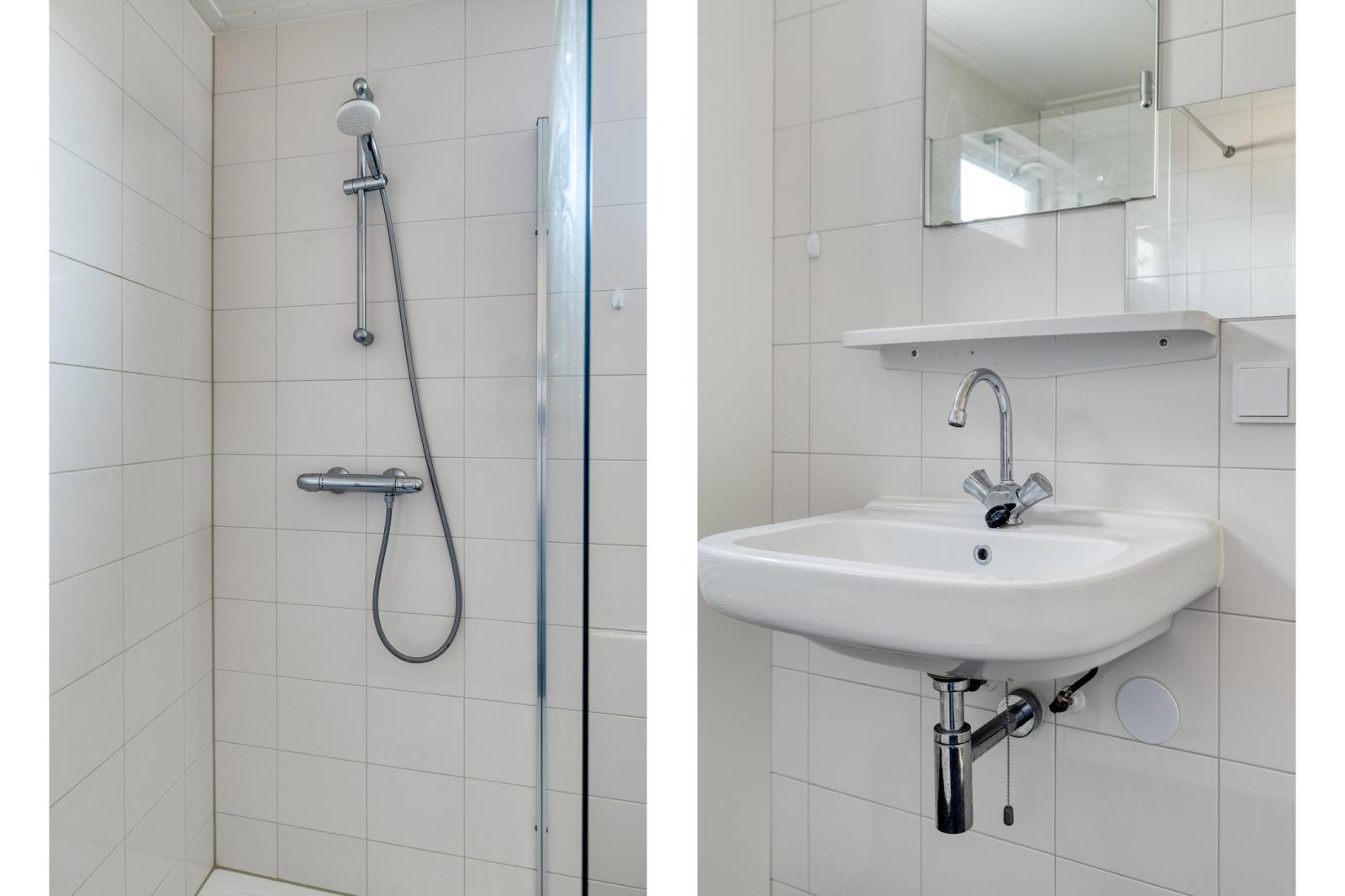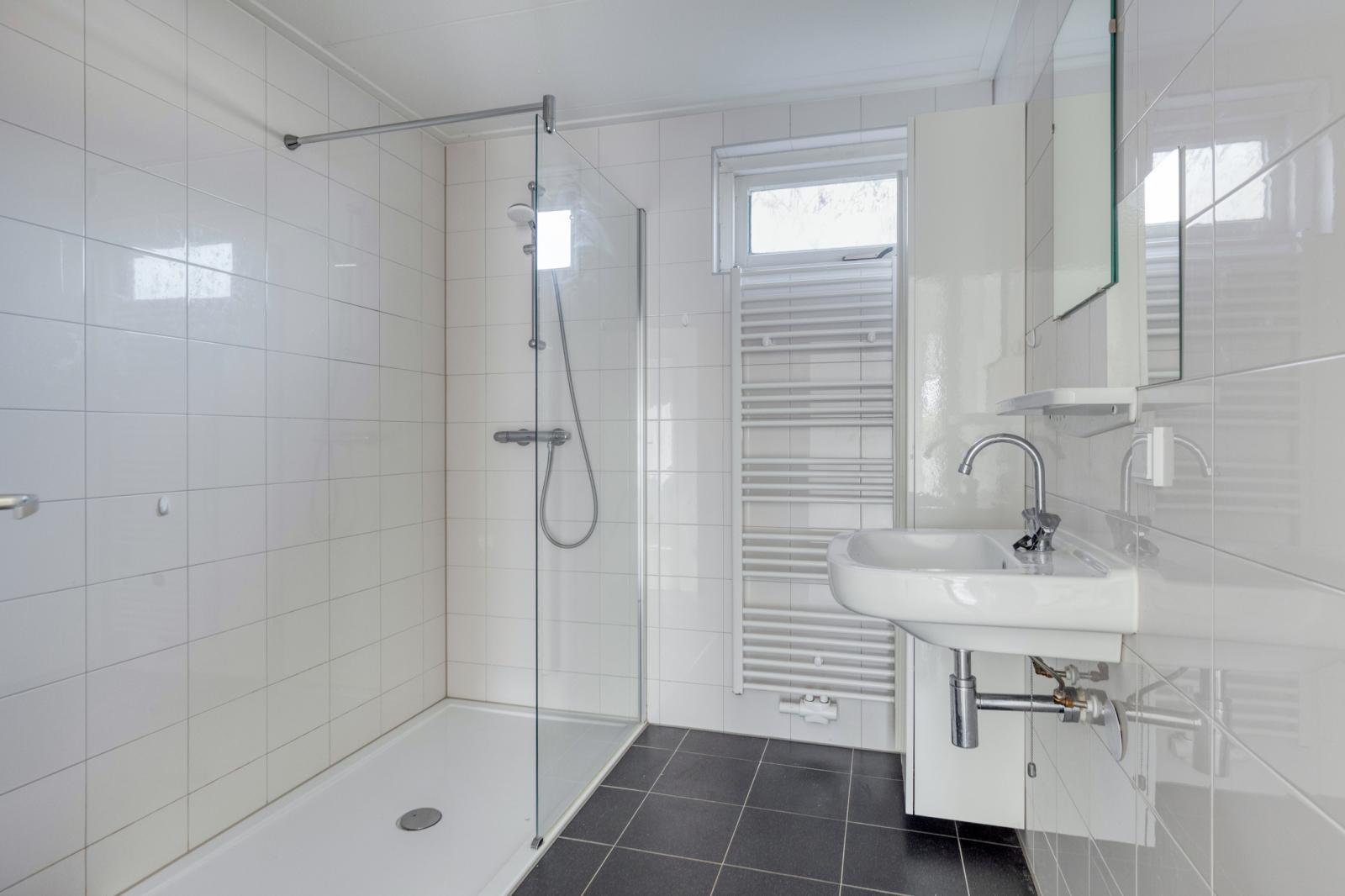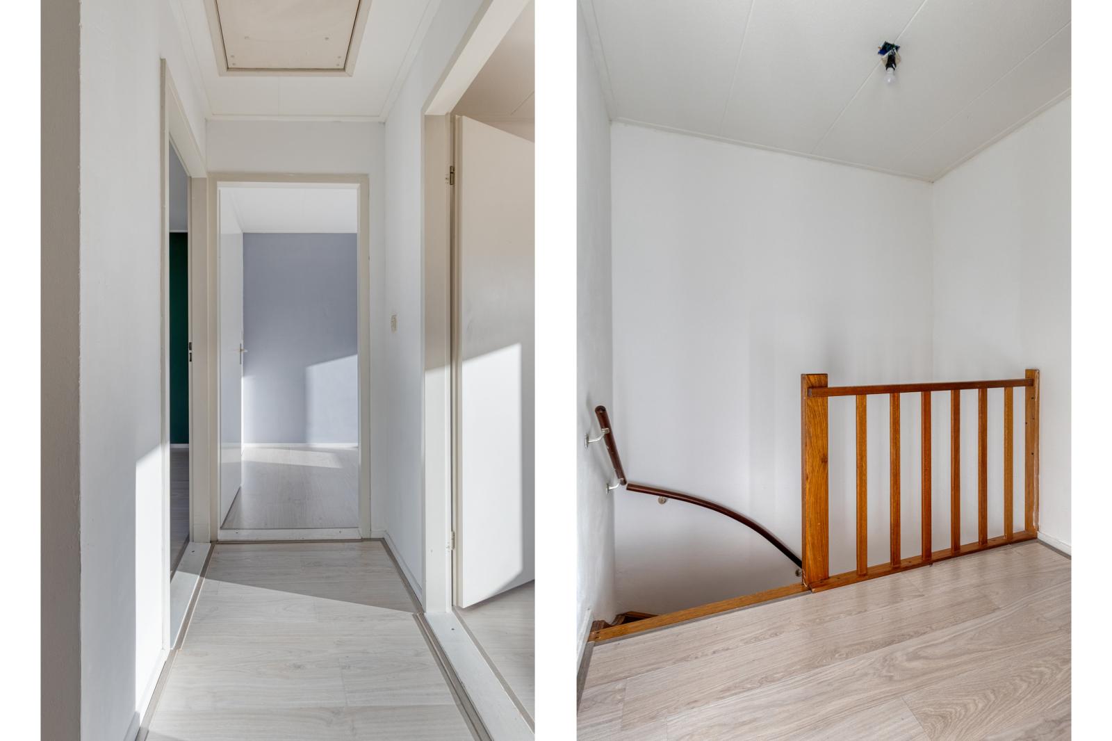 Overloop met toegang tot drie slaapkamers en de badkamer. De badkamer is voorzien van een inloopdouche, wastafel en toilet. De slaapkamers zijn als volgt ingedeeld:
