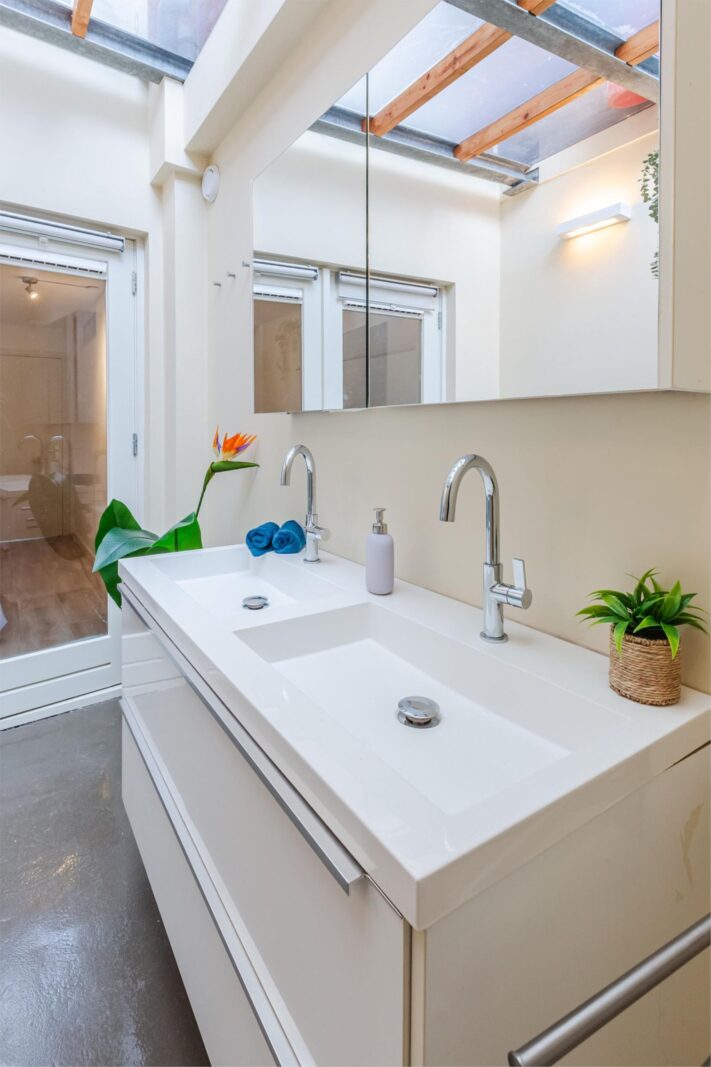 De Ten Katestraat is een van die bijzondere straten in Oud-West: overdag levendig dankzij de markt, maar ’s avonds rustig en autovrij. De markt bevindt zich direct voor de deur. – ideaal voor wie houdt van reuring, maar ook van rust. De buurt heeft zich de afgelopen jaren ontwikkeld tot een van de populairste delen van de stad. De Hallen – met haar filmtheater, bibliotheek, foodhallen en creatieve werkplekken – vormt het kloppende hart van de wijk. Daarnaast vind je om de hoek tal van gezellige koffiebars en winkels in de Kinkerstraat, De Clercqstraat en op de Bilderdijkkade. Ook het Vondelpark en het centrum/Jordaan liggen op loop- of fietsafstand. Openbaar vervoer (tram en bus) is binnen twee minuten bereikbaar, en met de auto zit je zo op de Ring A10.