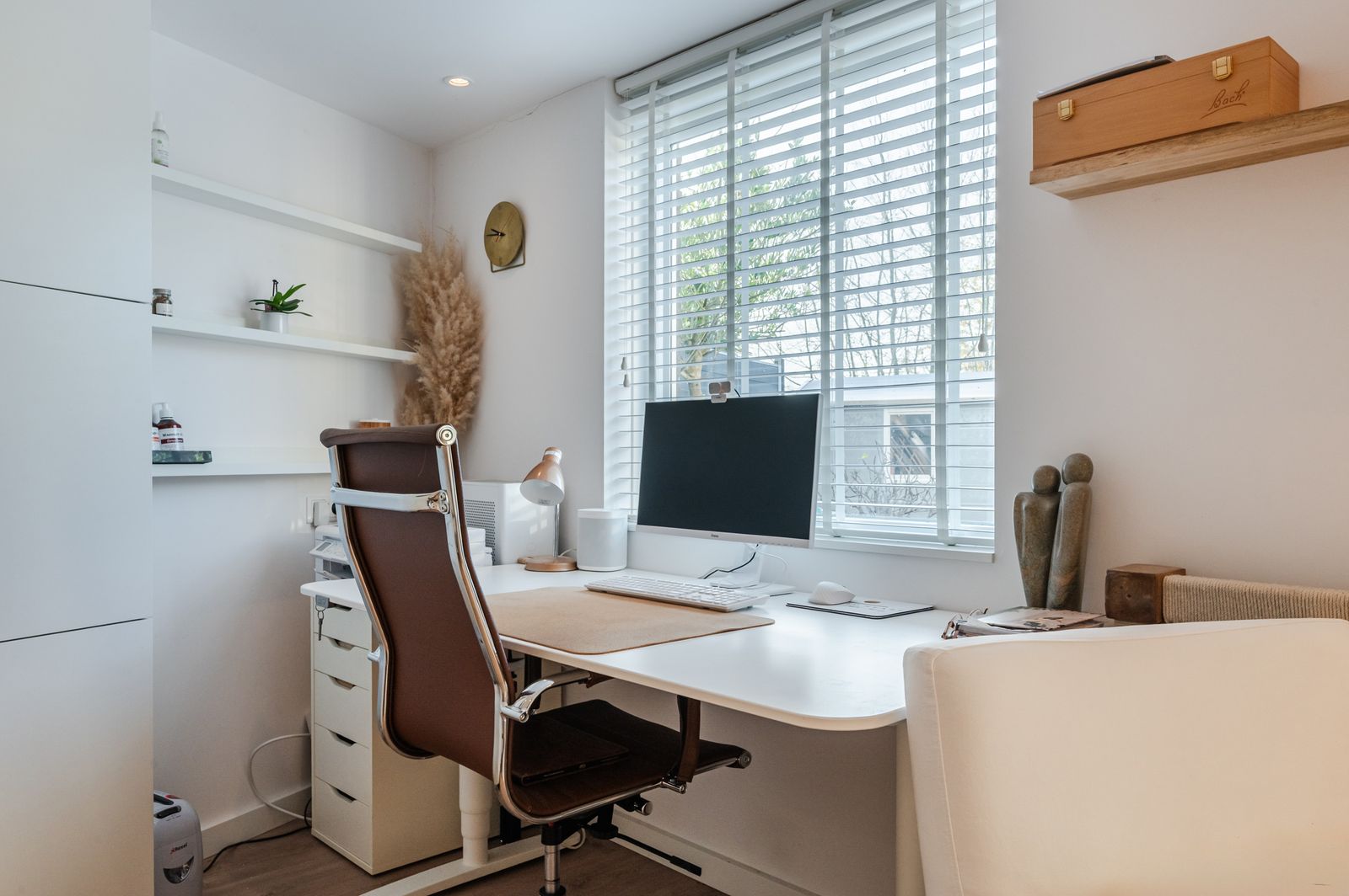 -Royale hoekwoning met garage, die momenteel is opgedeeld in een praktijk/kantoorruimte (24 m2) en garage (13 m2): ruimte genoeg om wonen én werken te kunnen combineren.