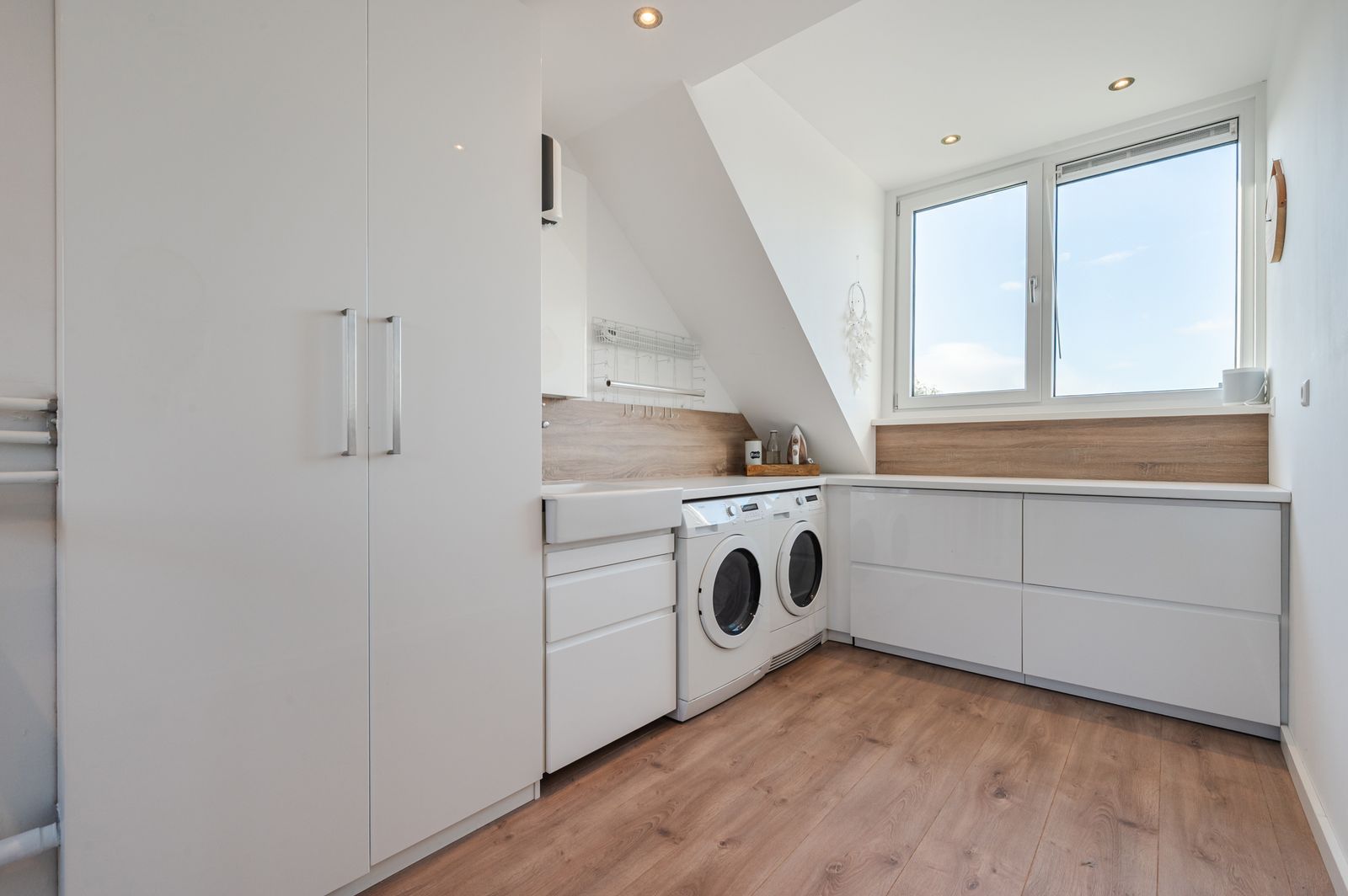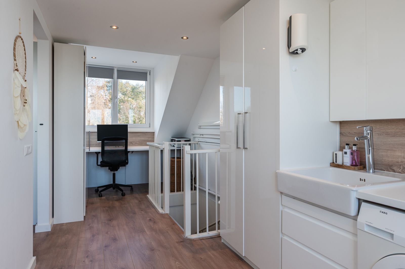 Attic: Landing with laundry area and desk, open and lofty space with dormer windows at the front and back (2019). Can easily be divided into two additional bedrooms.