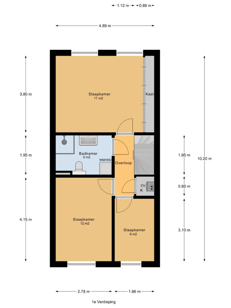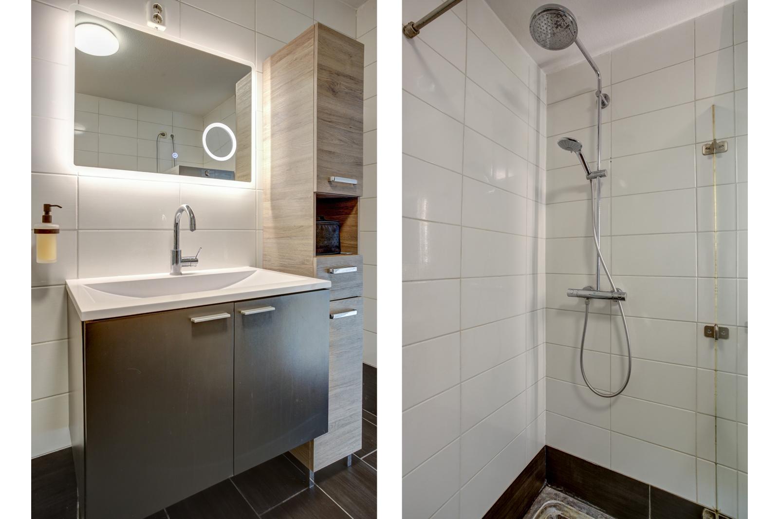 Op de eerste verdieping bevinden zich drie goed bemeten slaapkamers, 1 voorzien van laminaat, 1 van Pvc, en de ander van Novilon. De moderne badkamer (2018) beschikt over een ruime douche, wastafel en een tweede toilet. Hier vind je ook de opstelling voor de wasmachine en droger.