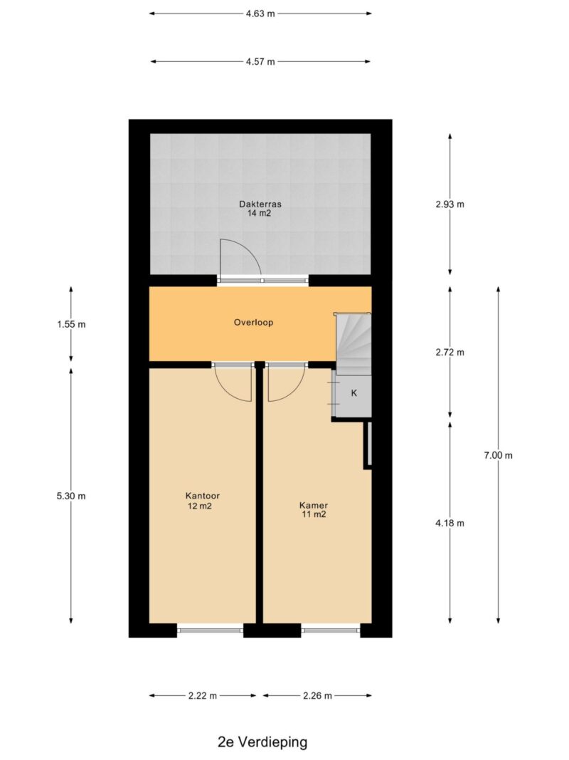 In 2004 is de tweede verdieping opgebouwd, waarmee twee ruime slaapkamers zijn gecreëerd. Beide slaapkamers zijn glad gestuukt en 1 voorzien van vloerbedekking, de andere van Pvc. Ook vind je hier een gezellig en zonnig dakterras (gericht op het zuiden).