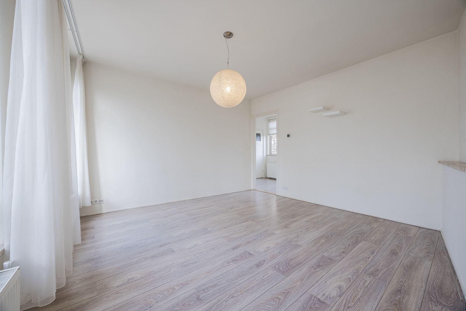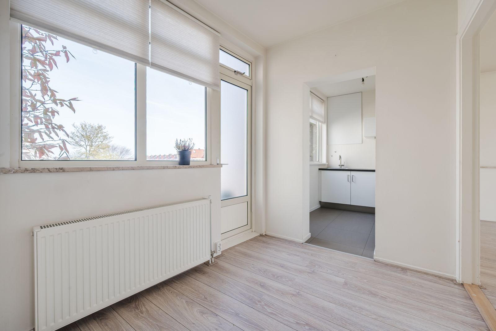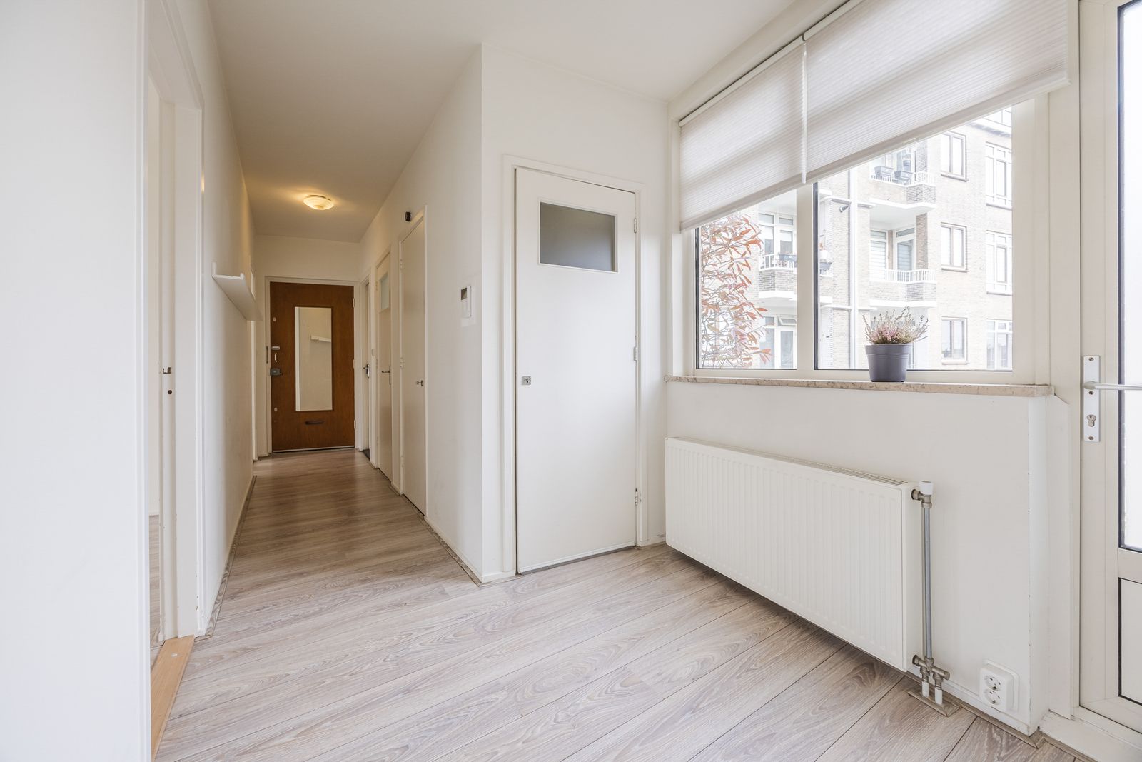 Afgesloten entree met intercom en trappenhuis naar de derde verdieping. Entree appartement, gang, lichte woon-/eetkamer aan de voorzijde, moderne keuken, twee slaapkamers aan de achterzijde met toegang tot het balkon, moderne badkamer, separaat toilet.