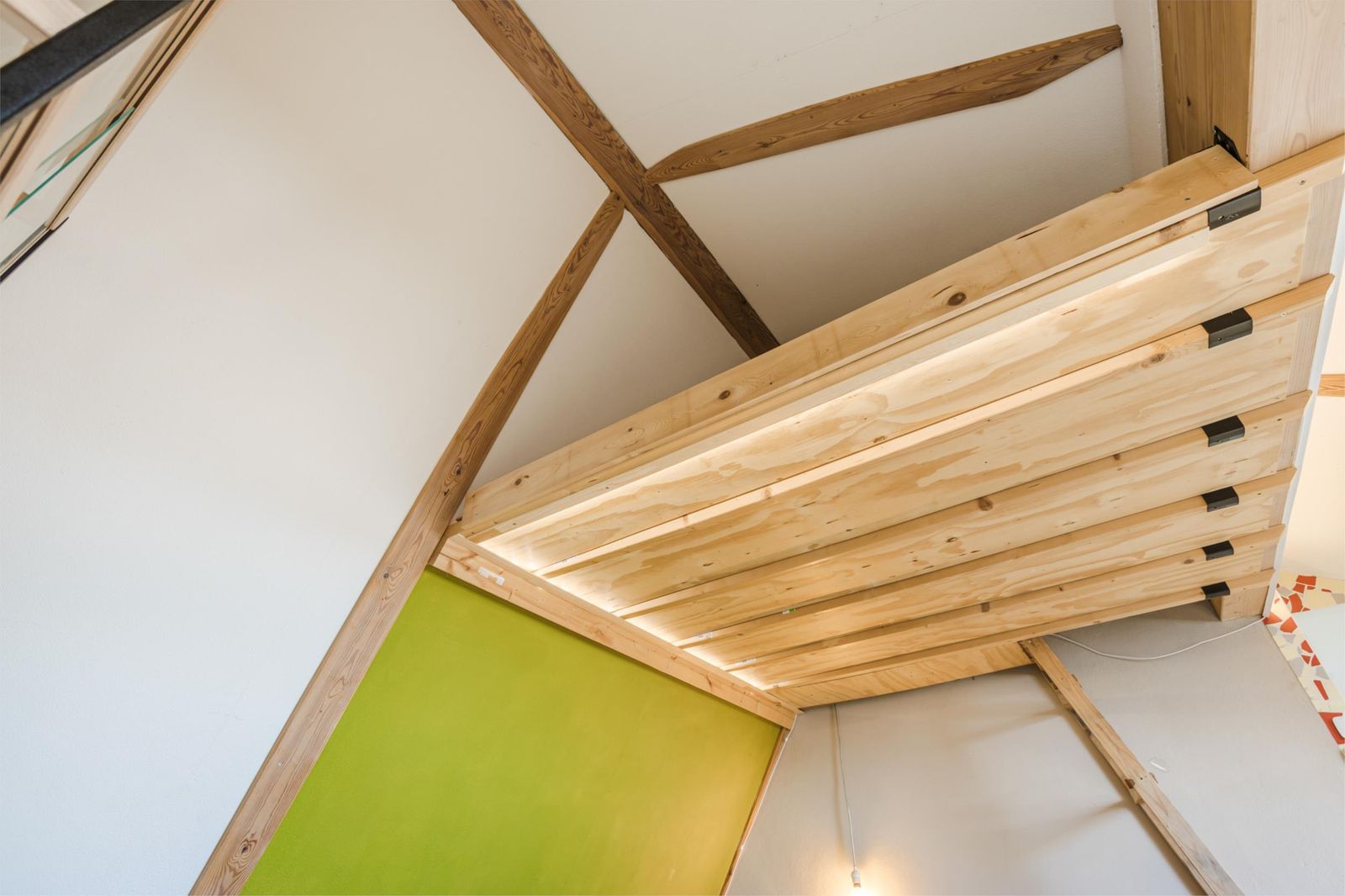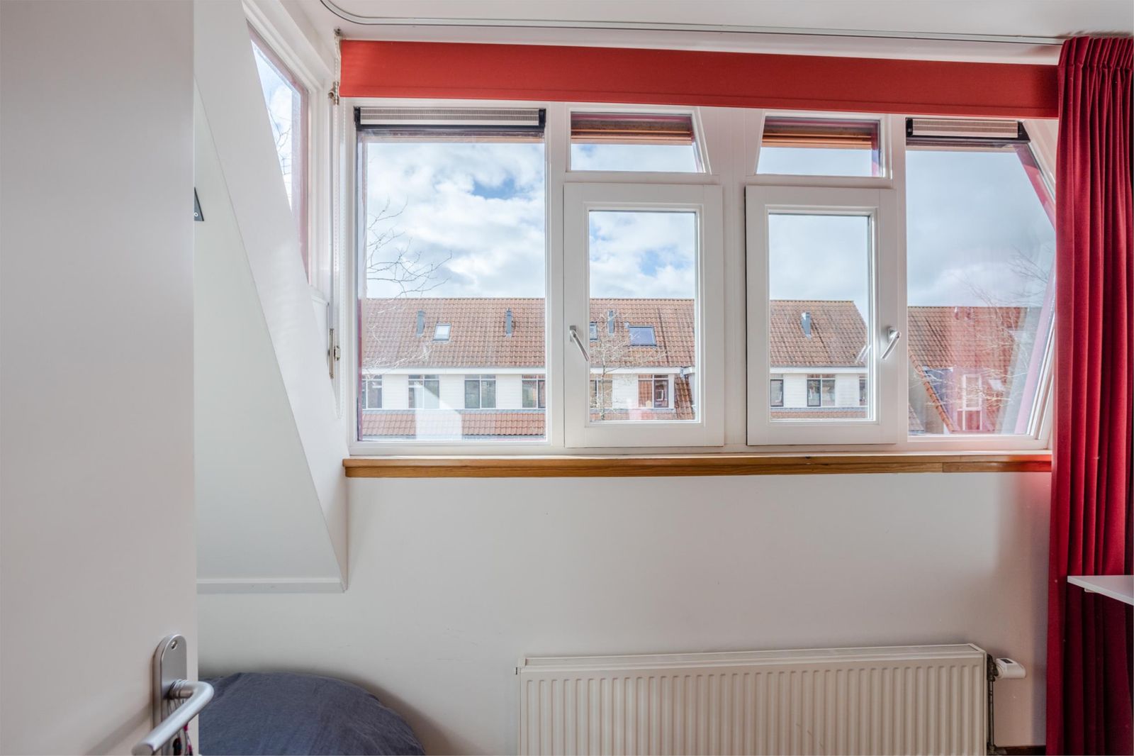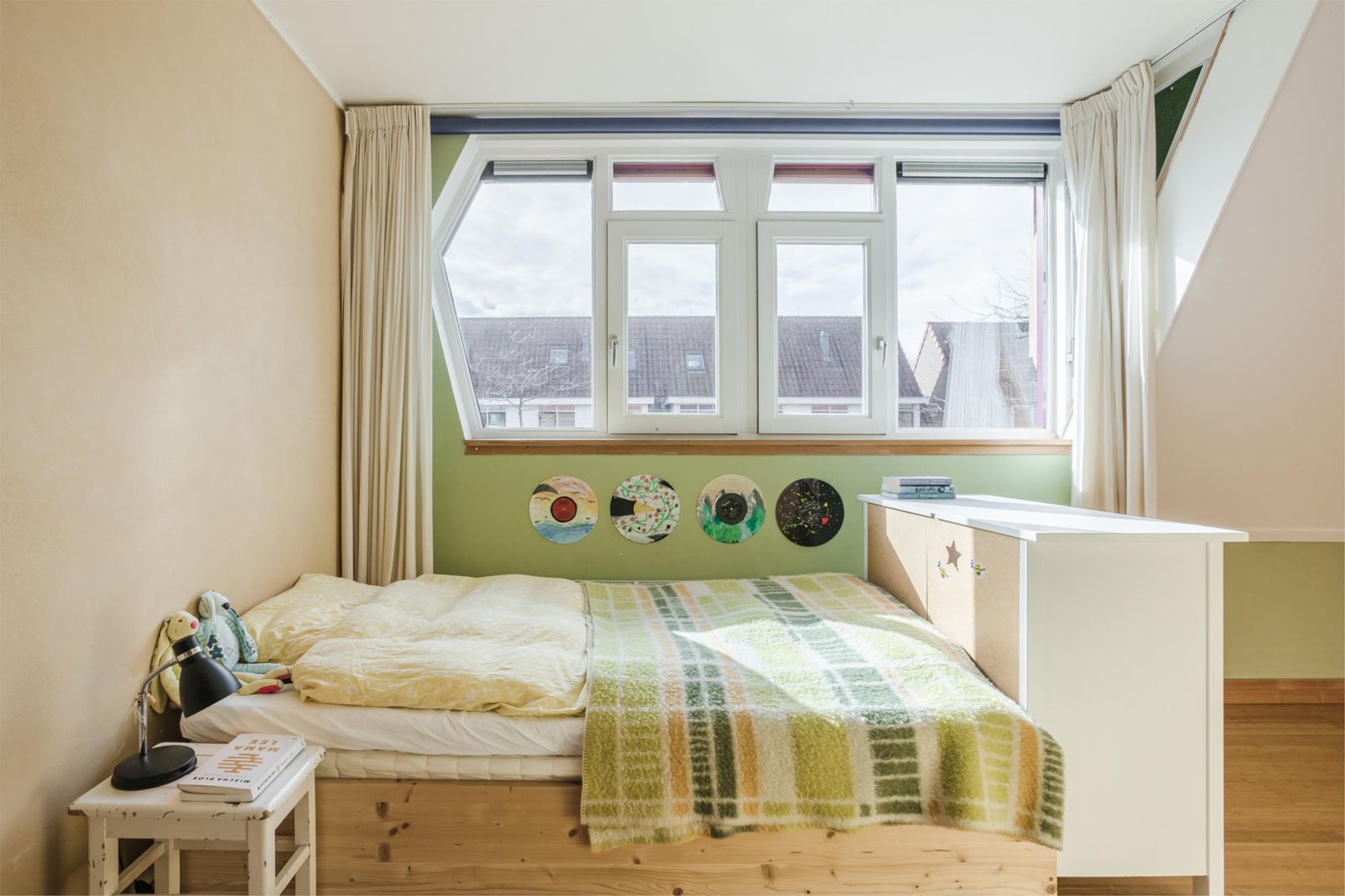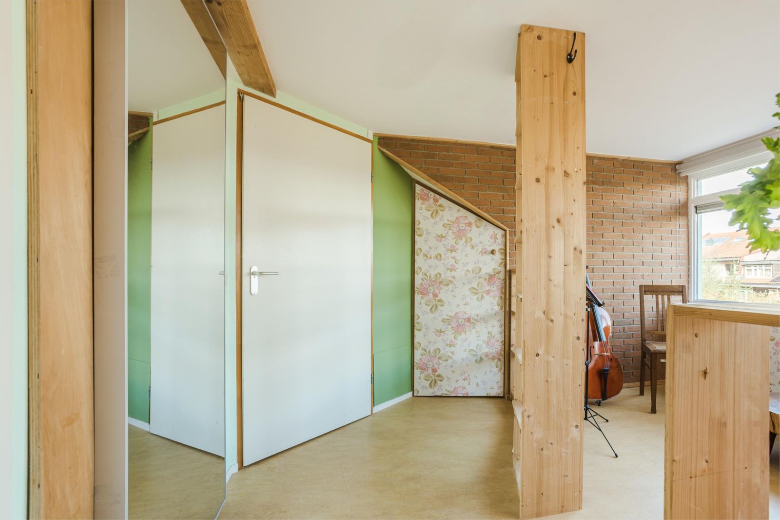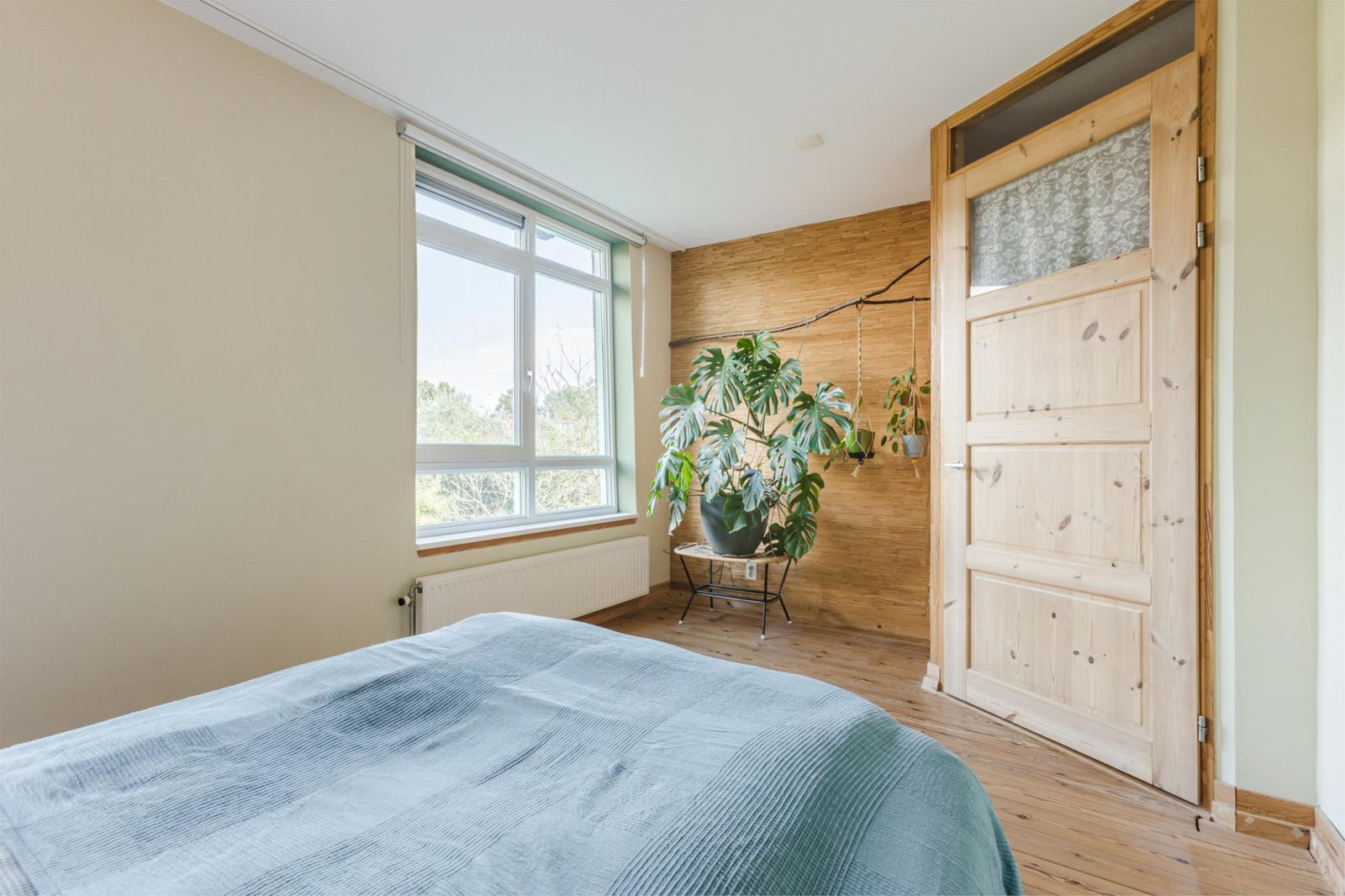 Twee (potentiële) slaapkamers. Eerste slaap/zitruimte is nu afgescheiden door een open kastenwand. De tweede slaapkamer is groot en heeft dakraam, zijraam, een extra slaapverdieping in de nok en kasten met veel opbergruimte onder het schuine dak.