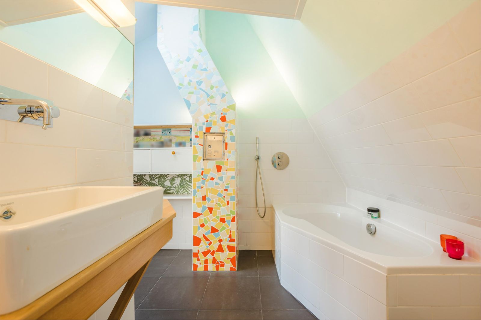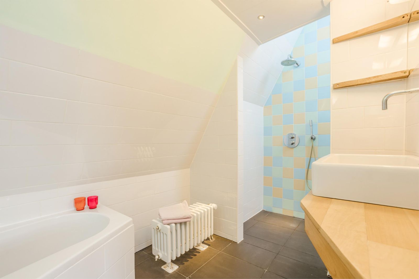 Via de vaste trap vanuit woningdeel 1 kom je op de overloop van de tweede verdieping. Daar vind je de (afgesloten) CV-opstelling met zonneboiler. Berging. Ruime badkamer met ligbad, dubbele douche en wastafel.