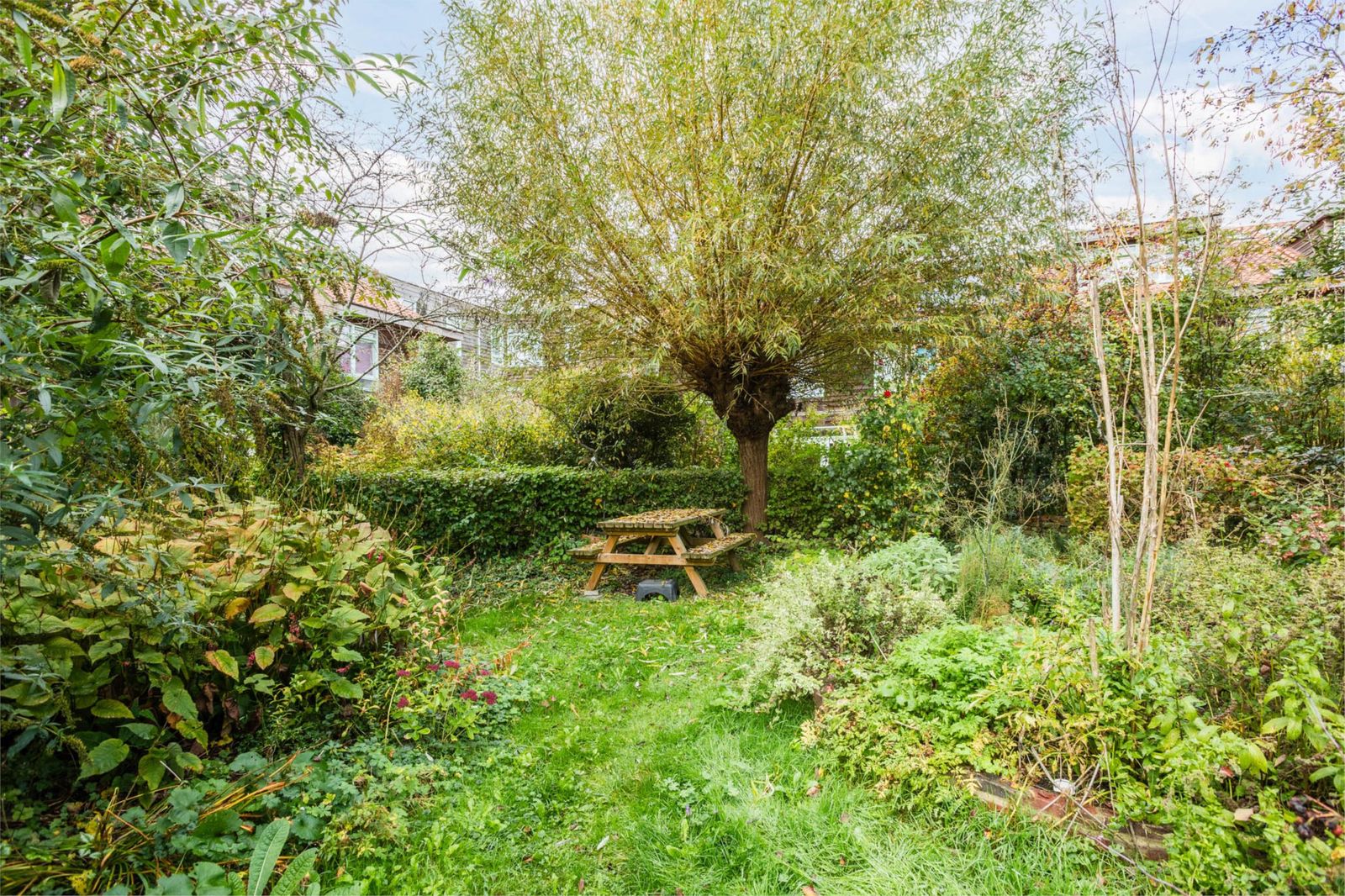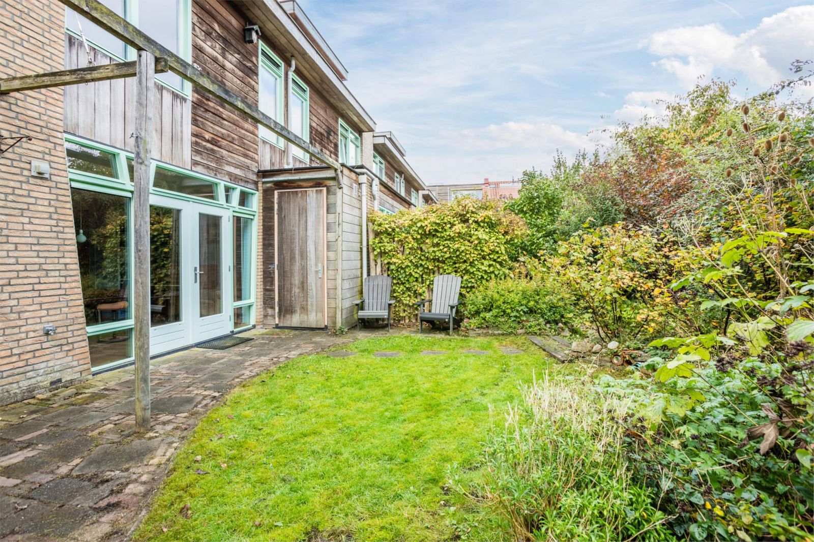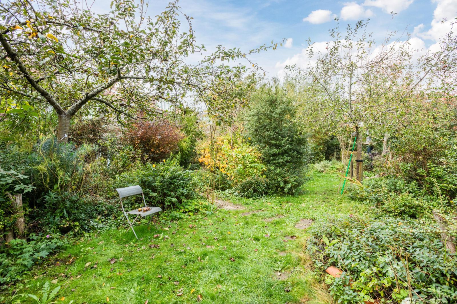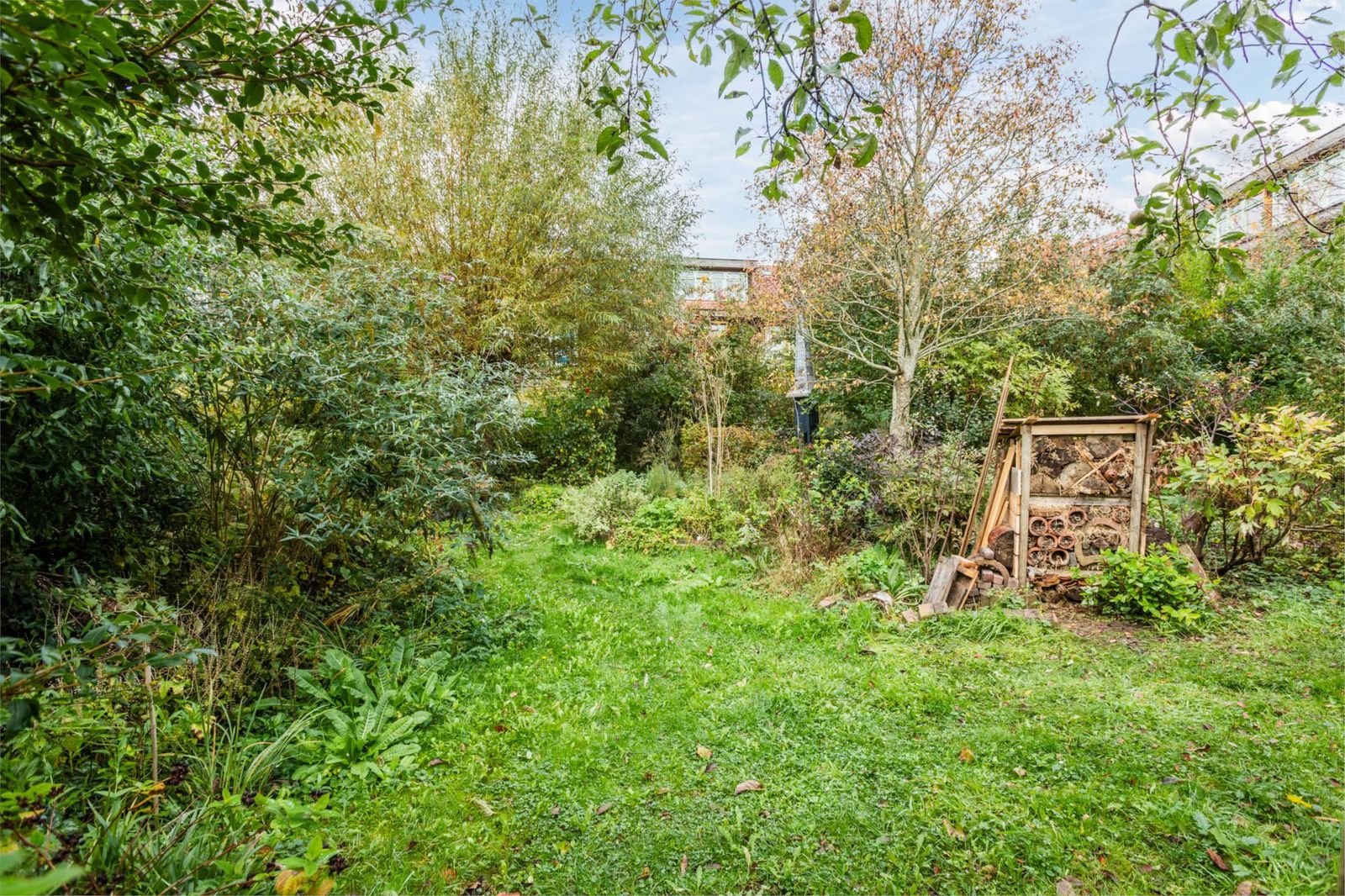De grote tuin aan de achterzijde ligt op het zuidoosten en heeft een tweede terrasje voor de middagzon. In de tuinkast passen tuinstoelen en tuingereedschap. Aan de zijkant is een ruim houthok voor brandhout. Voortuin heeft een bankje voor de avondzon. Fietsen staan in de gemeenschappelijke fietsenberging om de hoek, een halve minuut lopen.