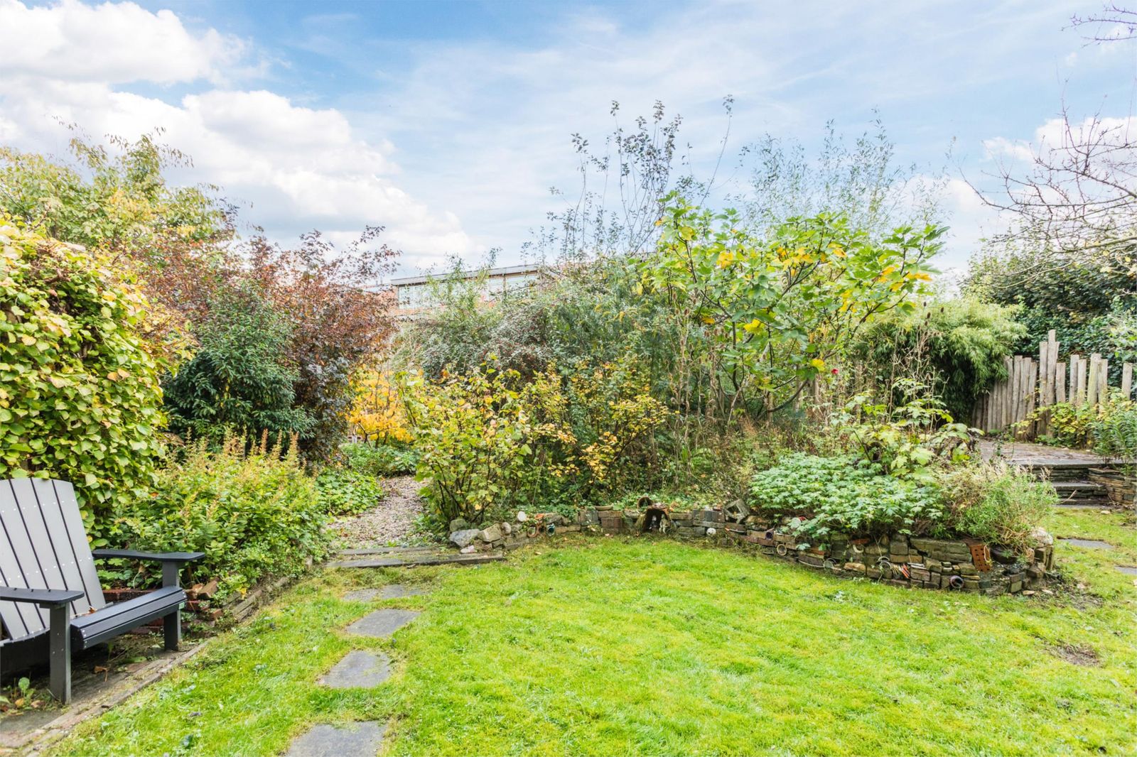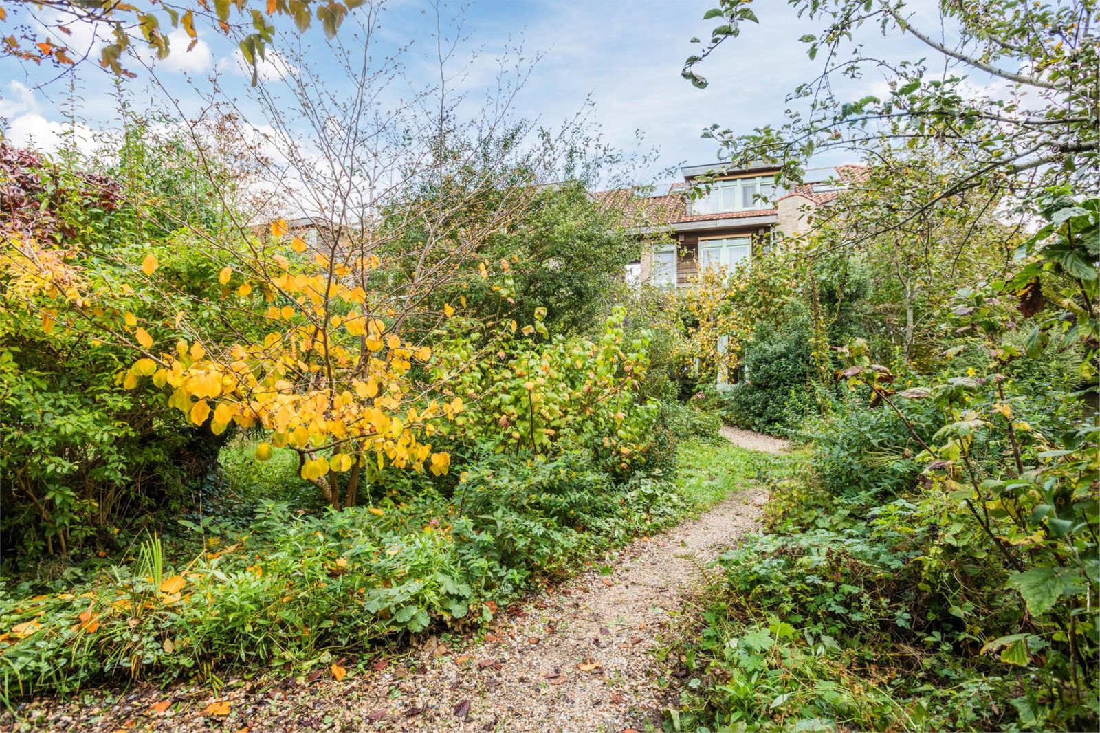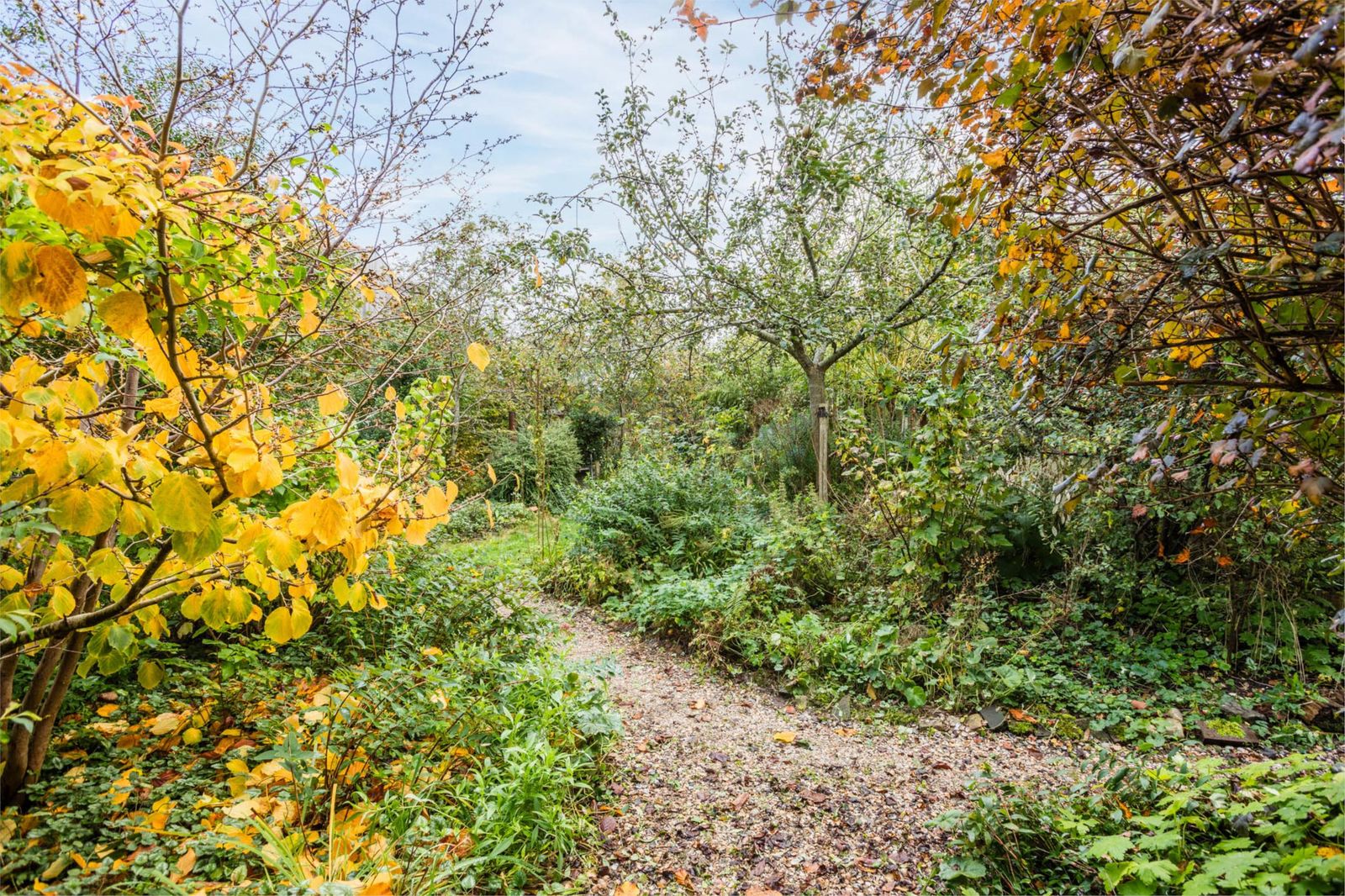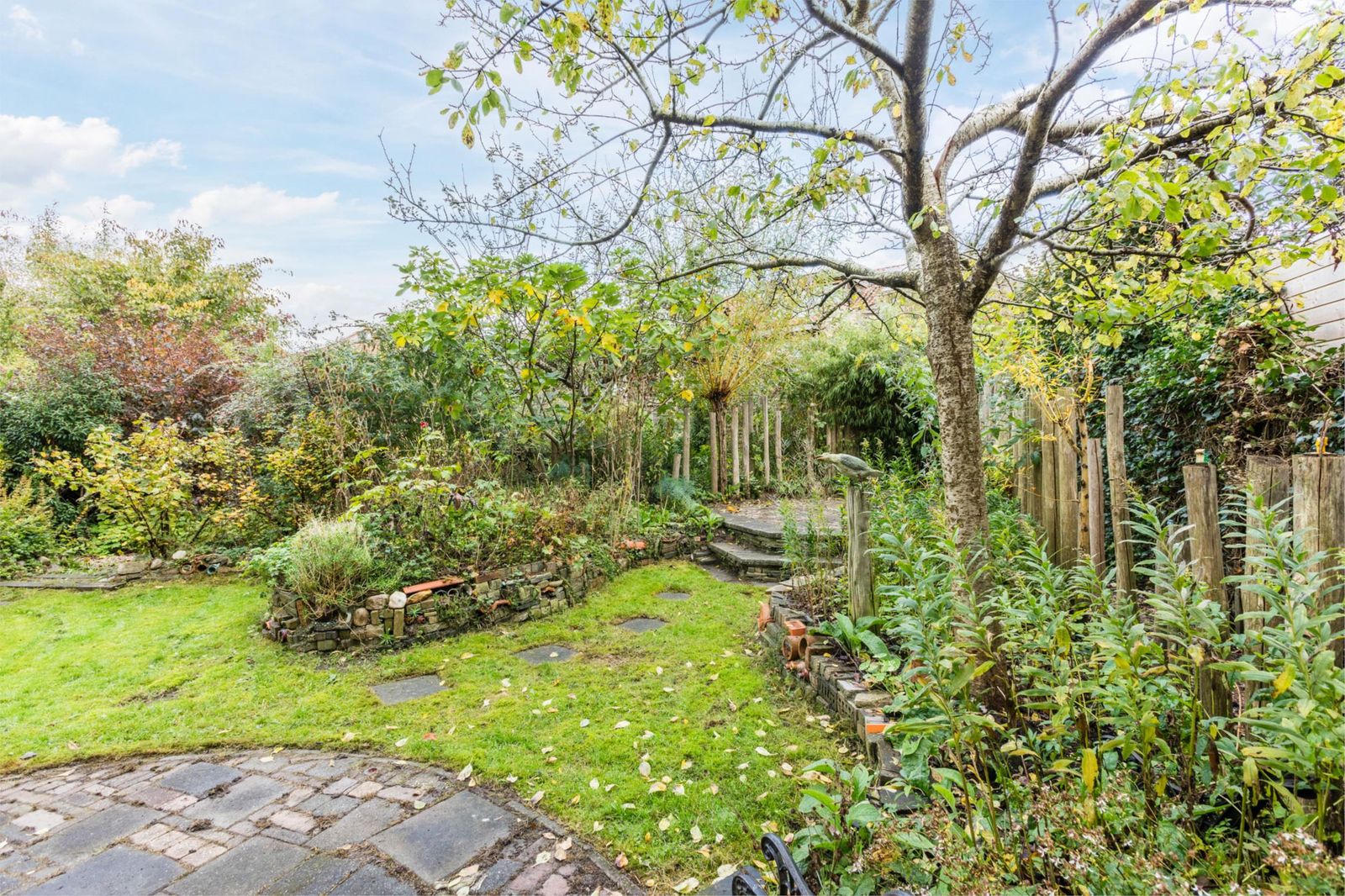 De grote tuin aan de achterzijde ligt op het zuidoosten en heeft een tweede terrasje voor de middagzon. In de tuinkast passen tuinstoelen en tuingereedschap. Aan de zijkant is een ruim houthok voor brandhout. Voortuin heeft een bankje voor de avondzon. Fietsen staan in de gemeenschappelijke fietsenberging om de hoek, een halve minuut lopen.