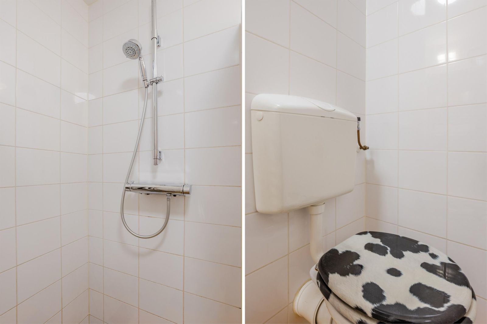 Overloop met inbouwkast. Badkamer met wastafel, douche, toilet. Twee slaapkamers. Slaapkamer aan de voorzijde heeft zonwering.